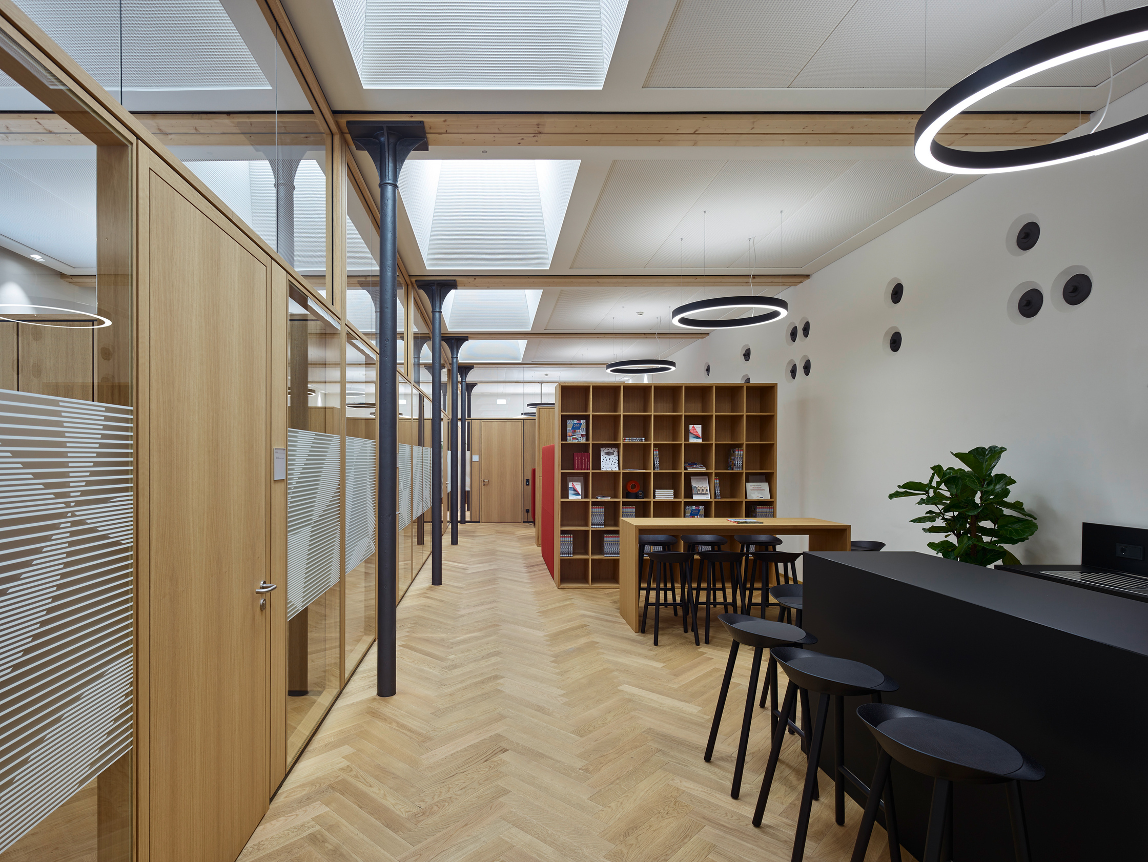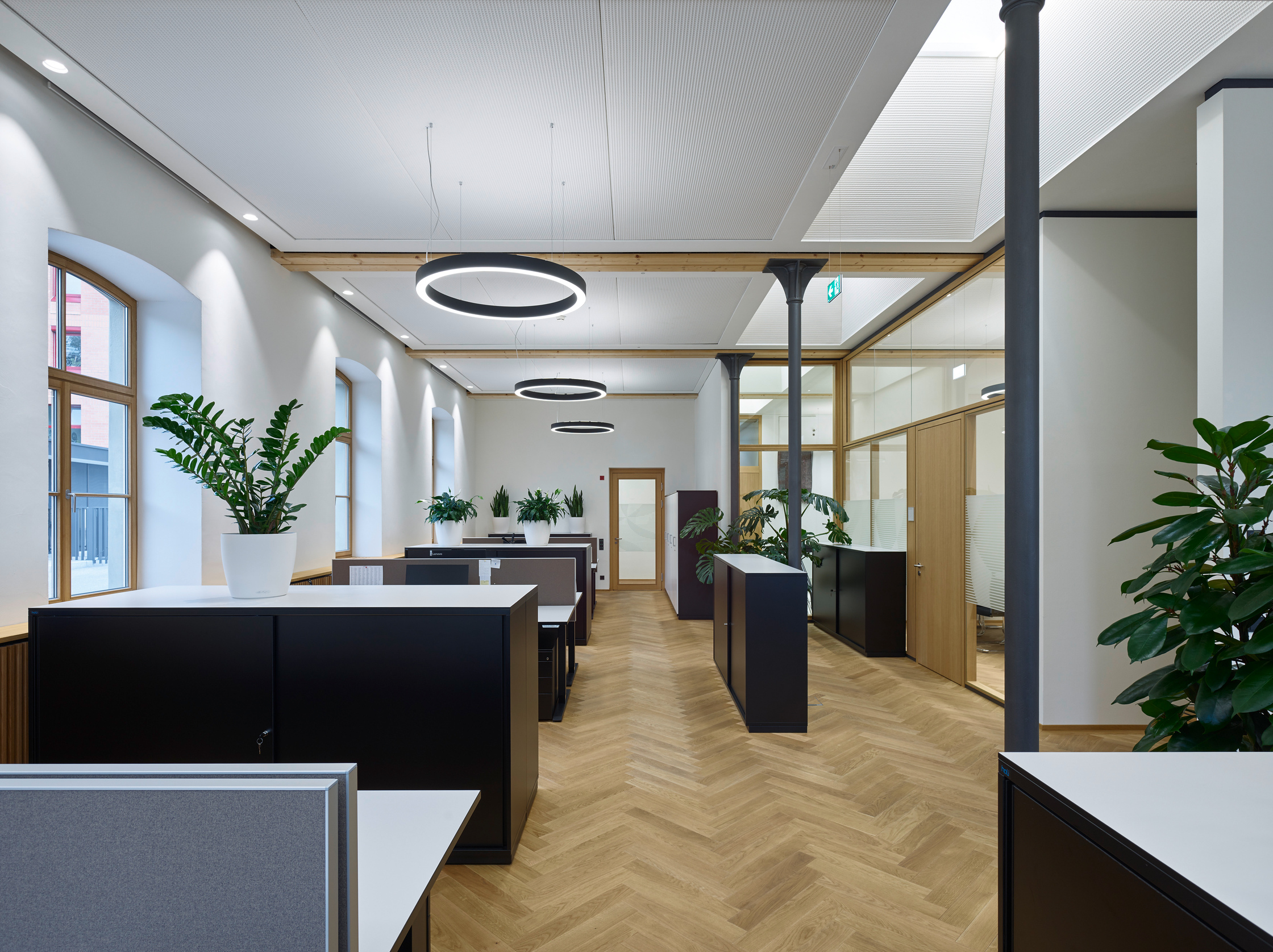 Feuerstein, Nüziders; Schlosser: Josef Hermann, Satteins und Wolfgang Rusch, Dornbirn, Parkett: René Bechtold, Weiler; Bürotrennwände: Scheicher GmbH, Adnet (Salzburg); Beleuchtung: XAL, Graz