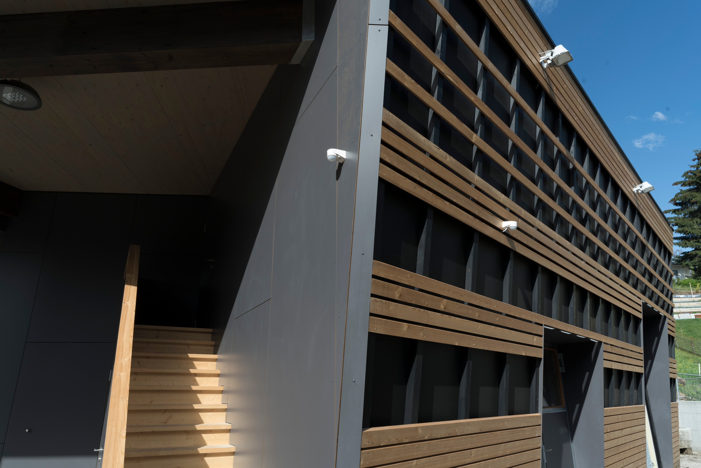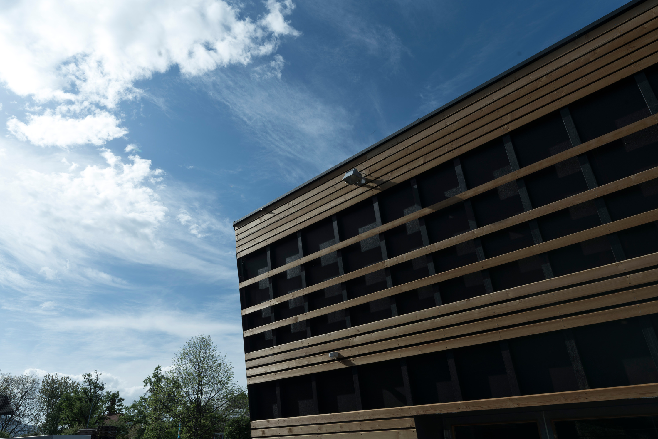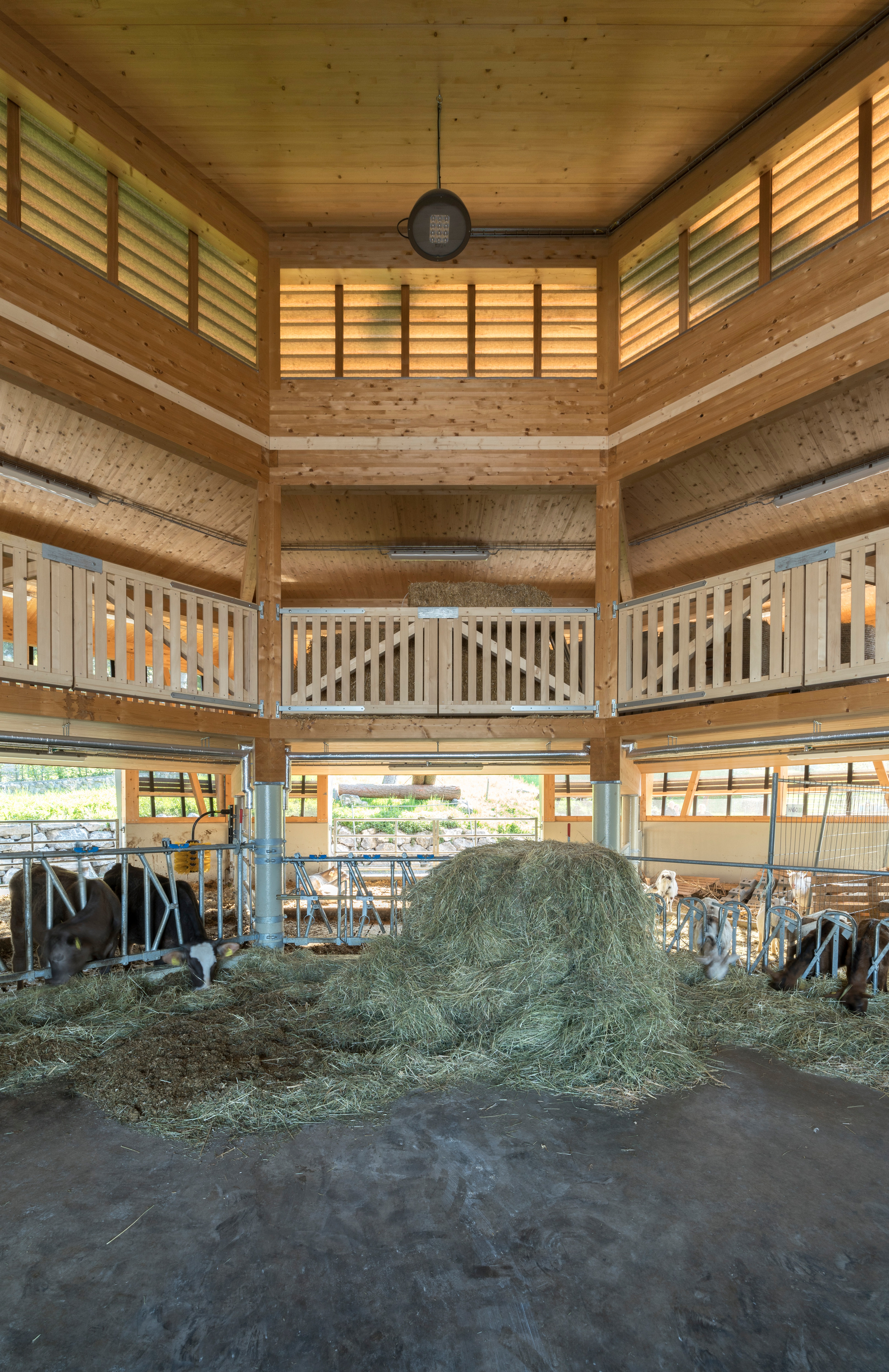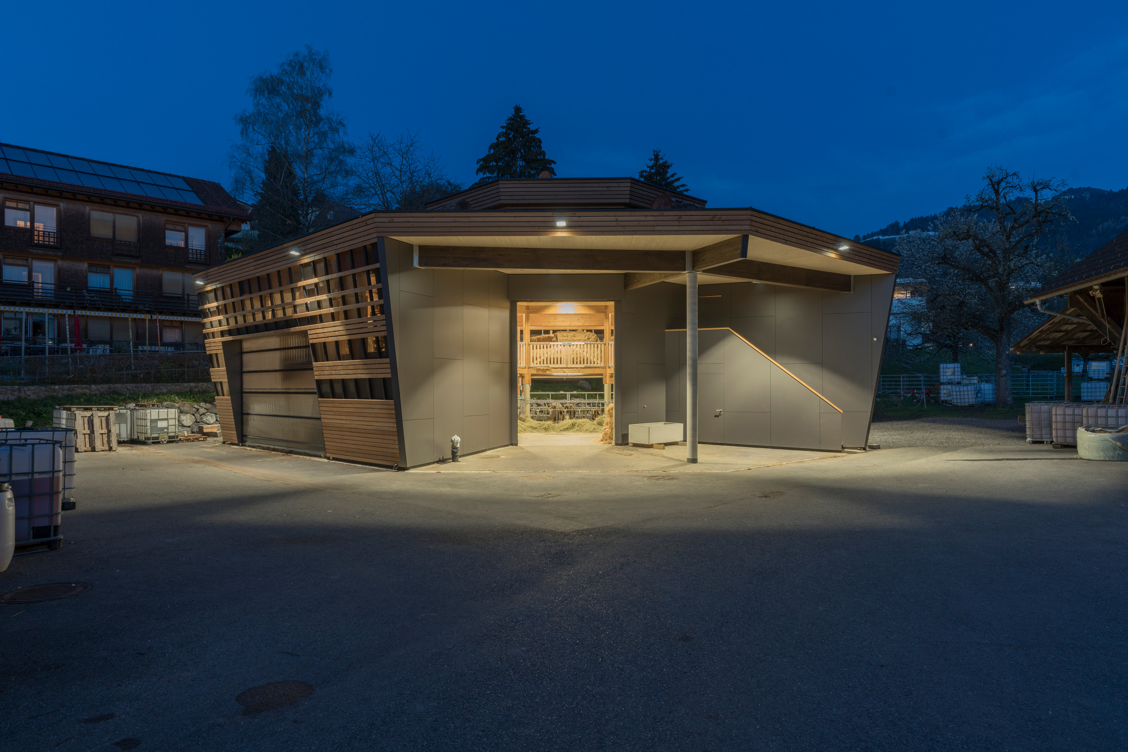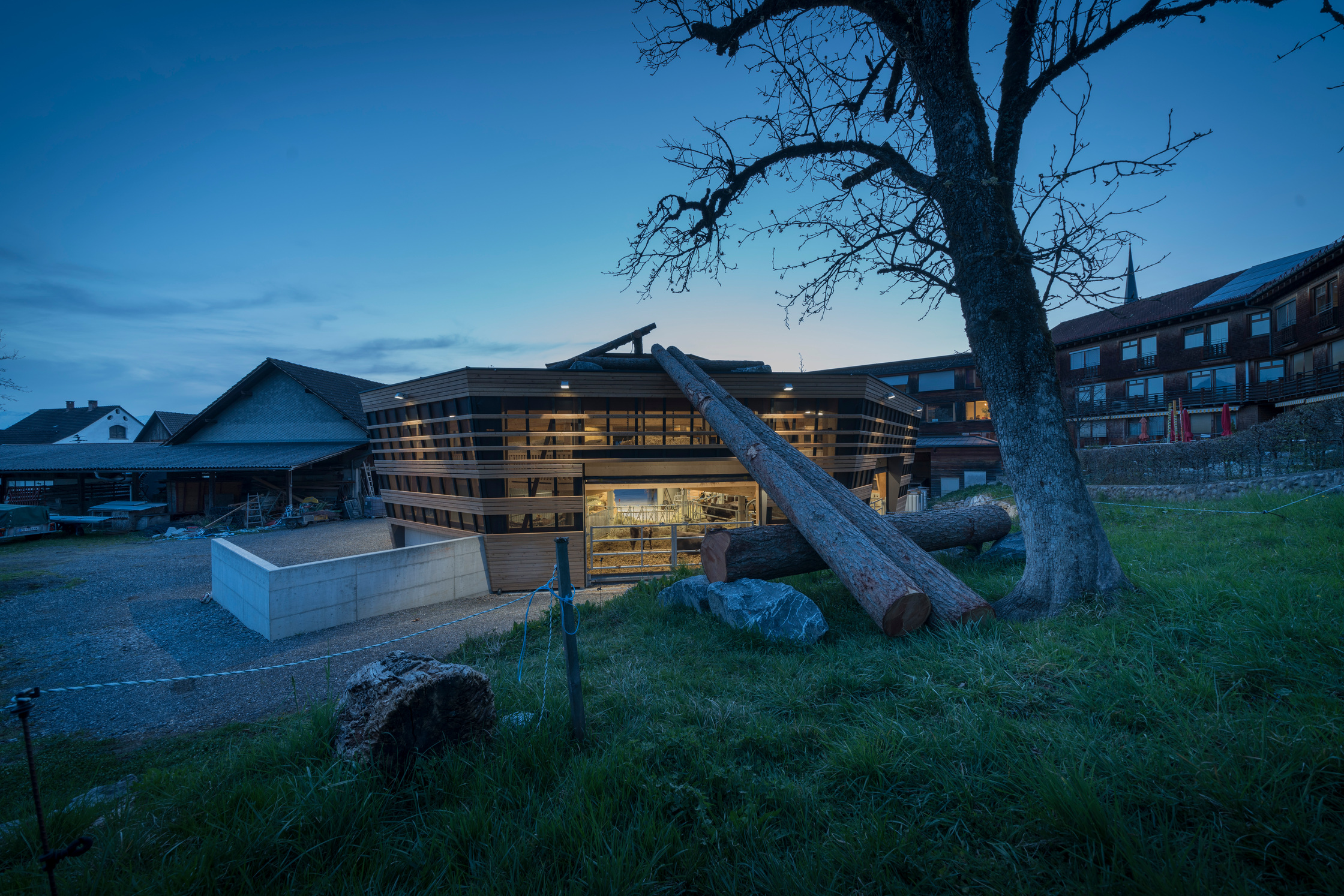Mit dem intensiv bepflanzten Dach ersetzt das Gebäude die verbaute Fläche durch ein neues Stück Kulturlandschaft: Die vielfältige Begrünung dient als Ziegenweide, speichert einen Großteil des Niederschlags und dient als Rückhaltebereich.