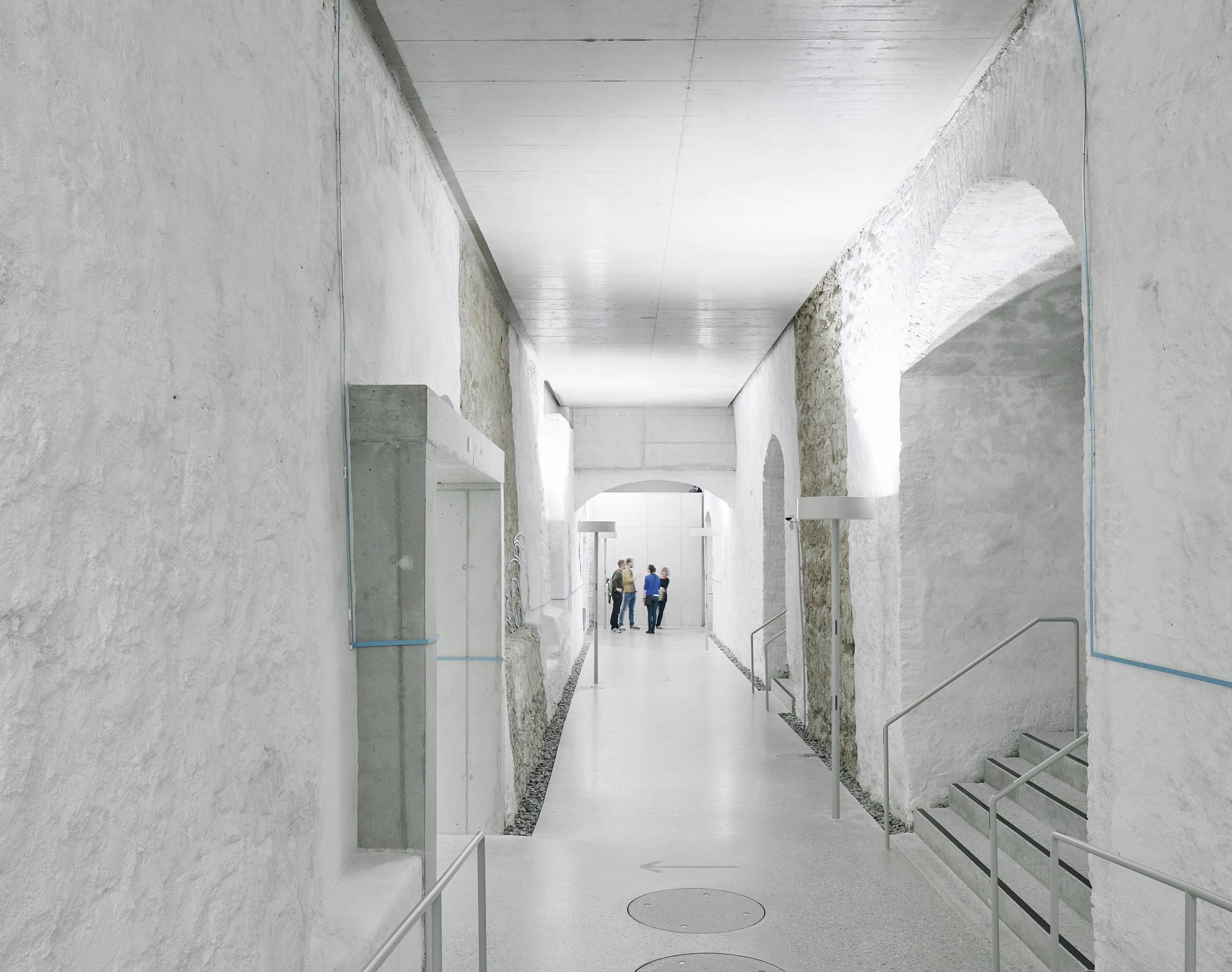 Die Integration von historischem Bestand und neuer Architektur gelang ihnen vortrefflich. „Ist es vorstellbar, eine singuläre, integrierende Lösung zu finden, welche einen Neubau nicht nur dem Bestand hinzufügt, sondern diesen Bestand durch das Neue erst richtig hervorkehrt?“, lautet eine der Fragen, aus der die Architekten ihr Konzept entwickelten. Nicht als „reizvoll konservierten und präsentierten Appendix“ des Neuen, sondern als „Bindeglied zwischen den neuen Bauteilen“ wollten sie die Kasematten behandeln, um sie als aktiven Teil der Stadt zu etablieren. Dies glückte, indem sie auf eitle, reißerische Gesten verzichteten, in der Materialität zurückhaltend blieben sowie – die wahrscheinlich wichtigste Eigenschaft – die Topografie des Ortes zu lesen und in geeigneter Weise neu zu deuten verstanden. Ohne den Bestand als malerische Kulisse der neuen Funktionen zu behandeln, setzten sie einerseits Alt und Neu klar voneinander ab, ließen beides aber so ineinandergreifen, dass innen wie außen eine wie selbstverständlich wirkende „Promenade architecturale“ durch die Räume aus verschiedenen Zeiten entsteht.