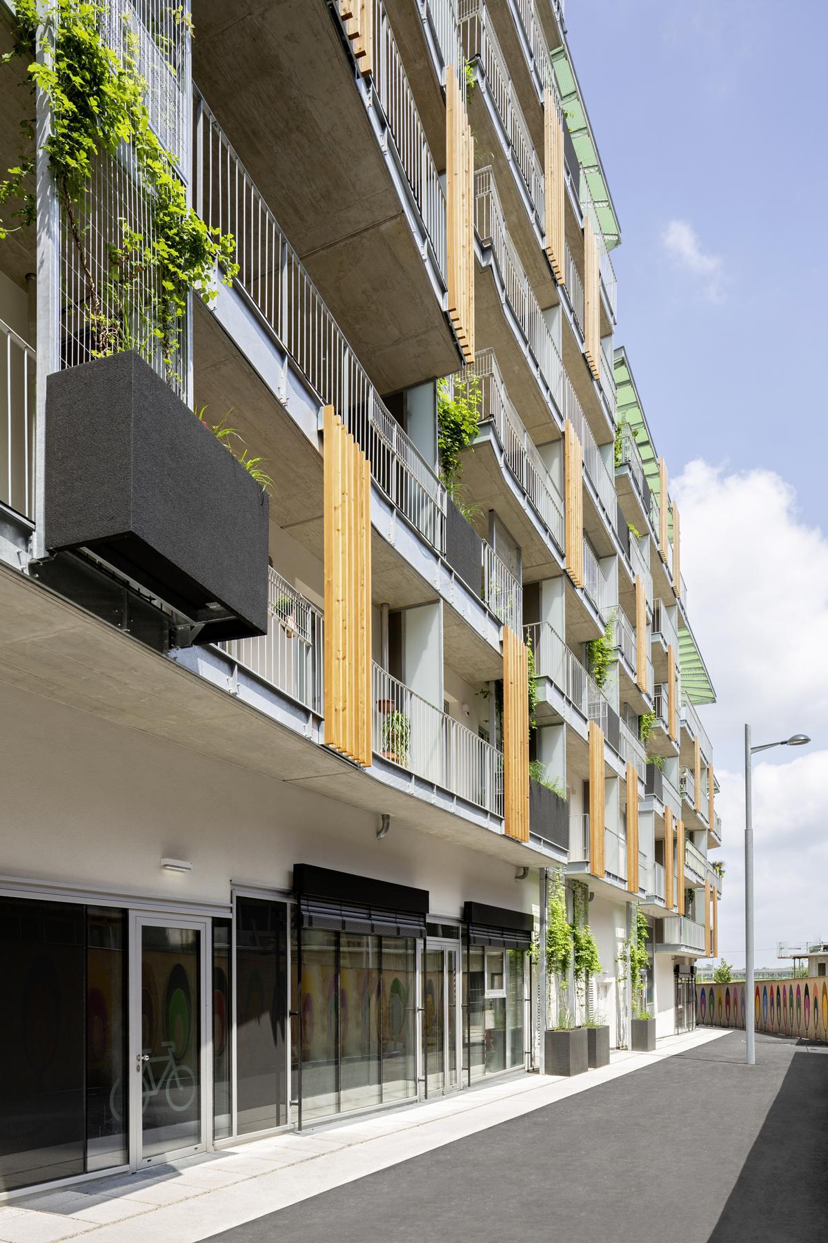 Generell nach ÖGNB zertifiziert (Klima aktiv), Photovoltaik Anlage, Fernwärme Wien, Zisterne und automatische Bewässerung/Düngung, optimiertes Lichtmanagement, 3-Scheiben Verglasung. Fassadenbegrünung, grüne Ader, Pflanzengefäße, Rankgerüste vertikal und horizontal, Urban Gardening, Extensive und Intensive begrünte Zonen/Dächer/Terrassen, Schattenspender, Behaglichkeit steigernd, diverse Mikroklimazonen