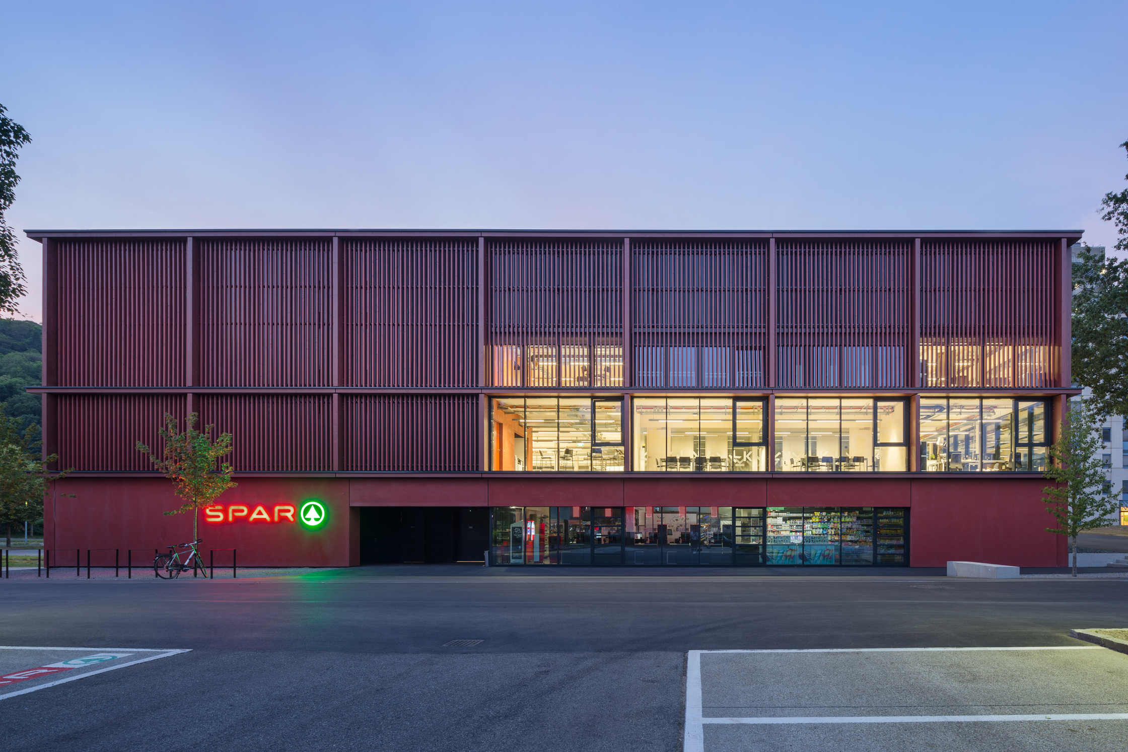 Während an zwei der drei Vorhaben noch gebaut wird, ist ein weiteres von Riepl Riepl Architekten geplantes Objekt, das Linz Institute of Technology (LIT) Open Innovation Center, bereits in Betrieb. Dieses der Zusammenarbeit von Wissenschaft und Wirtschaft gewidmete Gebäude liegt als schlichter, Nord-Süd-orientierter Quader am südwestlichen Rand des Campus. Den leichten Anstieg des Geländes haben Riepl Riepl Architekten zur Anordnung eines von der Verkehrsfläche im Süden her ebenerdig zugänglichen Untergeschoßes genutzt, in dem ein Supermarkt untergebracht ist. Weiter hinten, im Norden des aus rot durchgefärbtem Beton errichteten Sockelgeschoßes, befinden sich Reinräume für verschiedene Institute der Universität. Über dem Sockel erhebt sich ein zweieinhalb Geschoße hoher konstruktiver Holzbau, dessen an der Fassade liegende Tragstruktur ebenso wie die das Obergeschoß und Teile des Erdgeschoßes beschattenden Holzlamellen in der Farbe des Betons gestrichen sind. Hinter der hohen, das gesamte Gebäude horizontal abschließenden Attika verbergen sich nach Süden geneigte Sheddächer, die den Innenraum blendungsfrei belichten, während ihre mit Fotovoltaikpaneelen bestückten Dachflächen Strom erzeugen.
