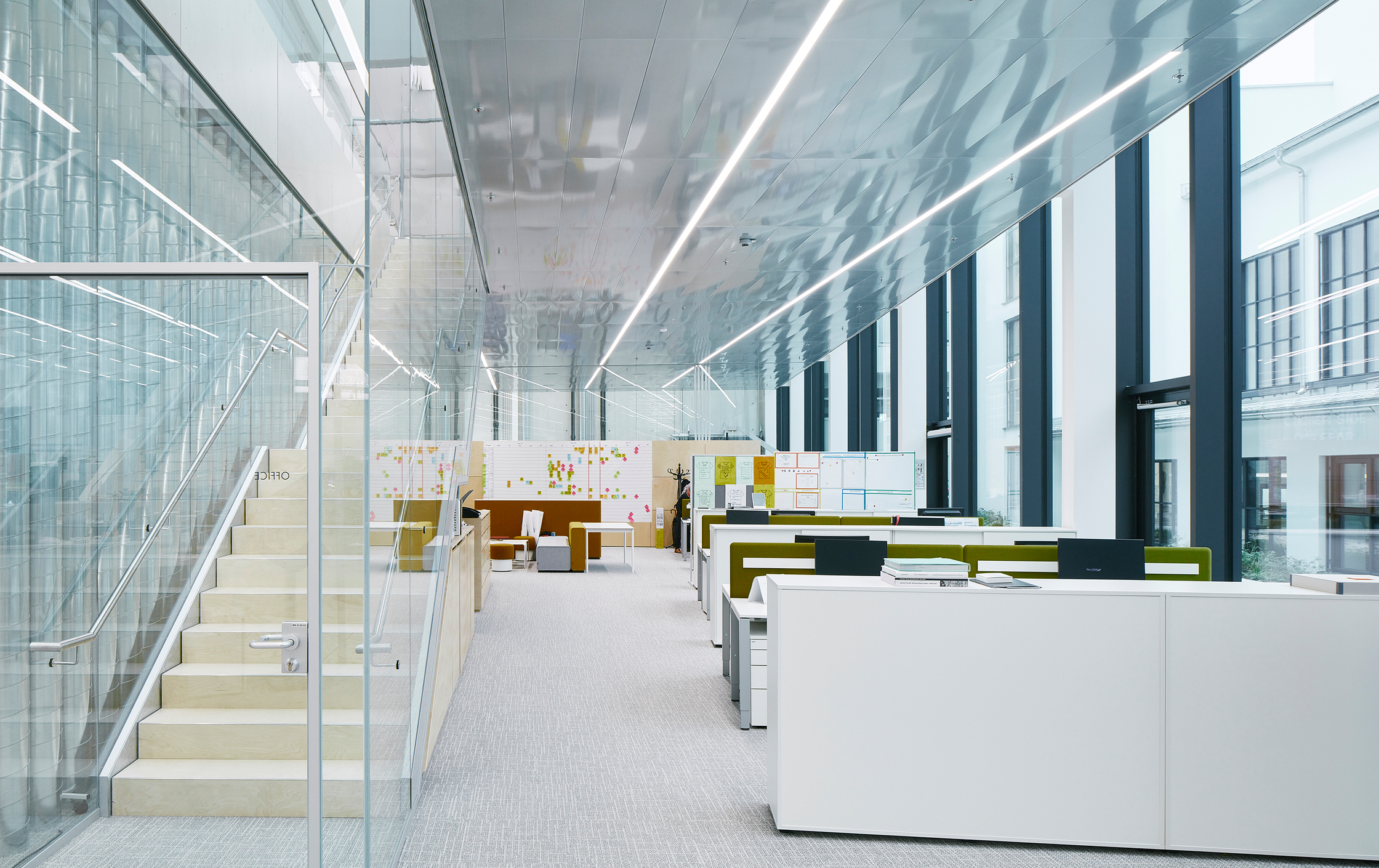 - Stahl-Glaskonstruktion, Stahlbau, Stahlbeton, Vermeidung von PVC für Fenster, Türen, Vermeidung von PVC im Innenausbau