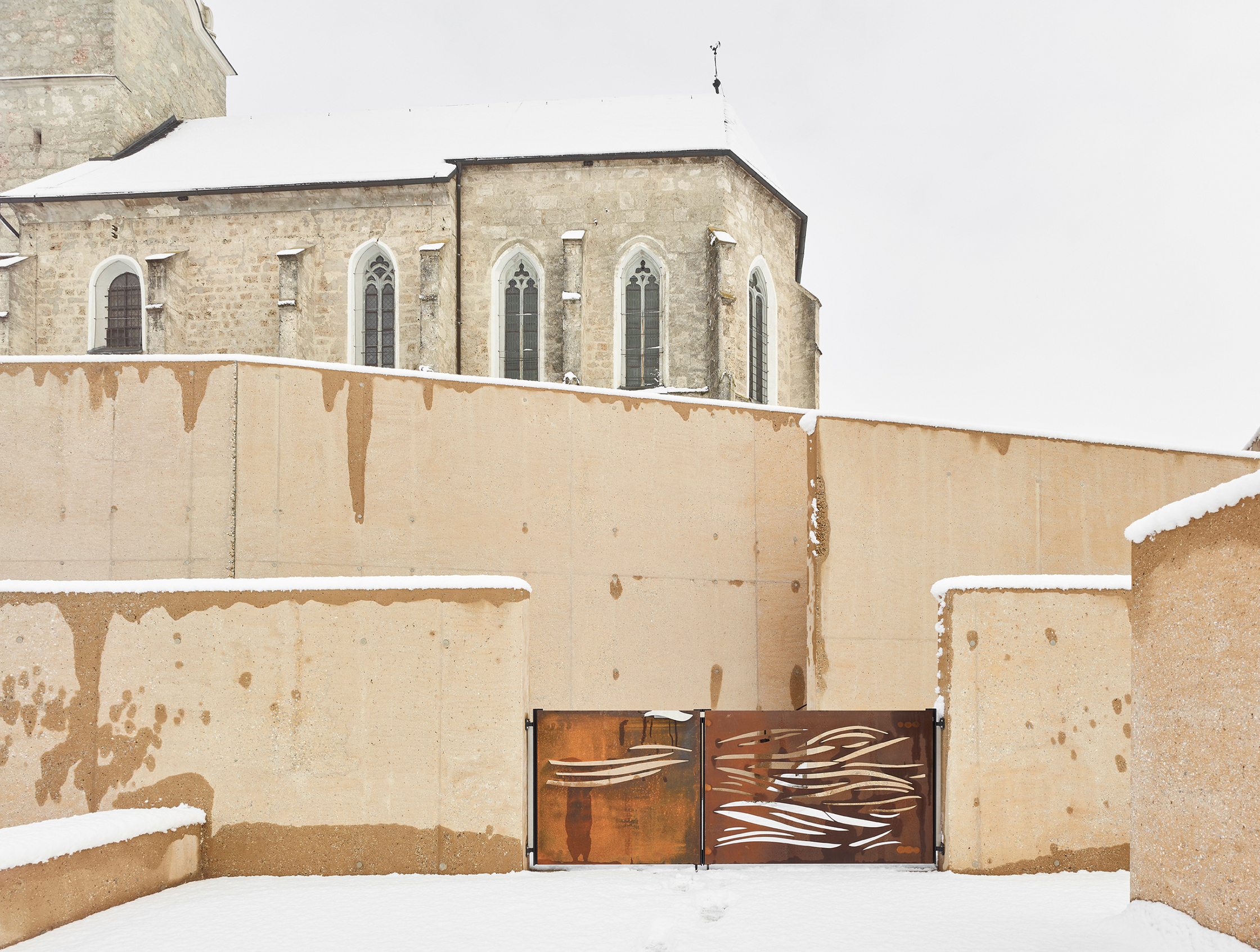 Das Tor aus Corten-Stahl ist ein Kunst und Bau-Projekt von Christiane Pott-Schlager