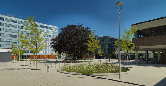 Nun hat die Stadt Wien in ihrem Neubauprogramm für Bildungsbauten den klassischen Gangschulen eine Absage erteilt. Wie sind aber hier mehrere Bildungsräume um eine gemeinsame Multifunktionsfläche anzuordnen, ohne einzelnen davon den Nachteil der Lage an der Straße zuzumuten?