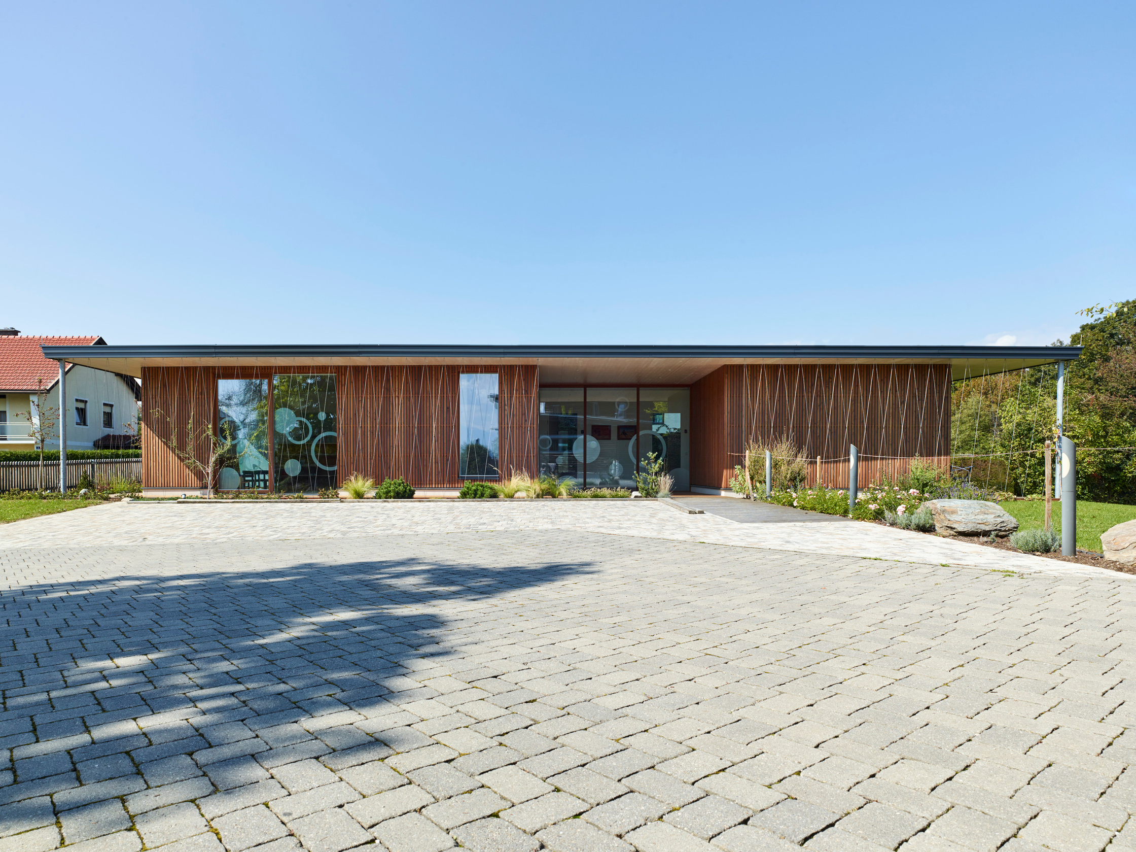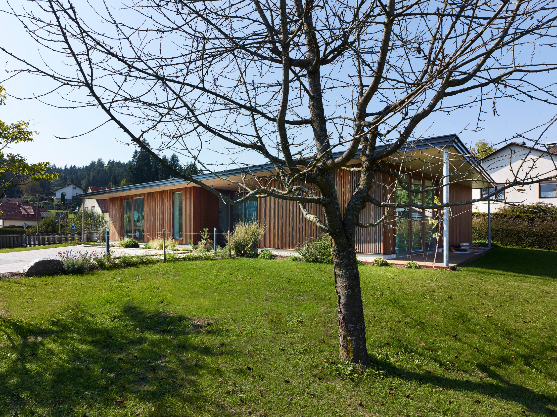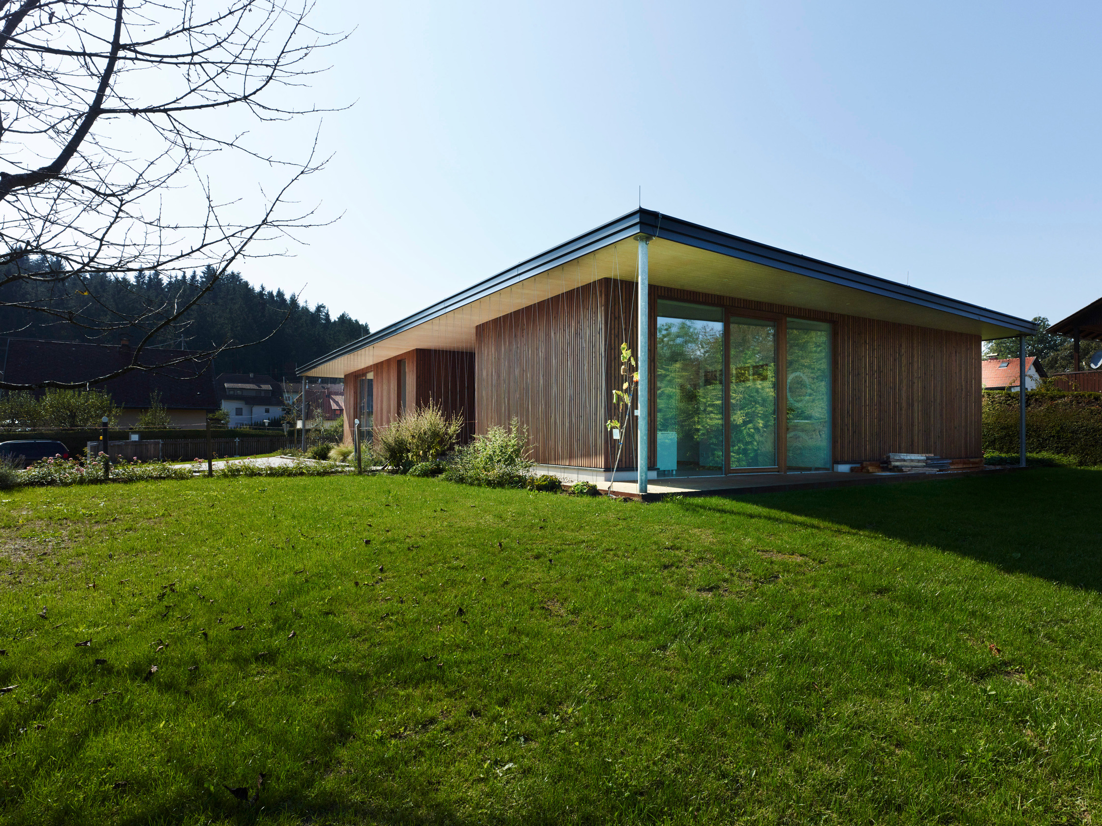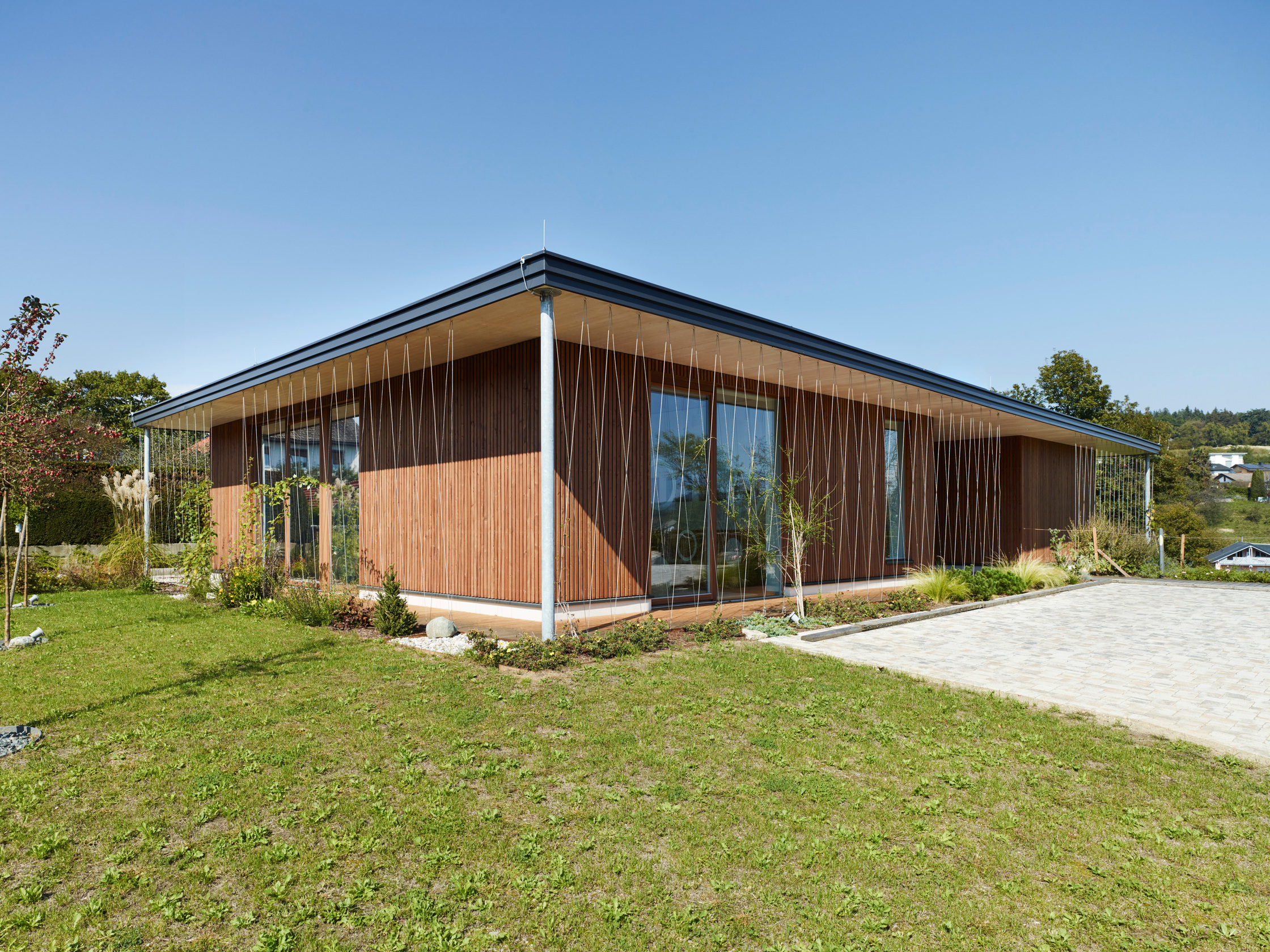 - Holzbau, Überwiegende Verwendung von Dämmstoffen aus nachwachsenden Rohstoffen, Überwiegende Verwendung von HFKW-freien Dämmstoffen, Vermeidung von PVC für Fenster, Türen, Vermeidung von PVC im Innenausbau