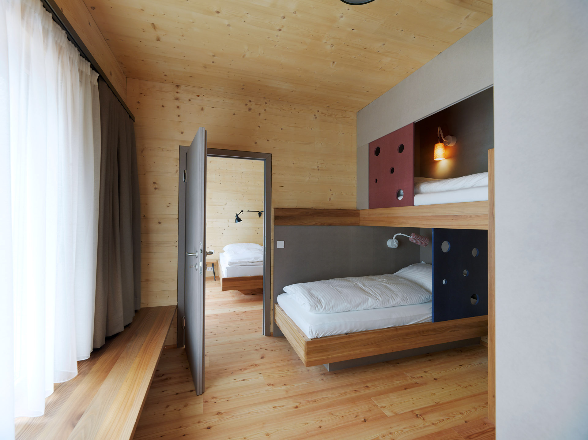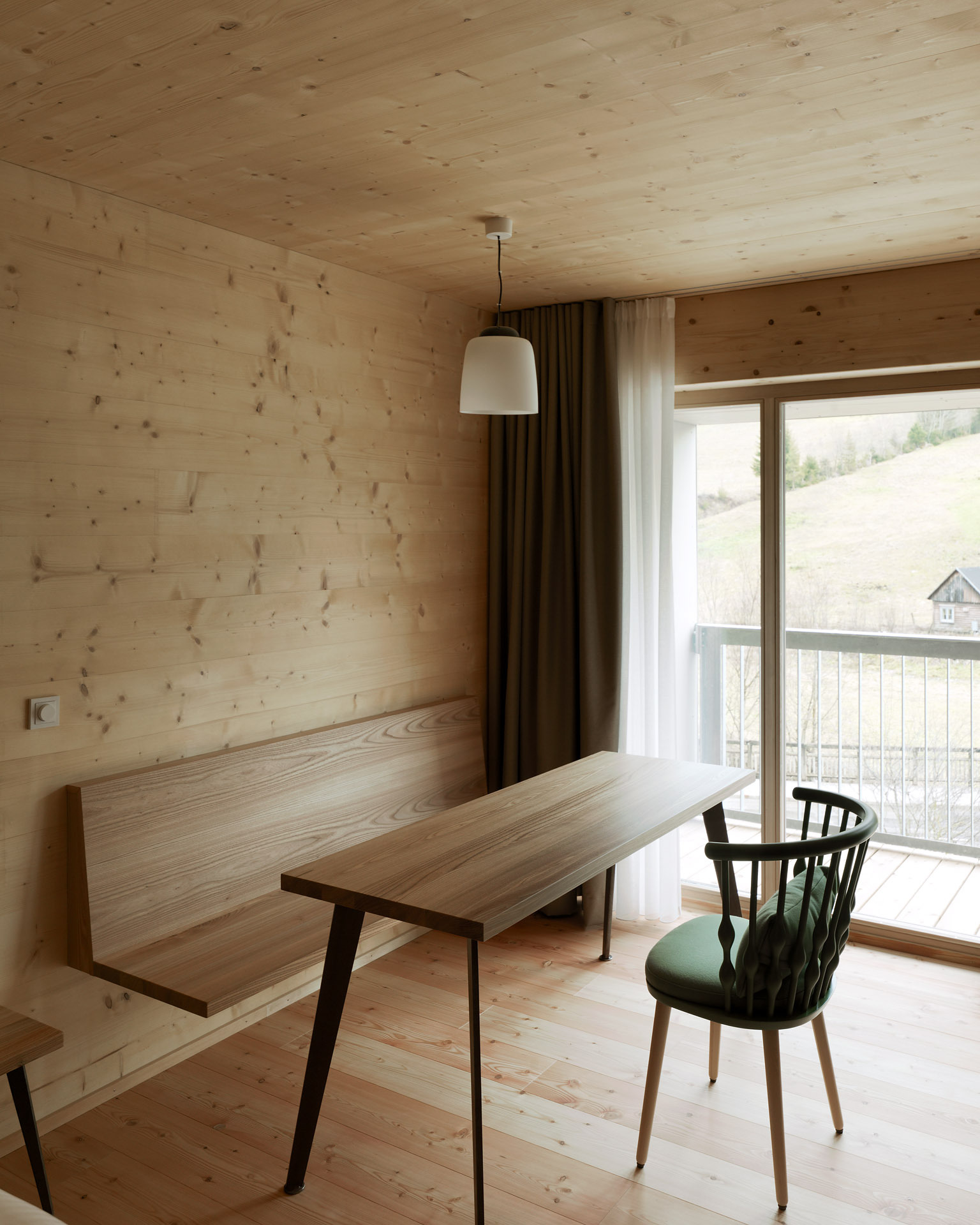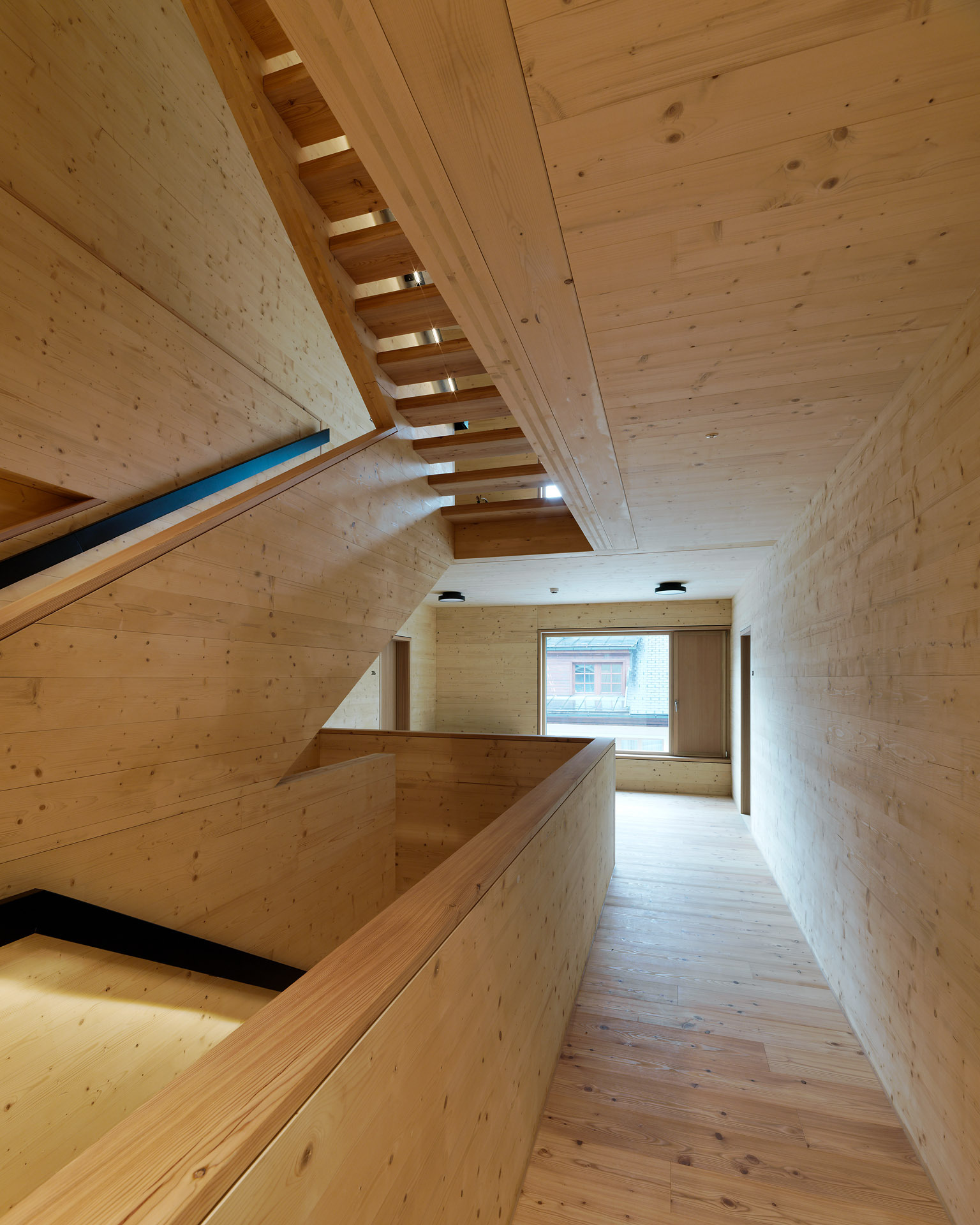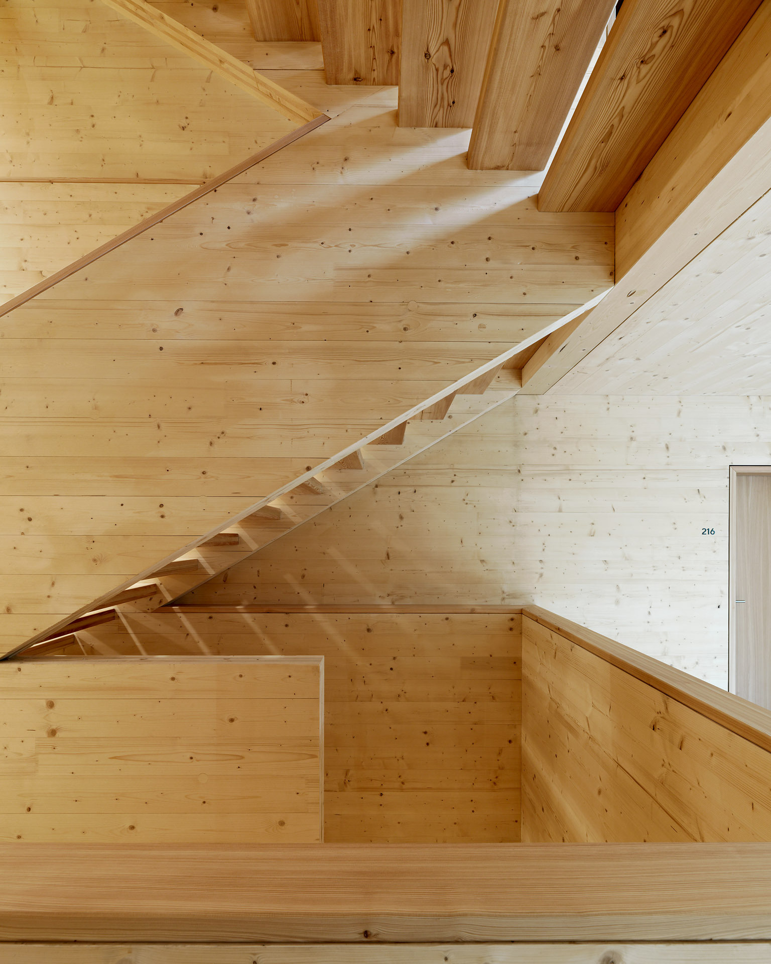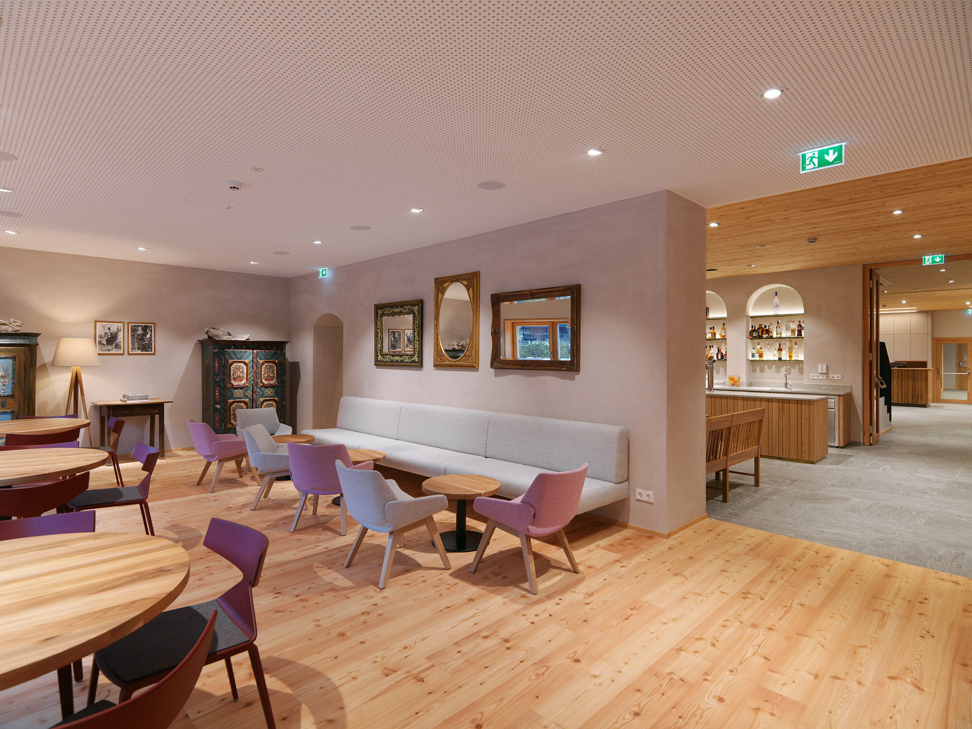 Im Innenbereich dominieren massives Holz (großteils naturbelassen bzw. geölt), durchgefärbte MDF-Platten, Stein bzw. Feinsteinzeug, Kalk-Zement Putze und Kalk- und Silikatfarben.