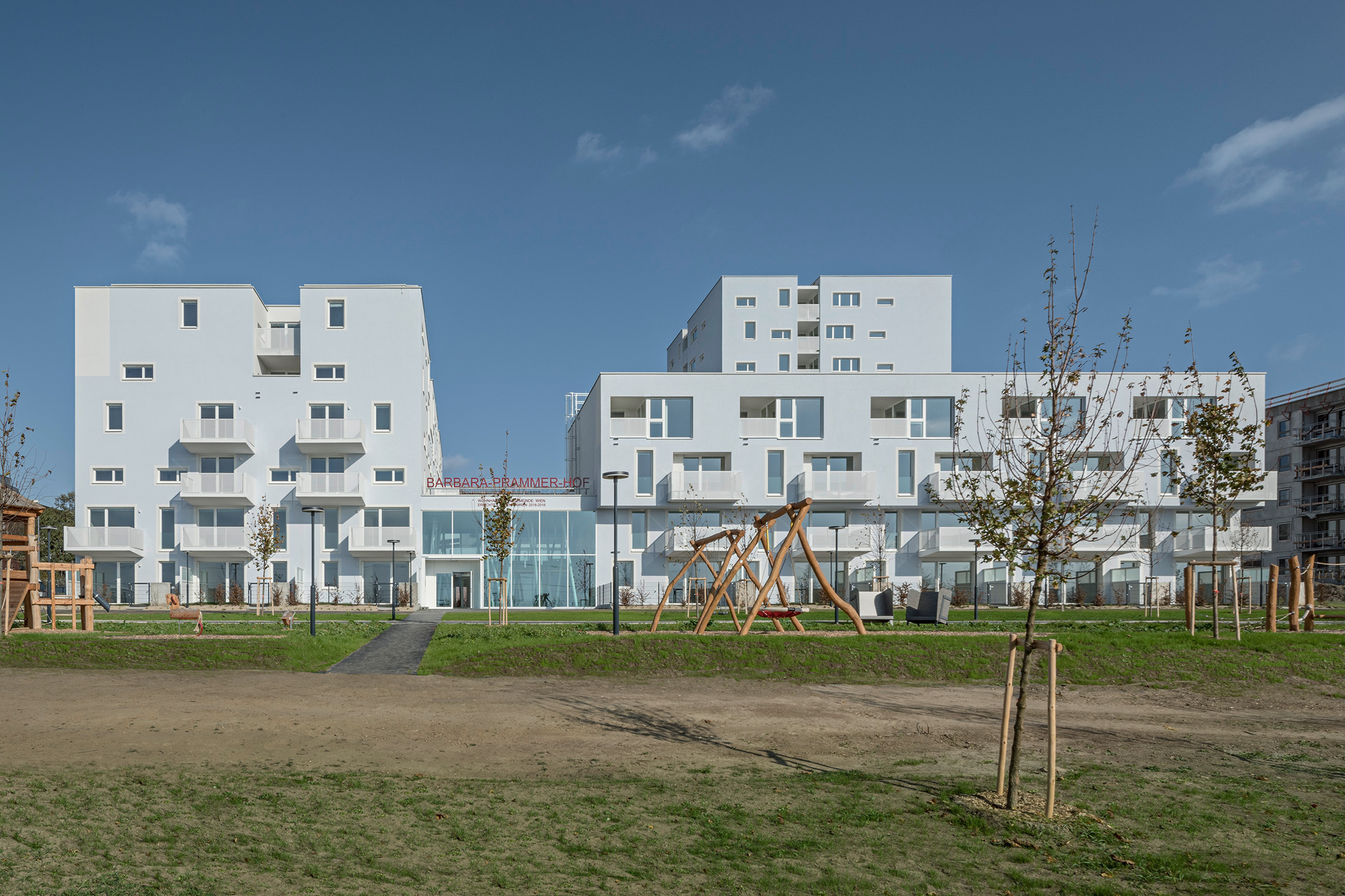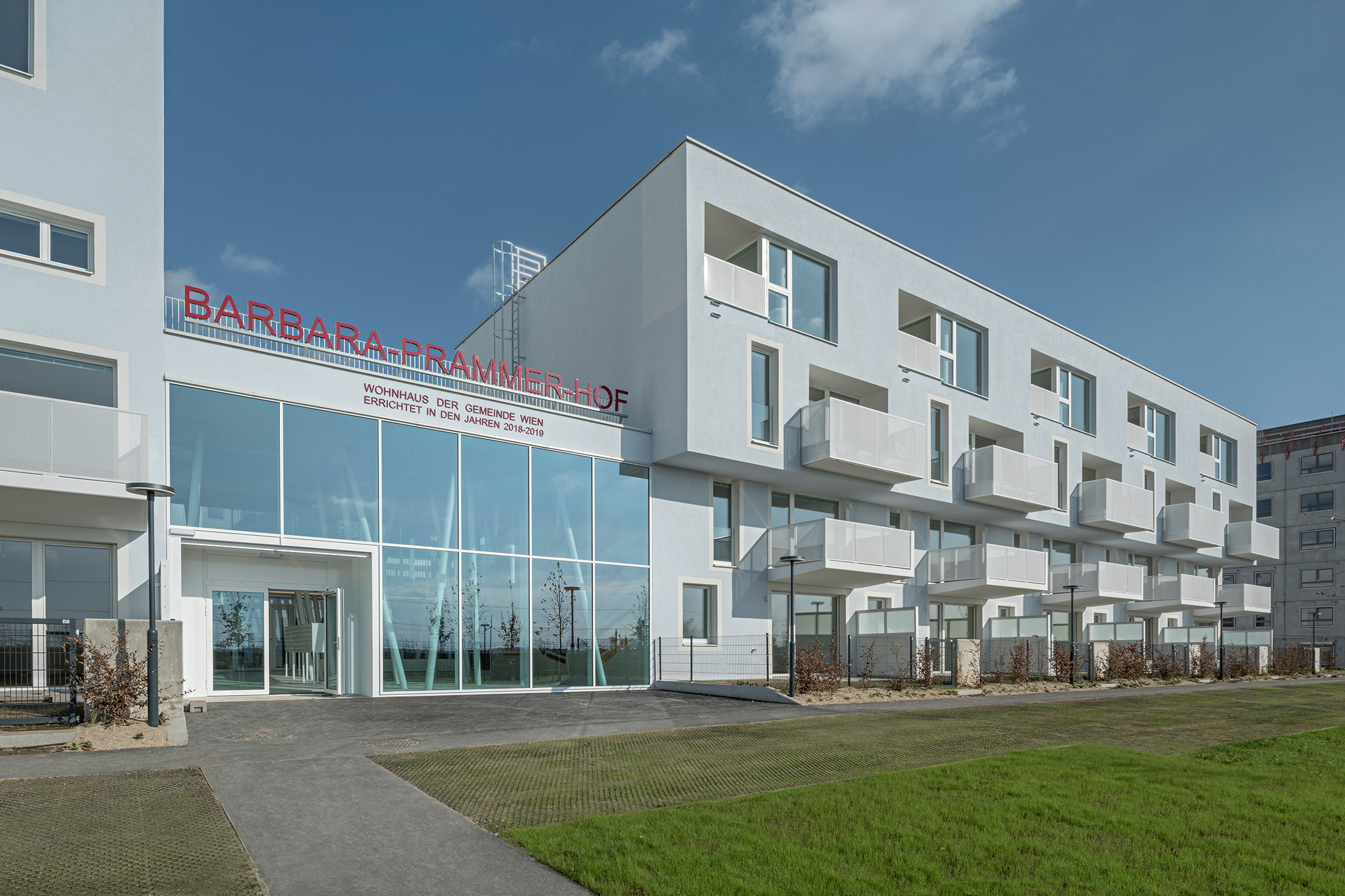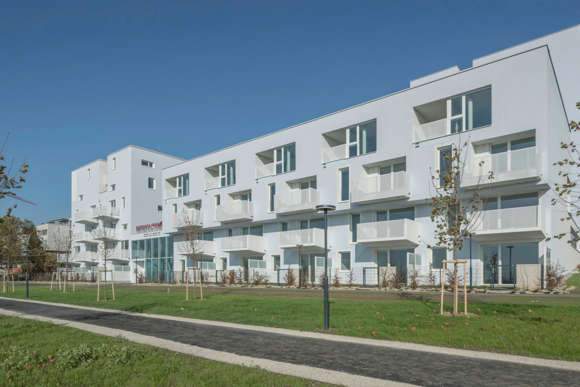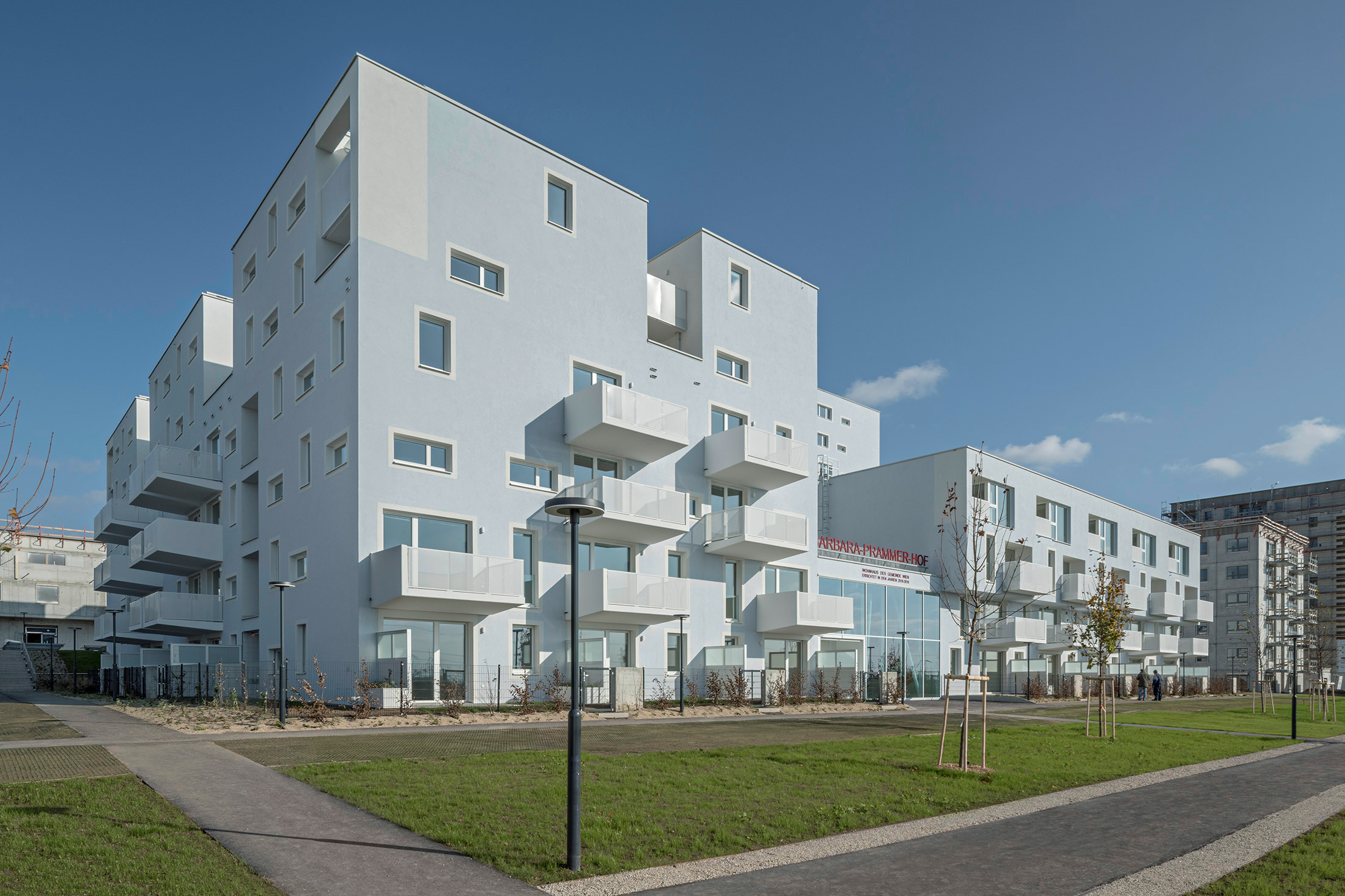 Der erste fertiggestellte „Gemeindebau neu“ in der Fontanastraße, in alter Gemeindebautradition Barbara-Prammer-Hof genannt, weist in eine andere Richtung. Sein Entwurf ist Ergebnis eines zweistufigen Architekturwettbewerbs, in dem dieselben Kriterien galten wie im geförderten Wohnbau, also Architektur, Ökonomie, Ökologie und soziale Nachhaltigkeit, allerdings gebunden an Errichtungskosten von 1850 Euro pro Quadratmeter Wohnnutzfläche und unter Wegfall des Eigenmittelbeitrags, der im geförderten Wohnbau von den Nutzern verlangt wird. Das Resultat beweist, dass das möglich ist, aber zeigt auch, wo Abstriche gemacht werden müssen.