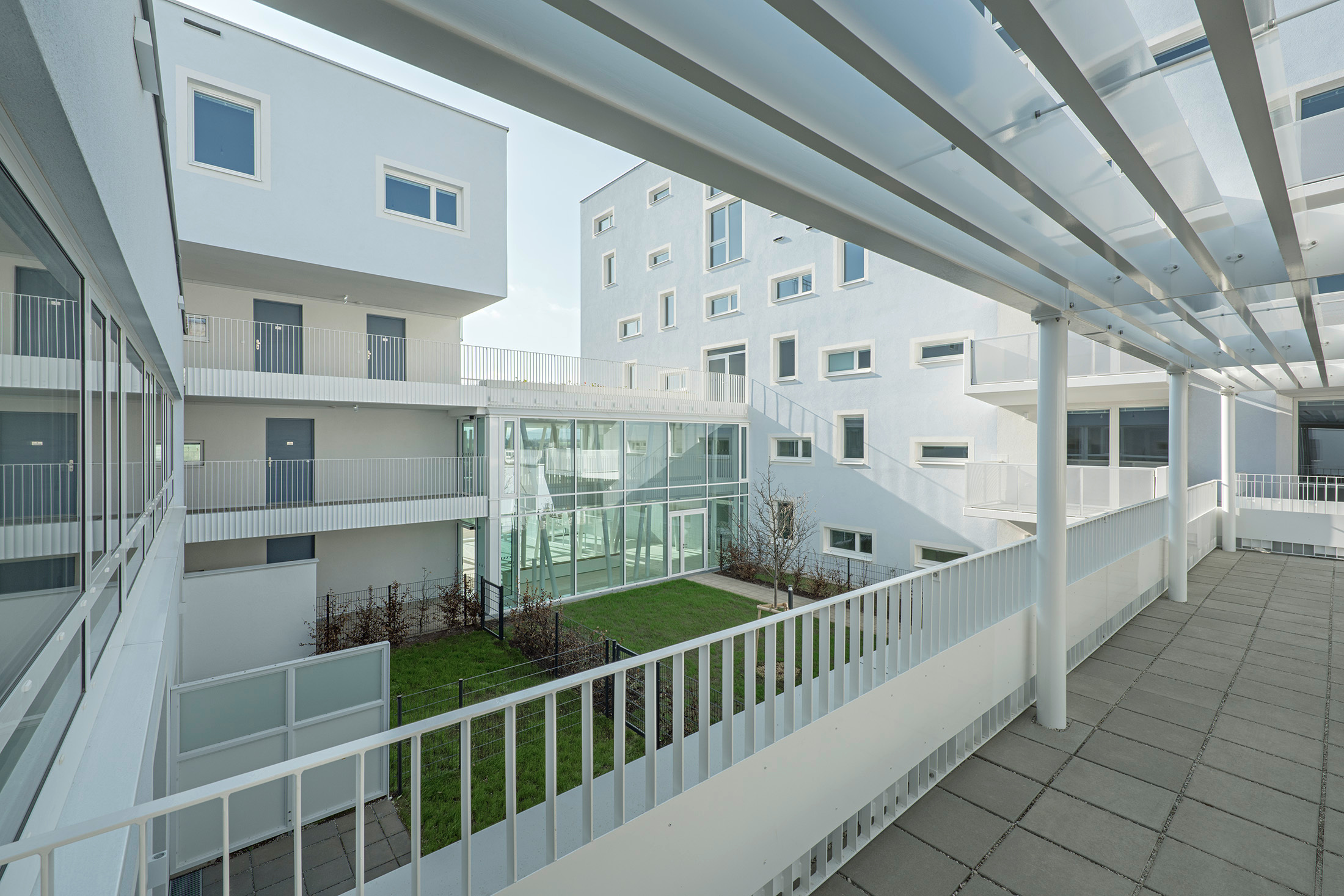 Und wo sind die Abstriche? Mehr als Stahlbeton, in Wärmedämmung verpackt, ist konstruktiv zu diesem Preis nicht zu haben; Sanitärbereiche und Küchen sind minimalistisch ausgestattet; die Balkone und Loggien entwässern über kleine Wasserspeier, die sich in der Fassade wichtigmachen, und die Details der Geländer sind mit „schlicht“ nur unzureichend beschrieben. Zumindest bei den Fenstern aus Holz und Aluminium wurde nicht gespart. Trotzdem: Für dieses Segment des geförderten Wohnbaus ist hier eine hervorragende Lösung entstanden, an der sich der „Gemeindebau neu“ zu messen haben wird.