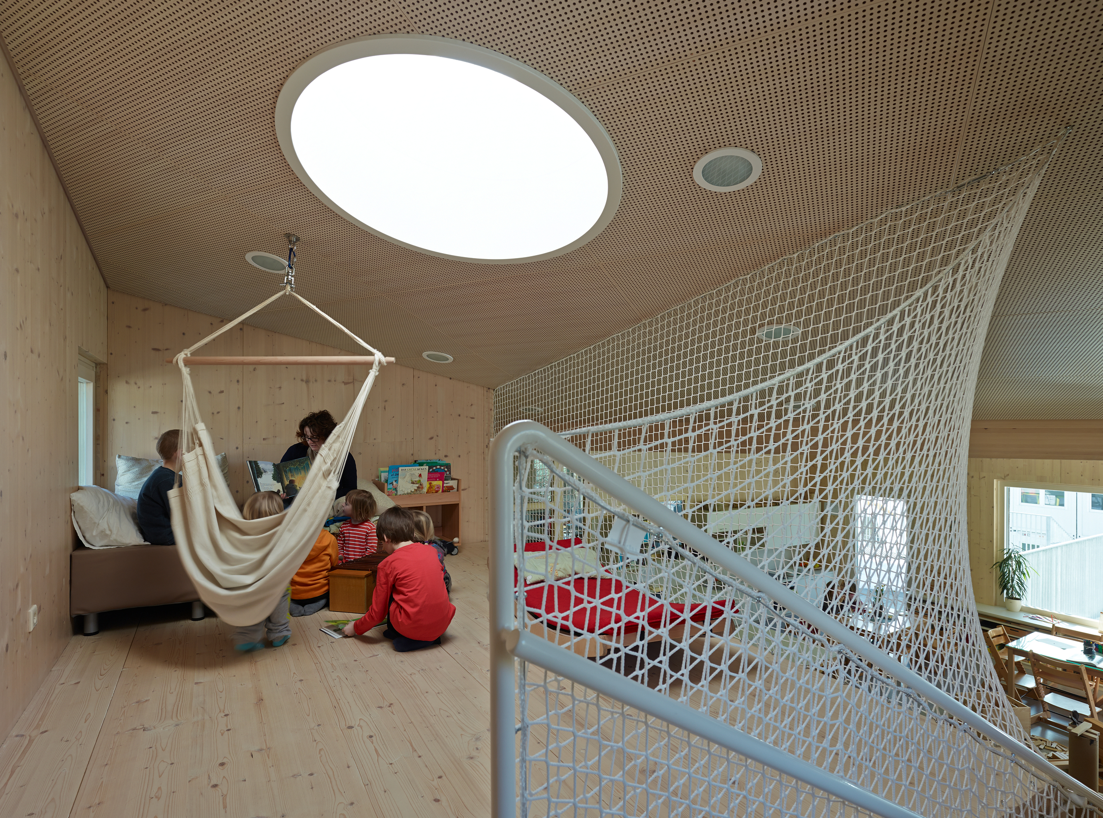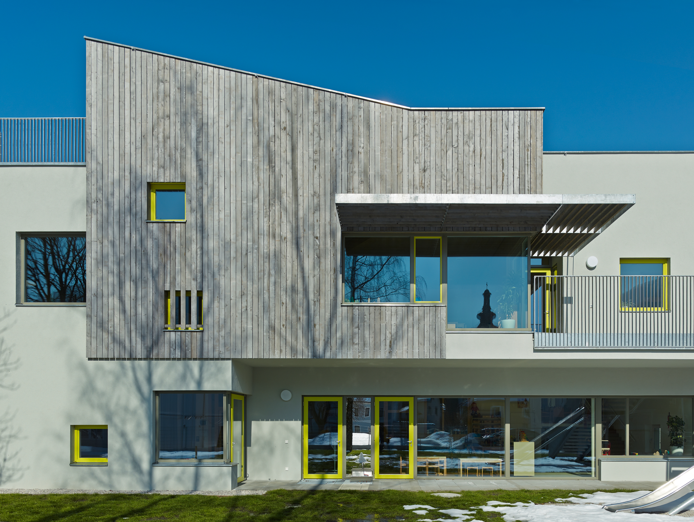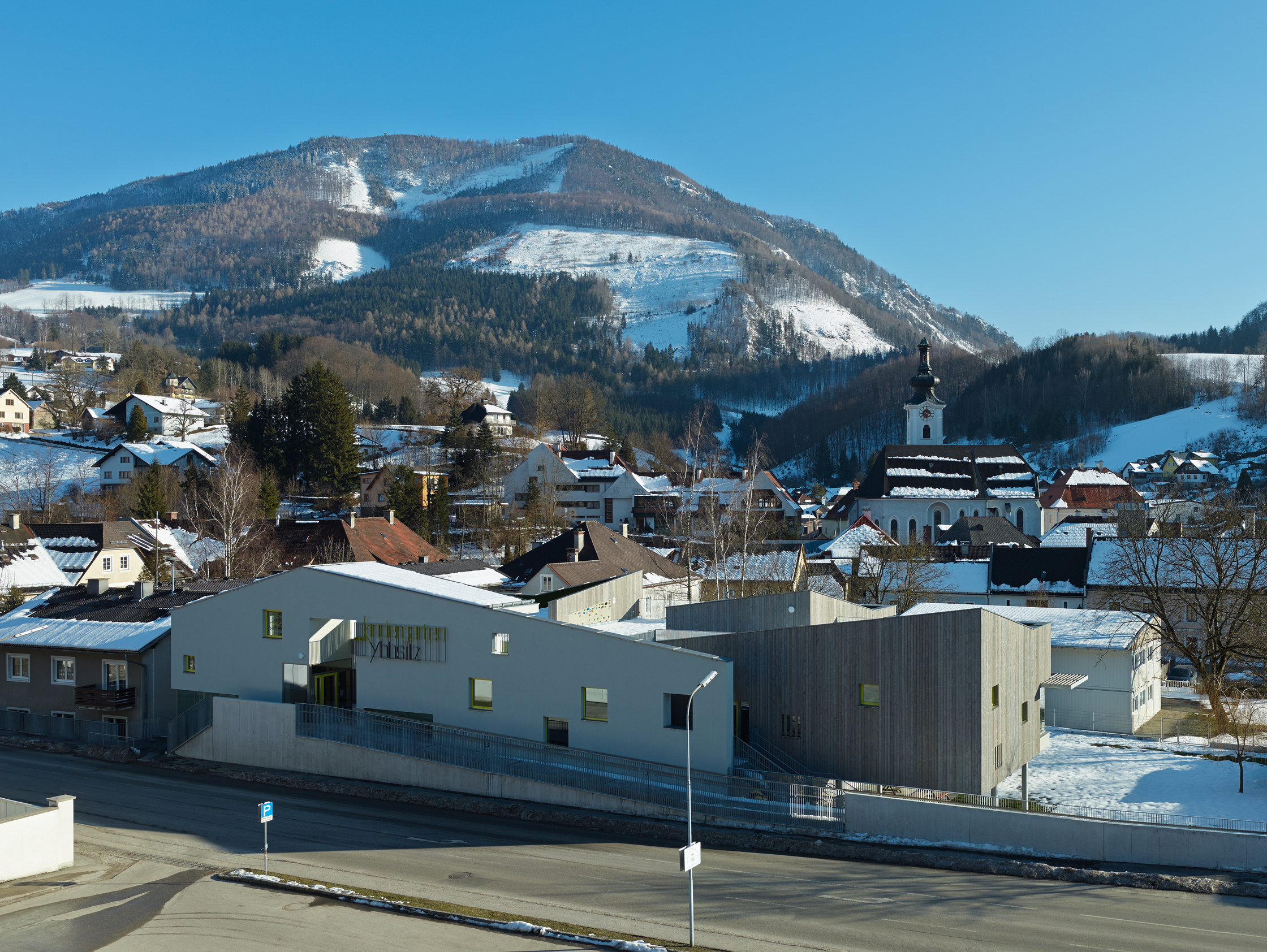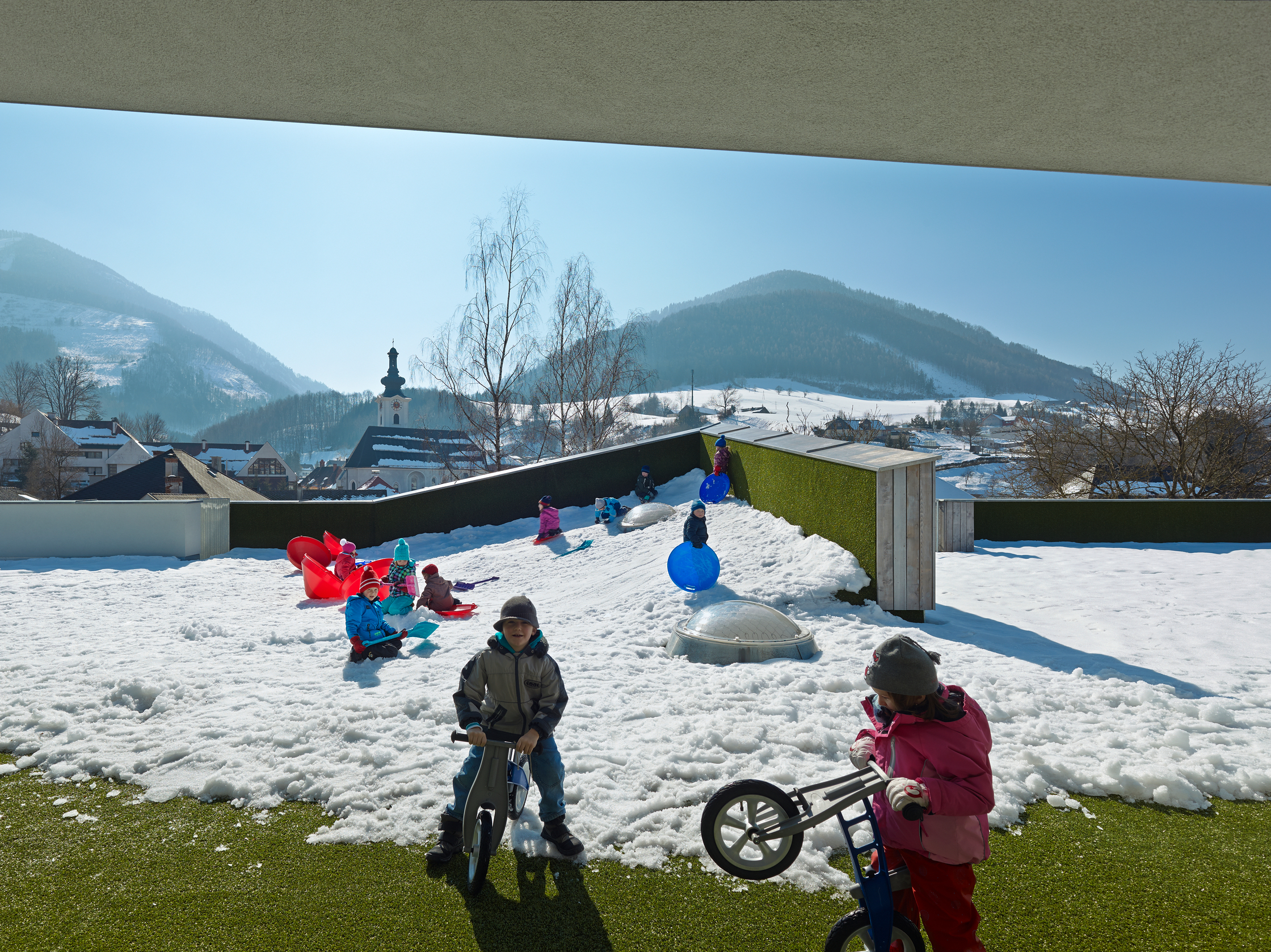 Hauenfels, Theresia (2013): „Kindergarten in Ybbsitz – Bleib‘ nicht auf ebnem Feld!“ In: Architektur.Aktuell, Nr. 397, 4.2013, S. 72ff.