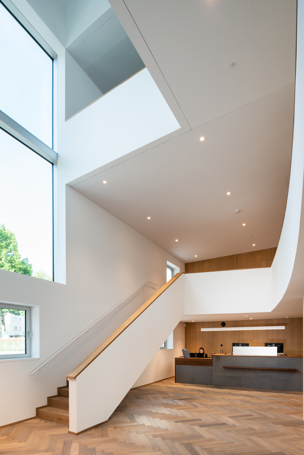 Um in den Räumen eine möglichst hohe Behaglichkeit im Winter wie auch im Sommer zu schaffen, wurden großflächige Heiz- und Kühlflächen geschaffen. Die Energieabgabe und Energieaufnahme geschieht zum größten Teil über Strahlung und somit kommt es zu fast keinen Luftbewegungen und damit verbunden Zugerscheinungen. Durch die richtige Auslegung und Wahl Medientemperatur in den Heiz- Kühlflächen kann eine Oberflächentemperatur nahe der Raumtemperatur realisiert werden. Dies hat den Vorteil, dass es zu keiner „Strahlungsasymmetrie“ im Raum kommt. Die Strahlungsasymmetrie spielt eine große Rolle für das Wohlbefinden des Menschen. Negativbeispiel wäre ein elektrisches Infrarotheizpaneel mit einer Oberflächentemperatur von ca. 100°C. Oberflächentemperaturen nahe der Raumtemperatur haben zusätzlich den Vorteil, dass im Sommer hohe Vorlauftemperaturen möglich sind und im Umkehrschluss im Winter mit niedrigen Vorlauftemperaturen gearbeitet werden kann. Dies hat zur Folge, dass der Wirkungsgrad von Wärmepumpen und Kältemaschinen merklich besser wird.