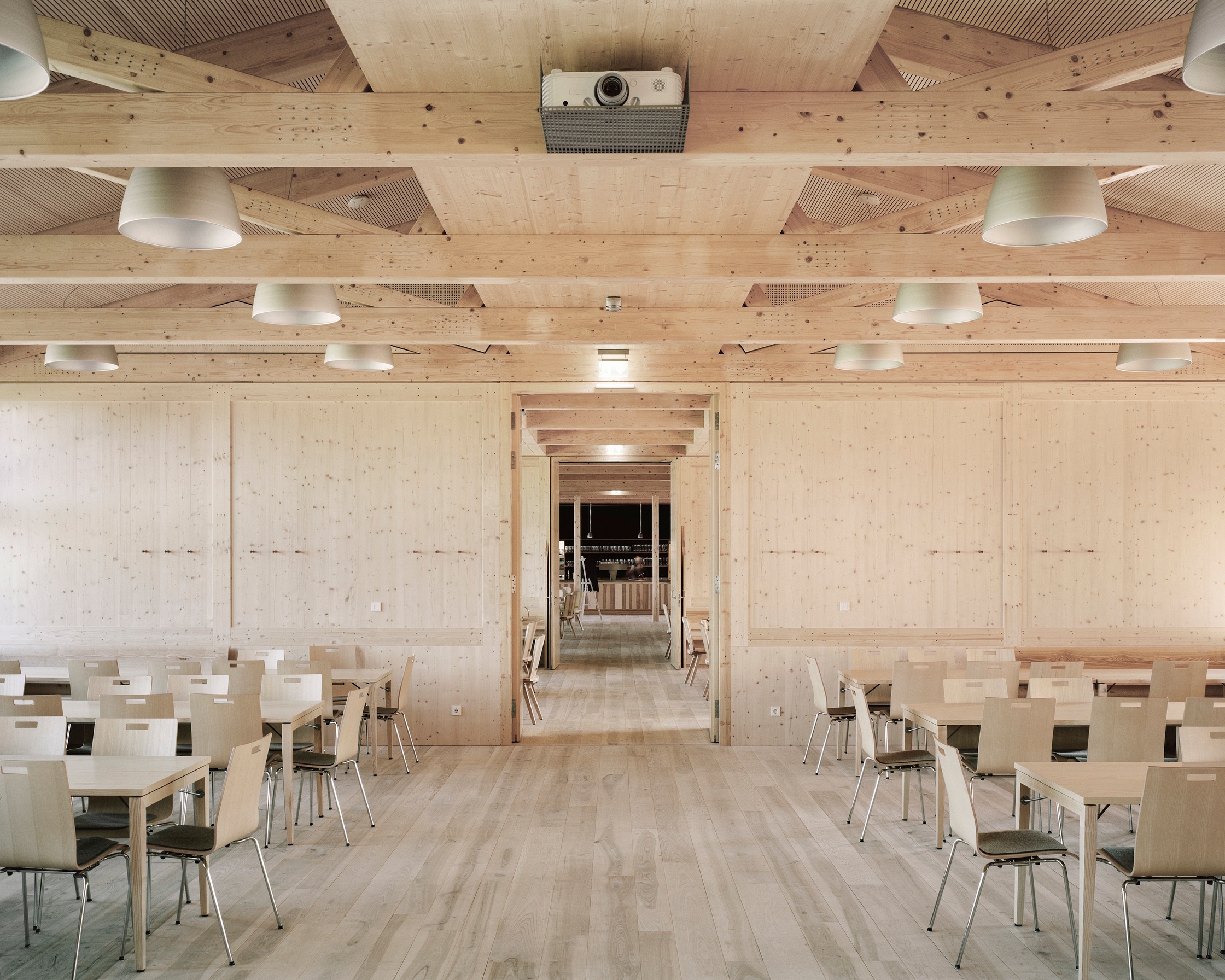 - Multifunktionale, langfristig flexible und somit nachhaltige Raumstruktur unter einem einfachen Dach.