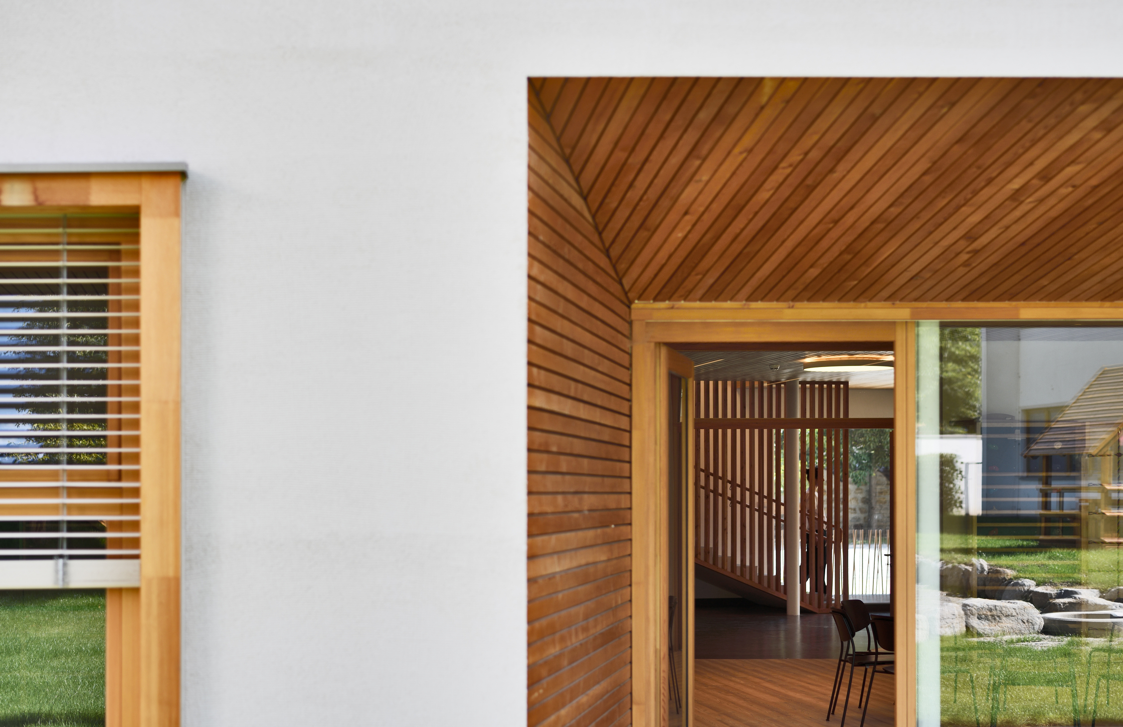 - Holzbau, Überwiegende Verwendung von Dämmstoffen aus nachwachsenden Rohstoffen, Überwiegende Verwendung von HFKW-freien Dämmstoffen, Vermeidung von PVC für Fenster, Türen, Vermeidung von PVC im Innenausbau