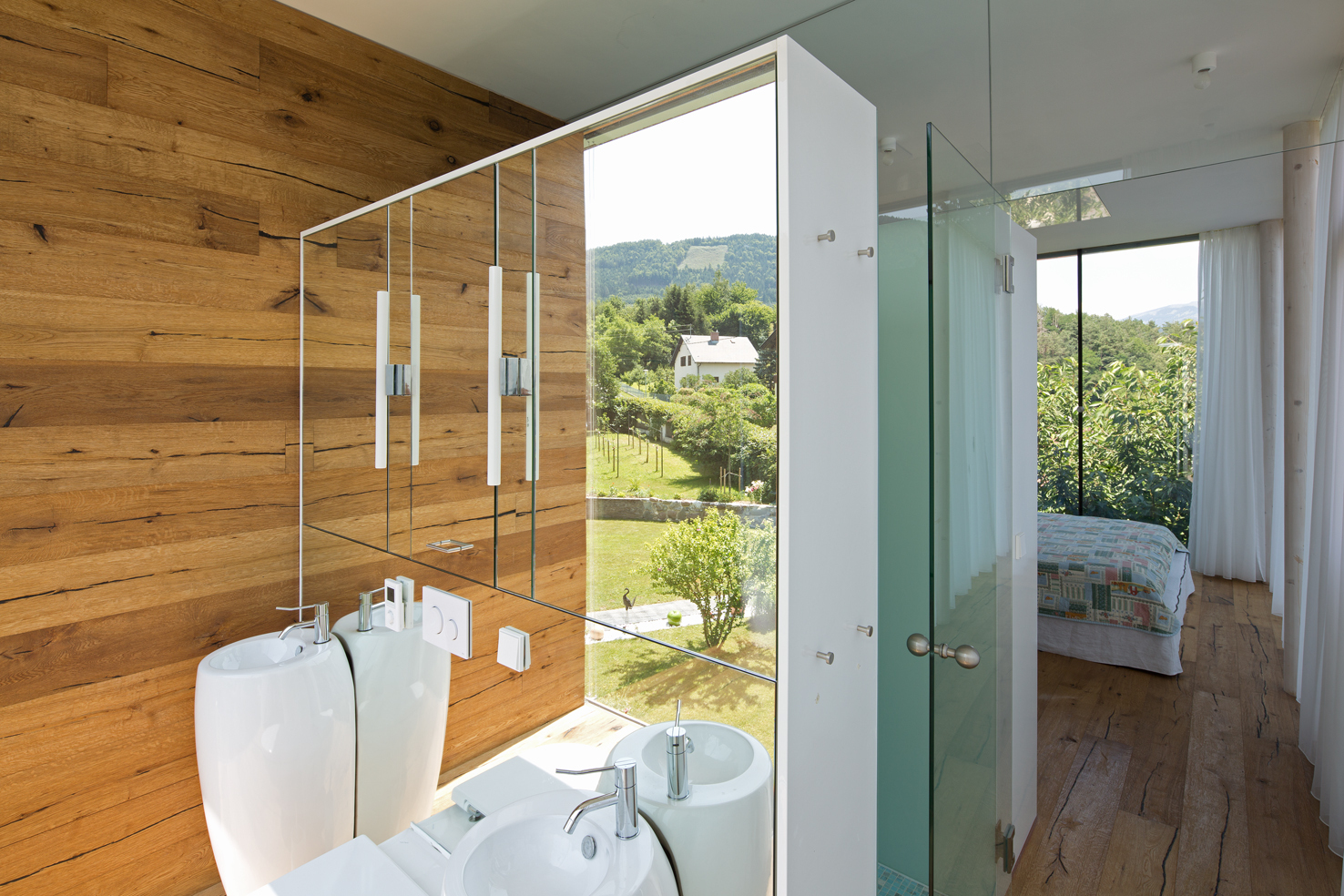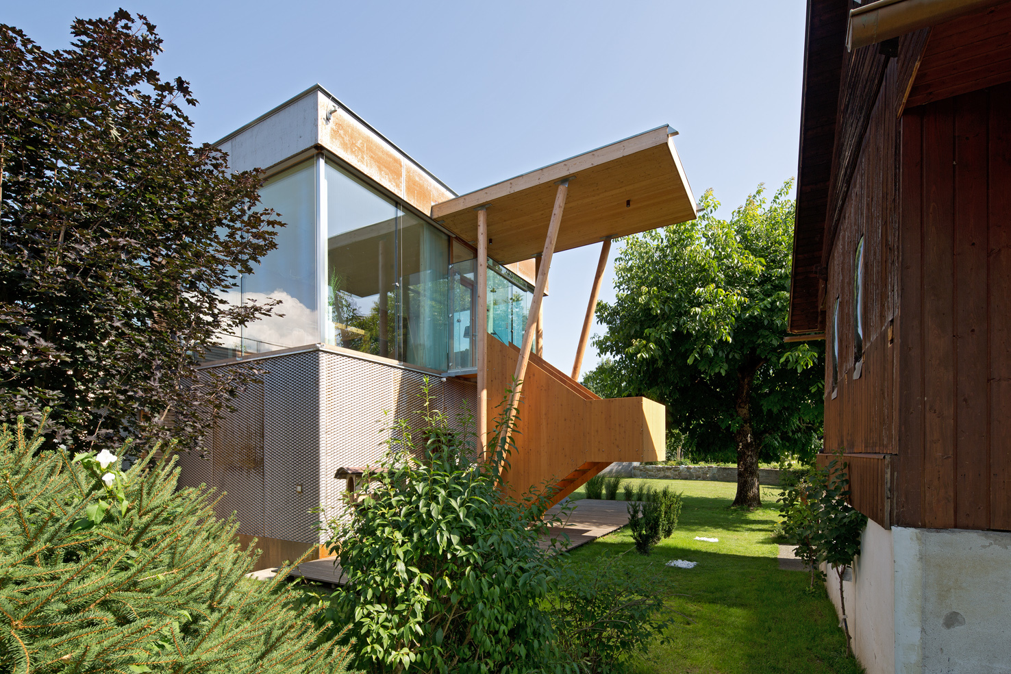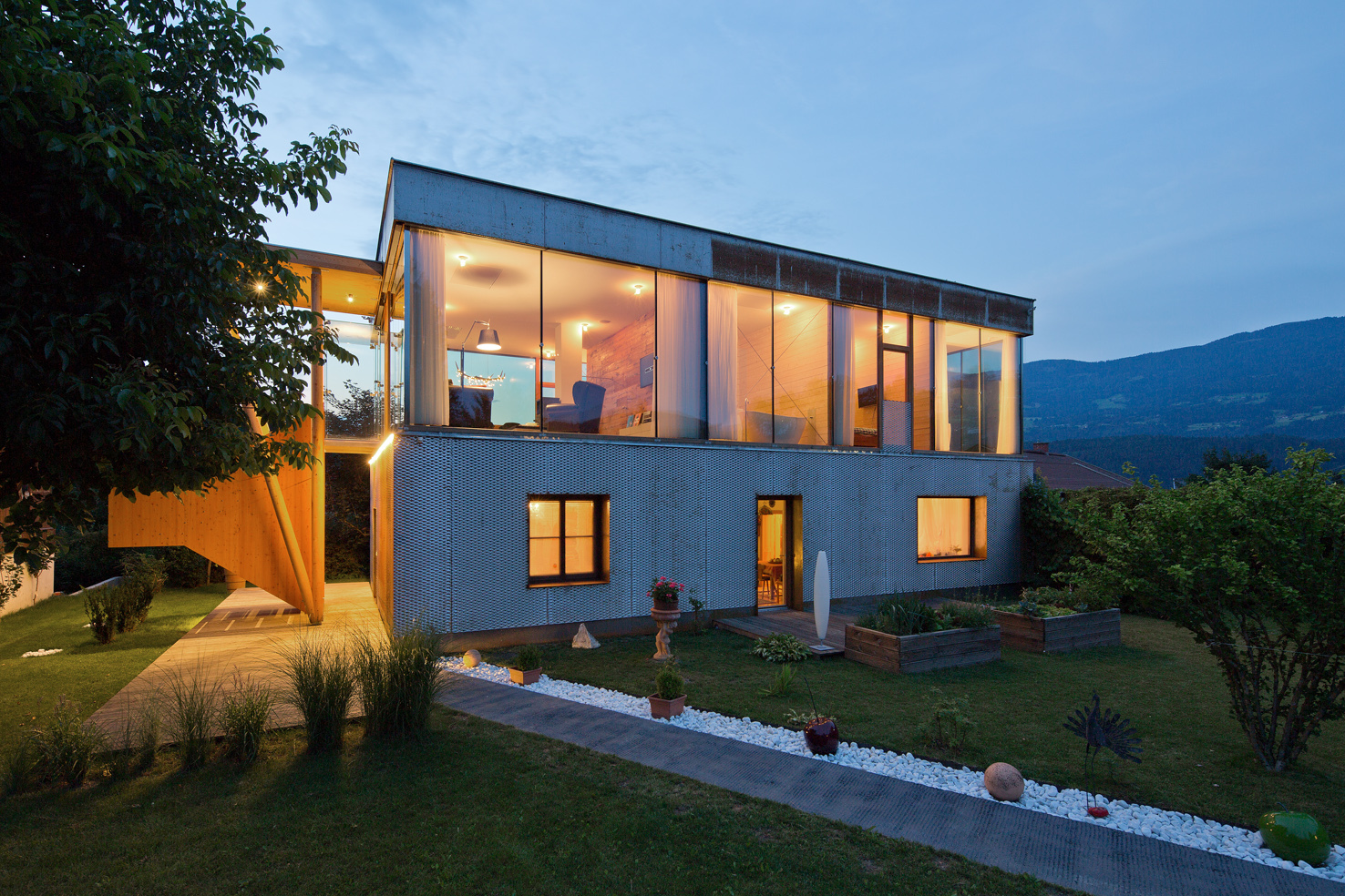 - Holzbau, Stahl-Glaskonstruktion, Vermeidung von PVC für Fenster, Türen, Vermeidung von PVC im Innenausbau