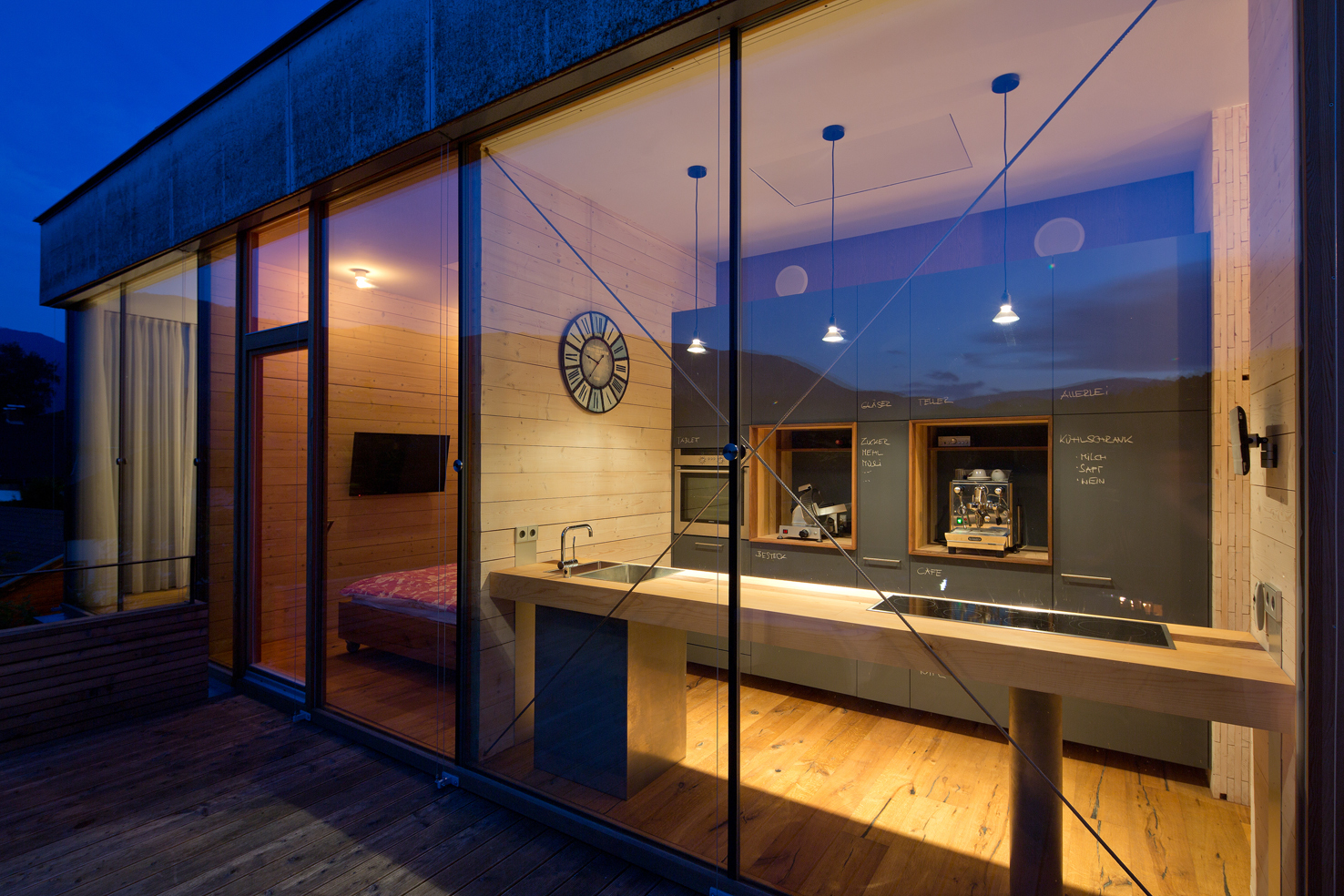 Am Flachdach befindet sich eine 4 kWp PV-Anlage. Mit dieser wird der Stromverbrauch des Warmwasserboilers und der Infrarotheizung entsprechend reduziert.
