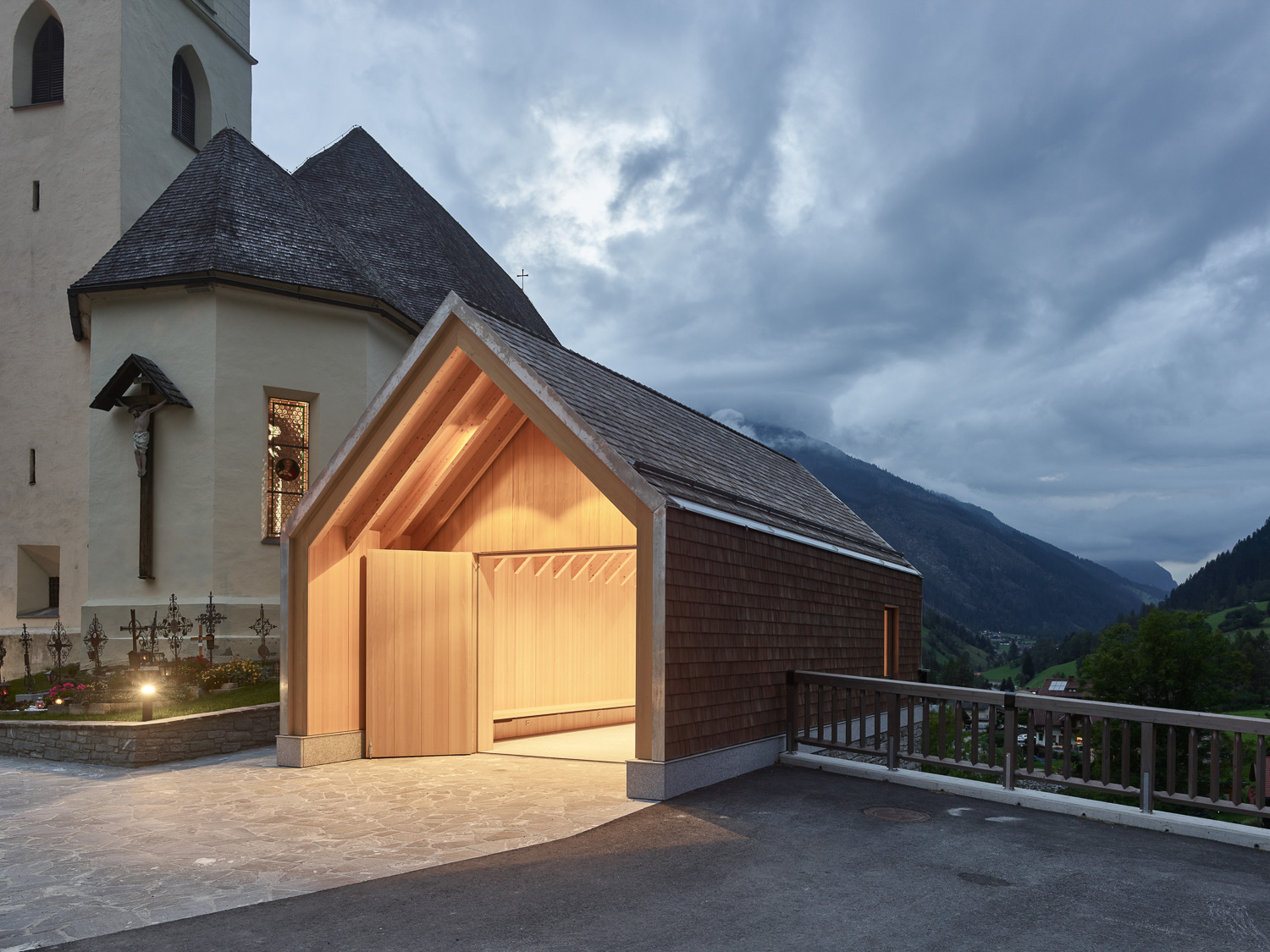 Das Projekt ist aus dem Verfahren Aussegnungshalle Mörtschach hervorgegangen