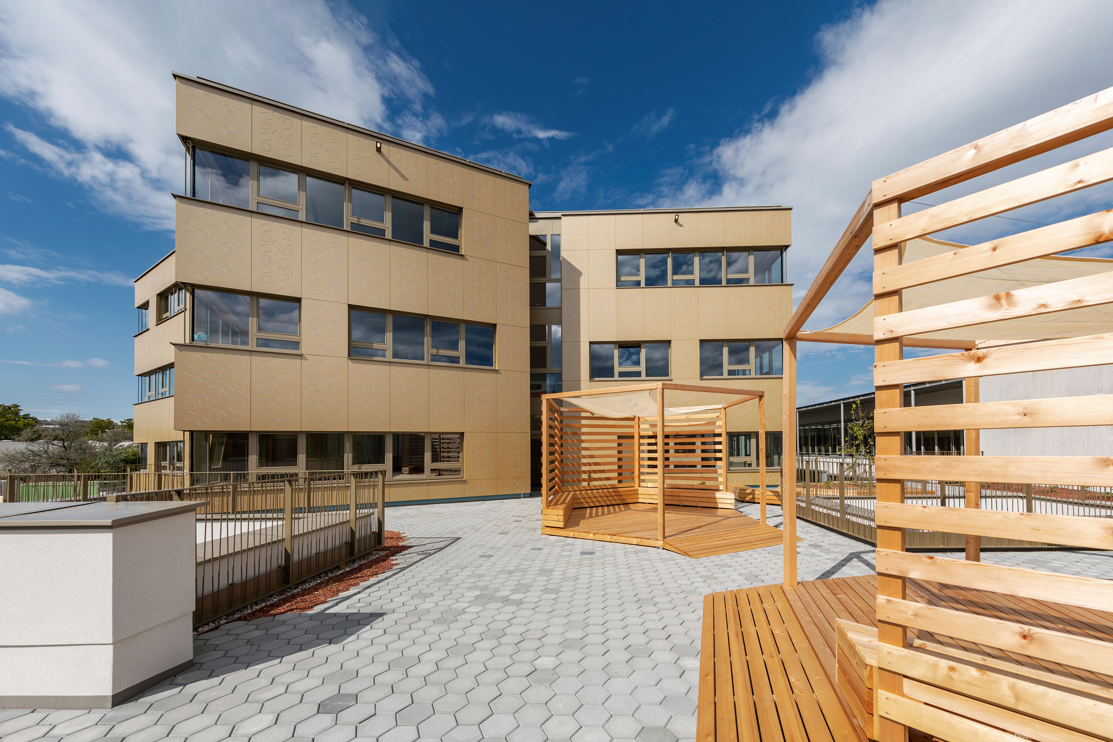 Das Projekt ist aus dem Verfahren „Schulerweiterung ONMS und Neuerrichtung VS - 23., Carlbergergasse 72“ hervorgegangen