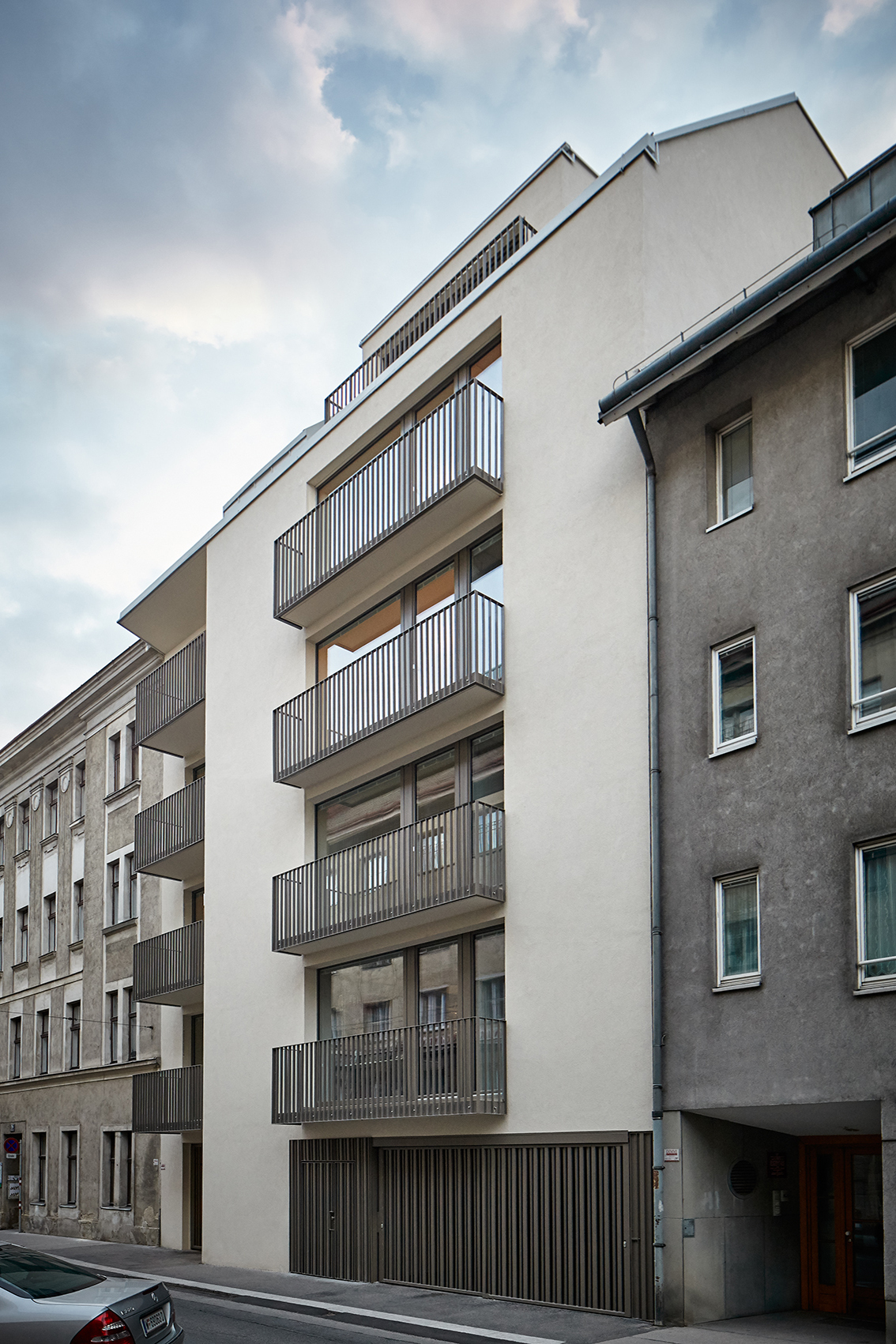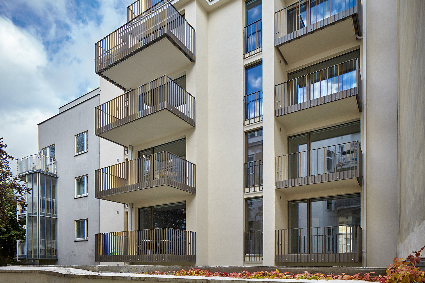 Die BewohnerInnen wünschten sich ein Haus ohne Garage. Denn bei der Bedarfserhebung wurde festgestellt, dass für 10 Wohnungen lediglich ein Stellplatz (aus beruflicher Notwendigkeit) benötigt wurde. Die Baugruppe hätte gern ein Haus ohne Stellplätze gebaut und an ihrer Stelle ein Erdgeschossgewerbelokal vorgesehen. Da jedoch der Bezirk seine Zustimmung nicht in Aussicht stelle, wurde eine Garage mit zwei Stellplätzen hergestellt, von denen ein Stellplatz extern vermietet wurde. Die anderen baurechtlich erforderlichen Stellplätze wurden mit einem privaten Sicherstellungsvertrag nachgewiesen.