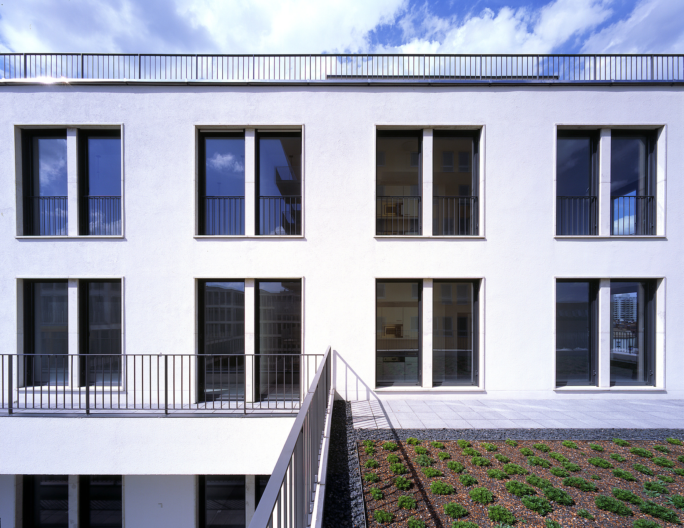 Nicht nur bei Schweizer Architekten wie Burkhalter und Sumi oder Gigon Guyer ist Farbe in der Baukunst ein Thema. Auch das Schaffen einiger der wichtigsten deutschen Büros zeichnet sich durch einen Hang zur Farbigkeit aus. So suchen die in Berlin tätigen Architekten Sauerbruch Hutton in ihren Bauten die Tradition eines Bruno Taut mit experimentellen und ökologischen Aspekten zu vereinen. Der Münchner Otto Steidle hingegen vertraut der Verführungskunst einer Architektur, die aus dem Widerspruch von bunt schillernden Fassaden und klaren Volumen resultiert. Obwohl man Steidles heutige Liebe zur farbigen Fassade wohl auch aus dem Münchner Kontext heraus erklären könnte, ist sie doch das Resultat einer jahrzehntelangen Annäherung. Bei seiner ersten Arbeit, der Wohnsiedlung an der Genter Strasse in München, die ihn 1972 bekannt machte, stand noch der strukturelle Ansatz im Mittelpunkt der Recherche, während die Farbe höchstens unterschwellig zum Zuge kam. Eine Dekade später, beim Projekt für die Documenta urbana in Kassel, beschäftigte ihn der postmoderne Zeitgeist. Gemeinsam mit Kiessler und Schweger gelang ihm dann Anfang der neunziger Jahre mit dem Verlagshaus Gruner und Jahr in Hamburg ein einprägsamer Baukomplex, auf den sich die Hochglanzmagazine begierig stürzten. Mit seinen grauen Fassaden und den beinahe expressiv zur Schau gestellten konstruktiven Teilen entspricht dieser Bau einem gemässigten Hightech. Sein immer noch strukturalistisch verflochtener, von den alten Parzellen abgeleiteter Grundriss aber generiert eine urbanistische Abfolge interner Wege, Passerellen und Höfe.