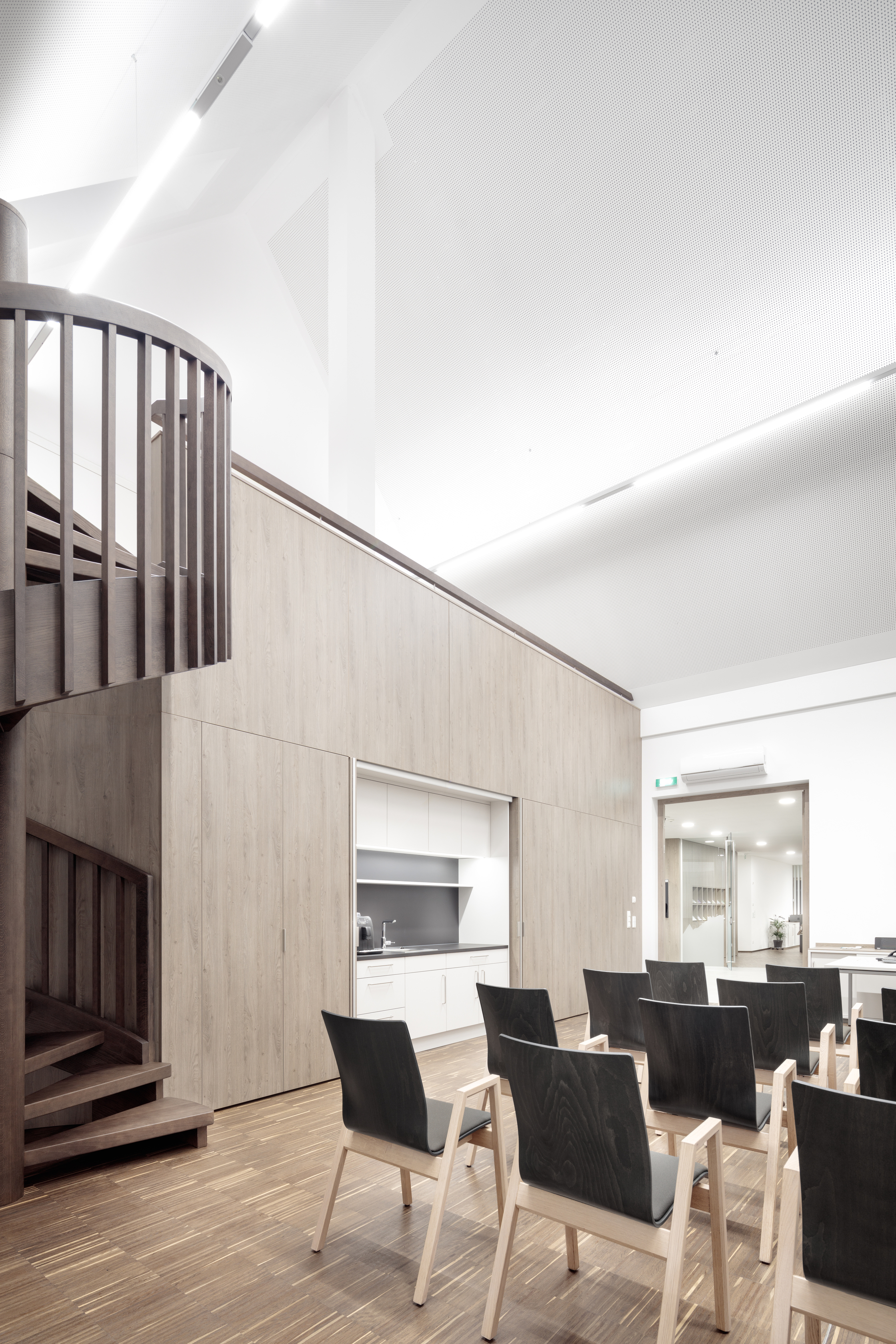 Zum ProduktDer Baukörper in Niedrigenergiebauweise wurde als Ziegelmassivbau mit entsprechenden Speichermassen konzipiert. Die Fassade bildet ein Wärmedämmverbundsystem mit Hanfdämmplatten und Dünnputz. Das Dach ist mit Tondachziegeln gedeckt. Der optimierte Anteil an Fensterflächen in der Fassade und außenliegende Raffstore verhindern die Überhitzung in den Sommermonaten und gewährleisten die Sommertauglichkeit des Gebäudes ohne zusätzlichen Energieaufwand.