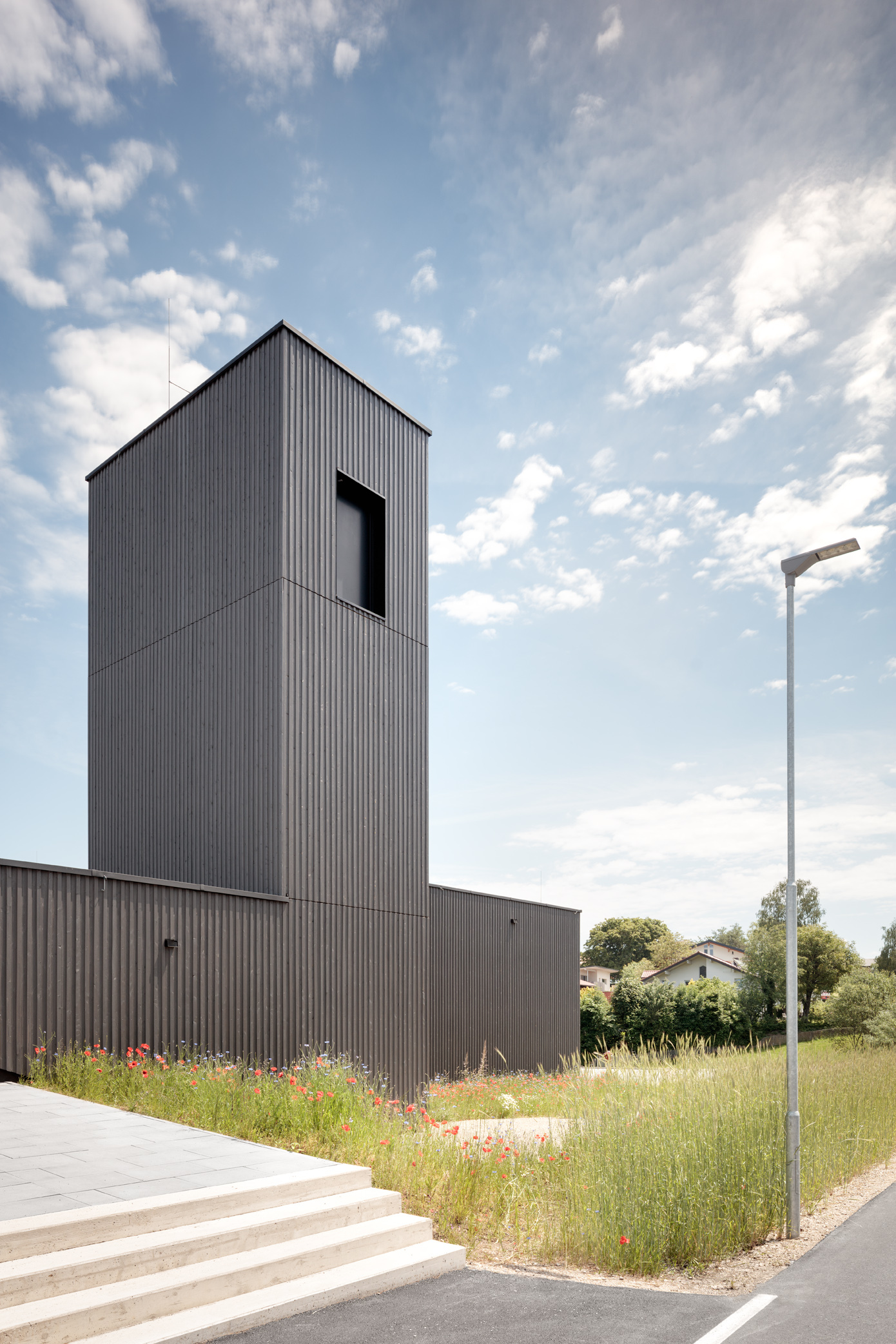 PV Anlage in die Fassade des Schlauchturmes integriert