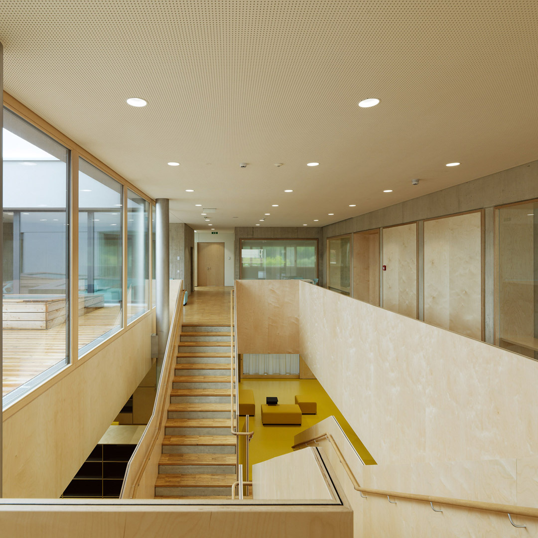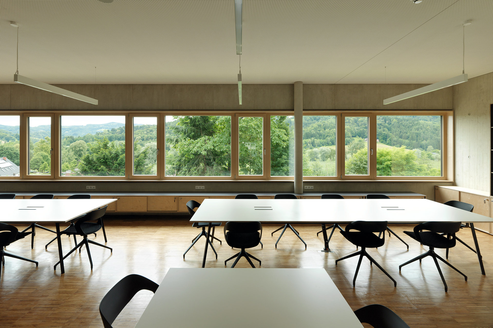 Sieben klassige Schule - Schwerpunkt Tourismus, für 120 Schüler:innen mit Turnsaal, Gruppenräumen, Nachmittagsbetreuung, Lehrküche, offener Bibliothek.