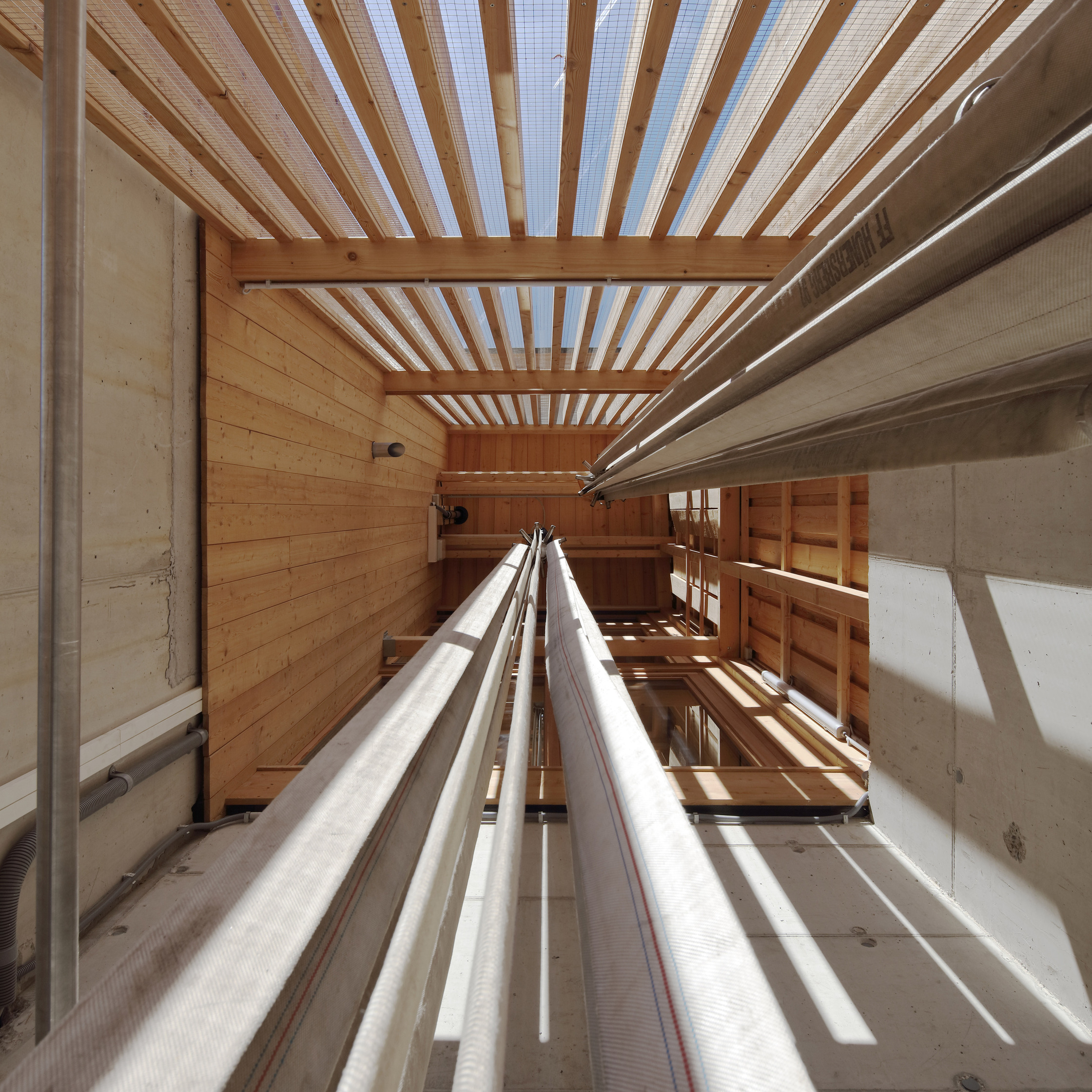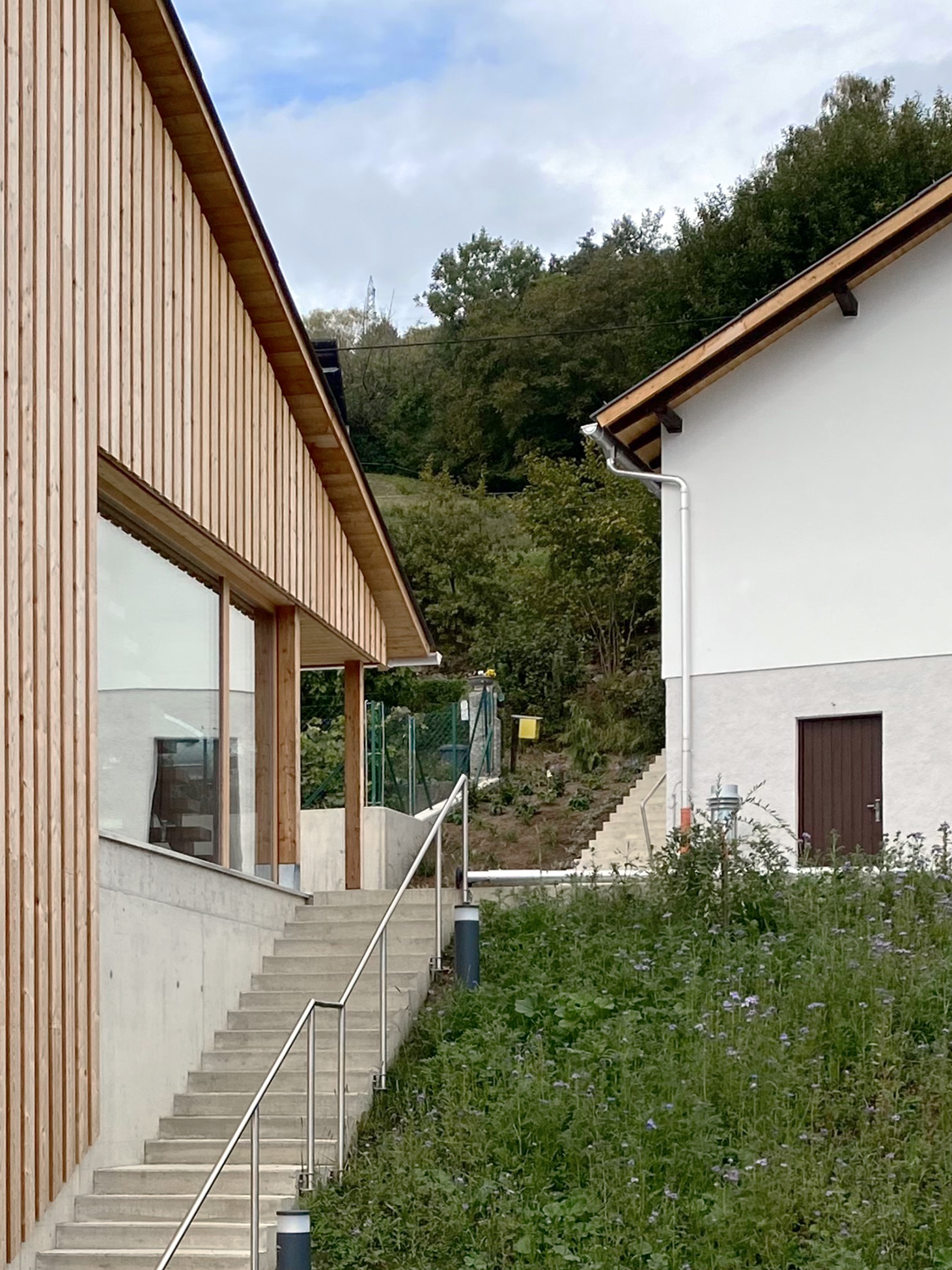 - Holzbau, Stahlbeton, Überwiegende Verwendung von HFKW-freien Dämmstoffen, Vermeidung von PVC für Fenster, Türen, Vermeidung von PVC im Innenausbau