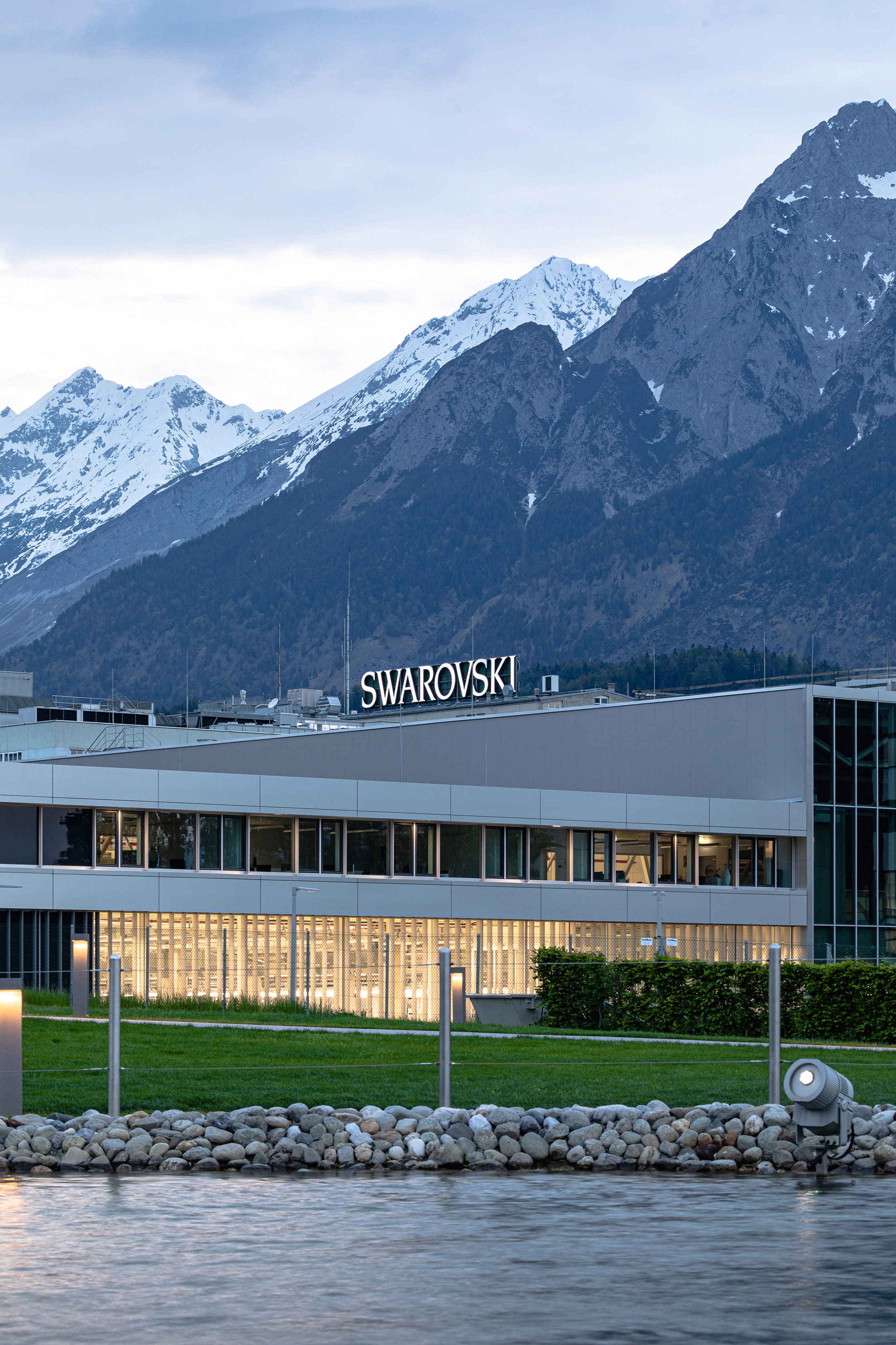 Zum ProduktDurch die ökologische Bauweise ergibt sich im Zusammenspiel mit der hochwertigen Fassadengestaltung als Blickfang eine wertvolle Markenstärkung für den Standort Wattens. Denn die Kristallfabrik ist auf die hohen EU-Standards ausgerichtet. Den Prozess zur Erlangung eines LEED-Zertifikats (Herbst 2019) begleitet die ATP-eigene Forschungsgesellschaft für nachhaltiges Bauen, ATP sustain, auf deren Empfehlungen der Bauherr zahlreiche Maßnahmen in die Realisierung hat einfließen lassen. So wurden neben der ökologisch wertvollen Herangehensweise im Bereich der TGA beispielsweise die überschüssigen Aushubmassen für eine öffentliche zugängliche Streuobstwiese mit Obstgarten genutzt. Dank der engen Abstimmung mit einem örtlichen Baubiologen wachsen heute auf der begrünten Außenfläche heimischen Pflanzen. Auch die gesamte Dachfläche ist extensiv begrünt. Regenwasser kann über eigens eingebrachte „Sickerboxen“ lokal unter Terrain versickern.