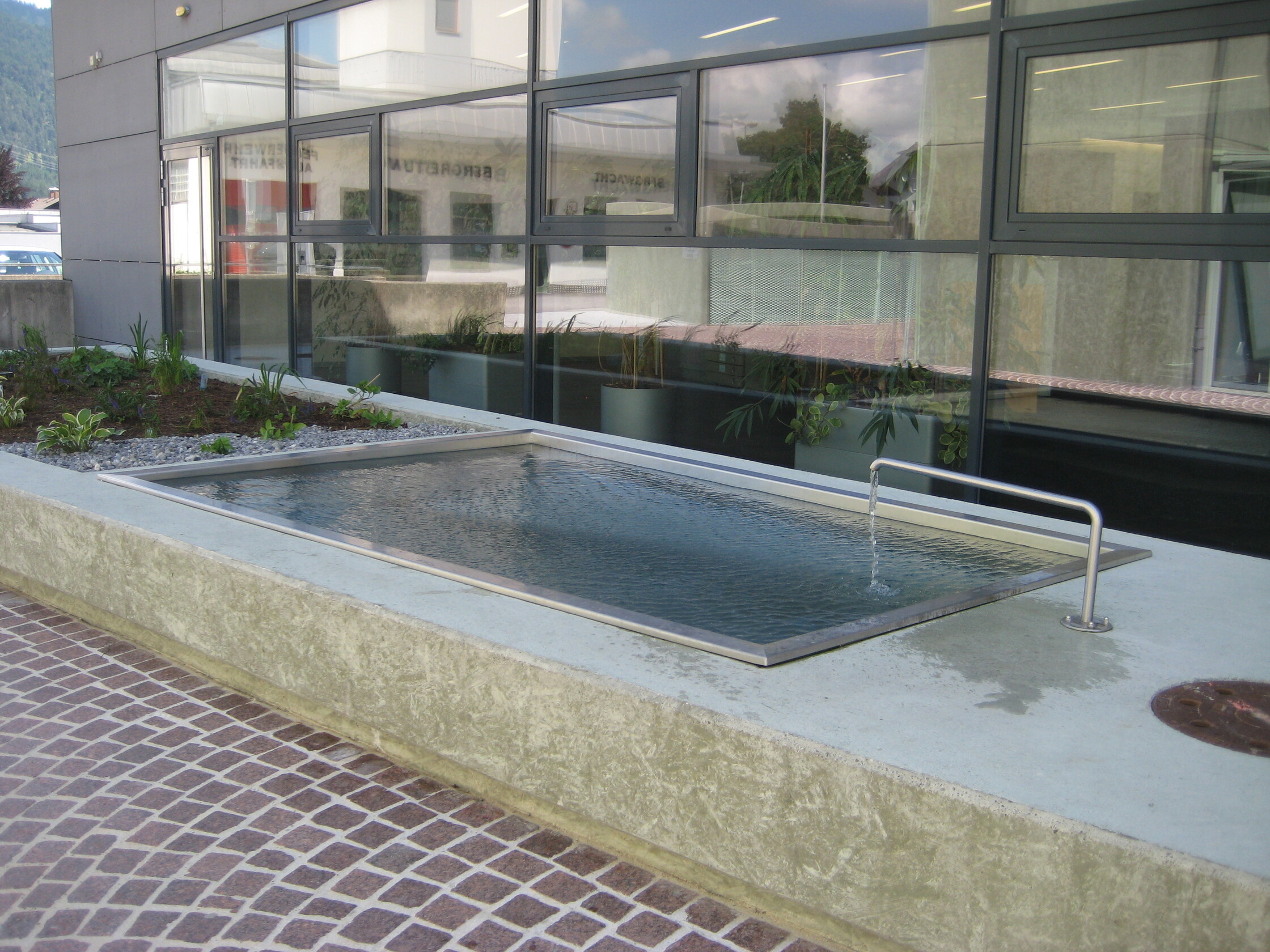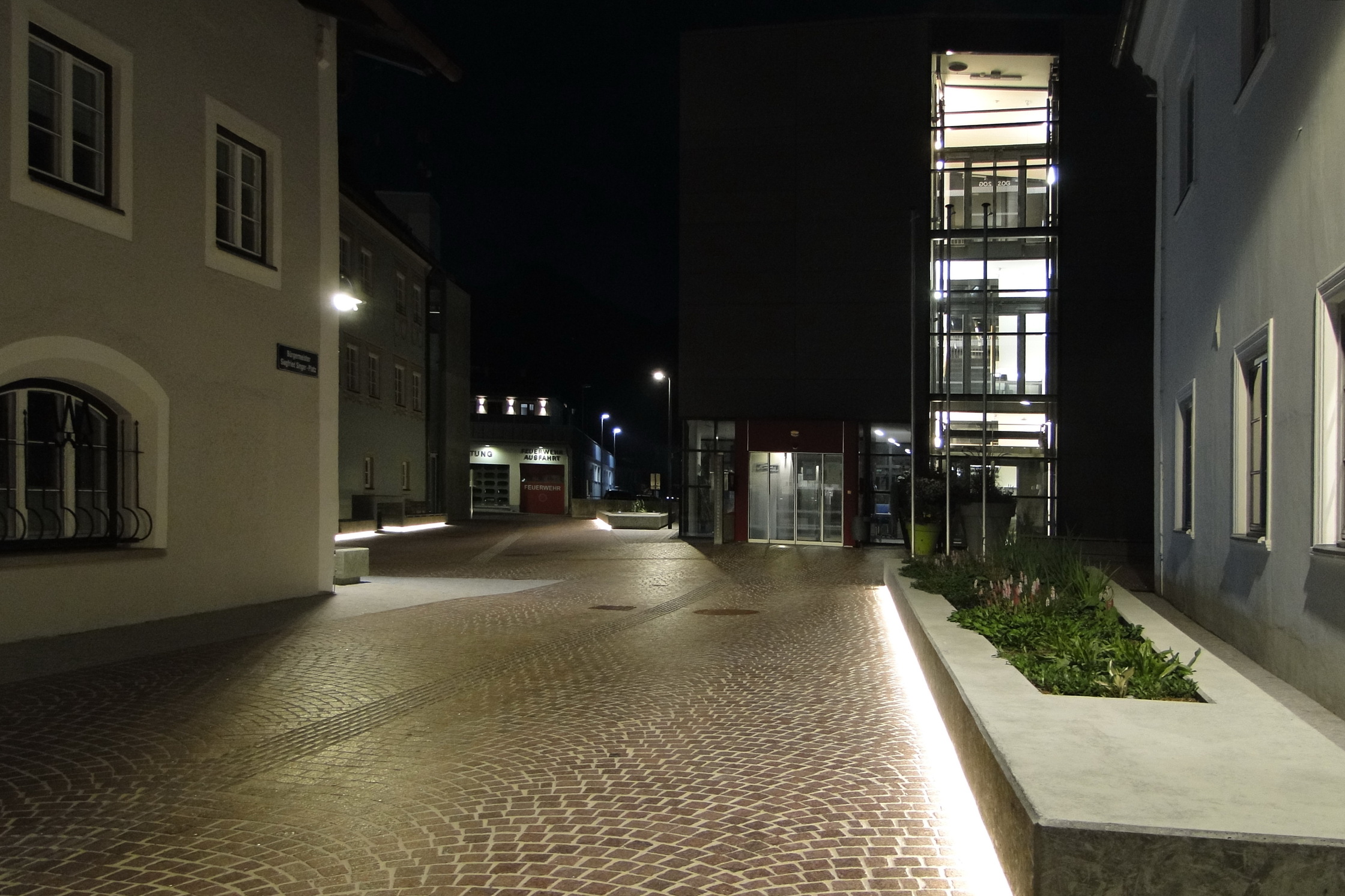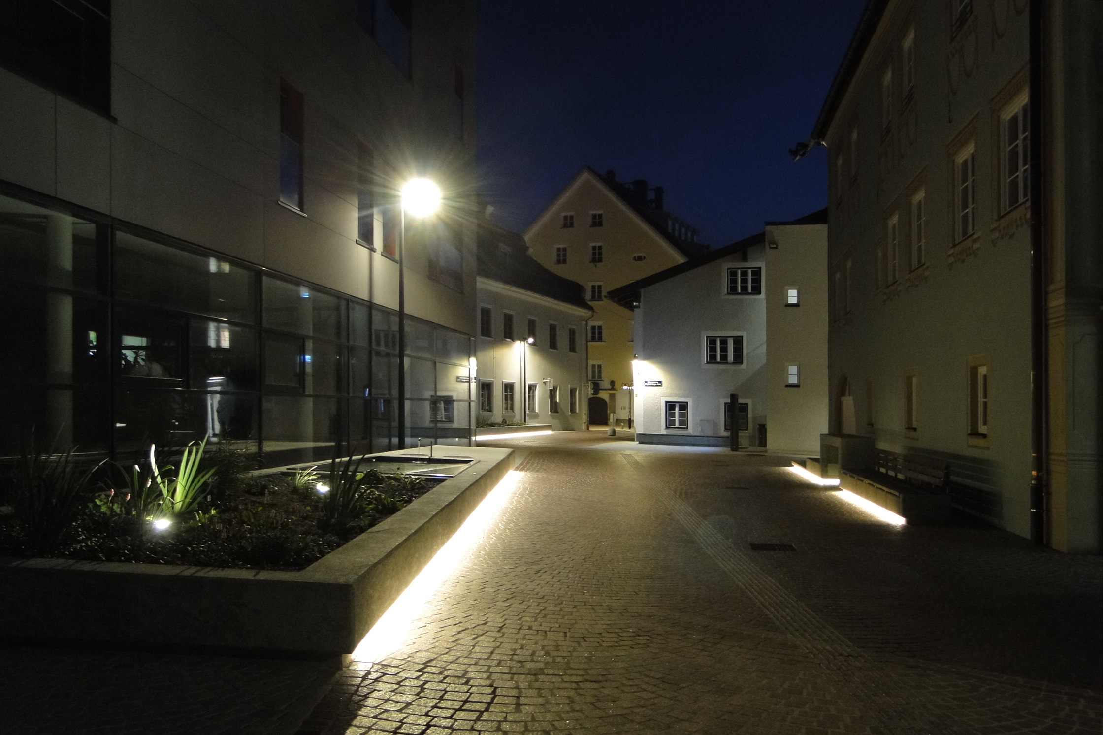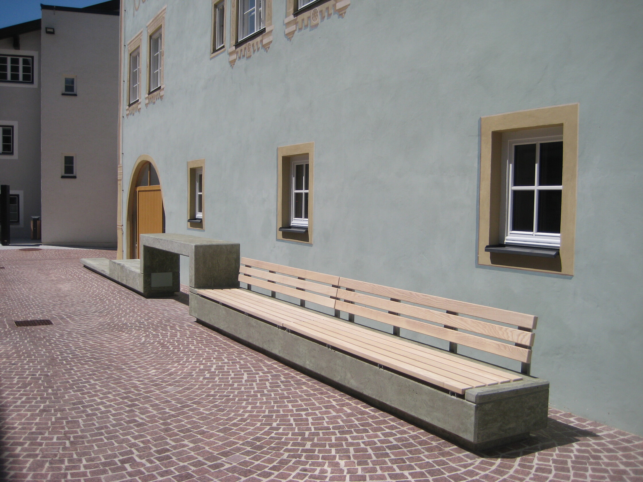 Höhengestaffeltes Betonband mit Barbereich und Sitzgelegenheiten