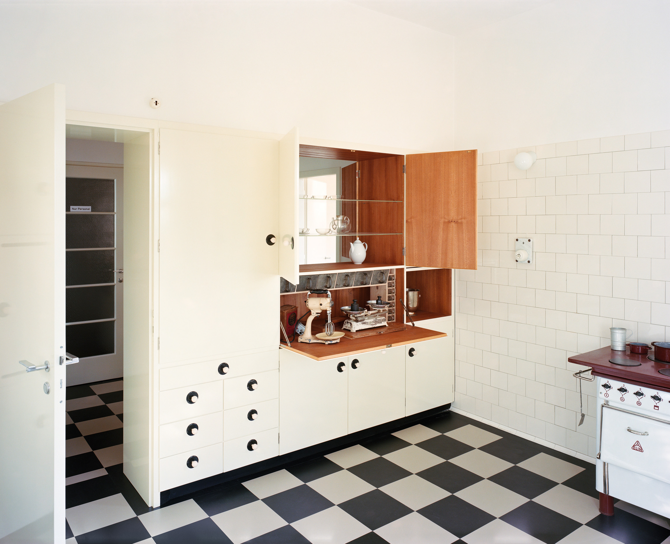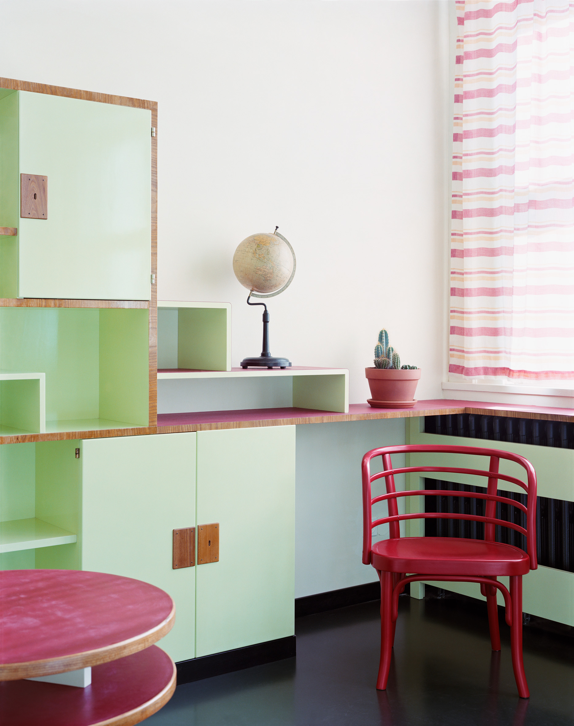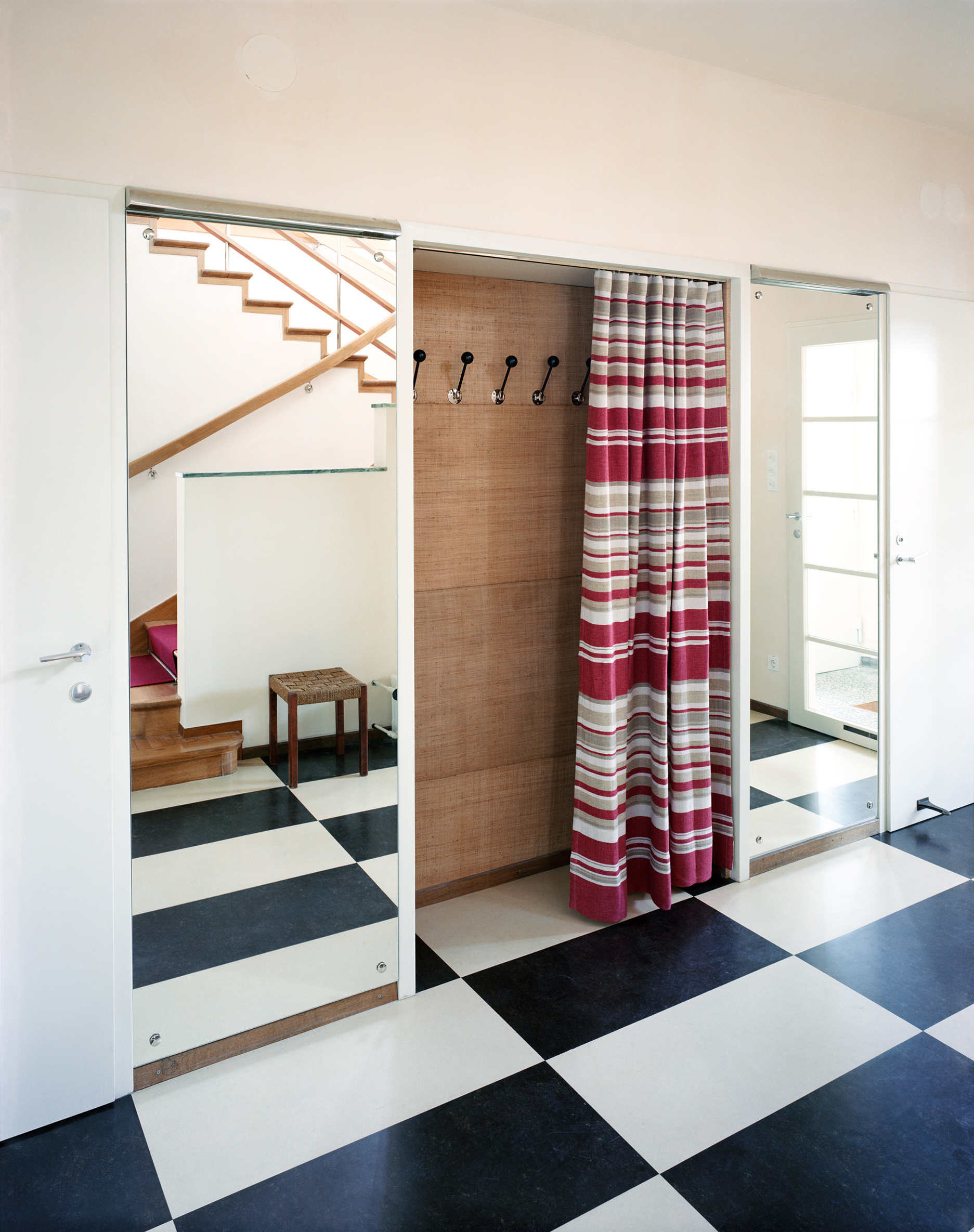 Die Rolle der Architektenteams ist essenziell, denn Parameter wie Barrierefreiheit, Fluchtwege, Statik, Haustechnik, Brandschutz sind kaum verhandelbar. Der CMP umfasst auch die künftige Erhaltung und Vermittlung des Denkmals, er ist quasi ein Wartungsbuch. Das Bundesdenkmalamt subventionierte ebenso die wissenschaftliche Untersuchung von Bauhistorie, Putz, Stein, Beton, Holz und Metall. Restauratorin Claudia Riff-Podgorschek befundete die Wandflächen: Der originale Putz war beige-sandfarben. Die Vorstellung einer „weißen Moderne“ ist vor allem der Schwarz-Weiß-Fotografie ihrer Zeit geschuldet, die Villa Rezek trägt nun wieder Ocker. „Wir brachten den Kratzputz auf Kalkbasis in historischer Technik auf“, sagt Eisenköck, „ohne Zement, ohne Kunstharz, diese Wand atmet.“ Vollwärmeschutz gibt es keinen – dafür schlanke Vordächer. „Man kann so ein Haus nicht komplett einpacken, ein Oldtimer wird mit einem E-Motor auch nicht nachhaltiger.“ Details sind in der reduzierten Formensprache der Moderne besonders wichtig. Eisenköck untersucht und rekonstruiert sie akribisch. Die Steinbrüstung der Treppe, die sich so hochelegant von der Halle – mit Blick in den Wohnsalon und einem Richtungswechsel in den ersten Stock – windet, ist rekonstruiert. „Wie saniert man solche Details seriös? Man kann sich über Fotos mit Beschreibungstext oder das Studium anderer Objekte der Bauzeit annähern und je nach Priorität Rückschlüsse ziehen.“ Eisenköck hat viele Bauten besucht und ist einschlägig belesen. „Bei dieser Brüstung haben wir zwei Marmorplatten im Fuchsbau des Gartens gefunden. Dank der Löcher der Schrauben, mit denen der Metallkorb für die Pflanzen befestigt war, konnten wir sie richtig zuordnen.“ Die Villa Rezek war oft publiziert: Die britische Kunstzeitschrift „The Studio“ brachte 1936 einen Beitrag mit Fotos von Franz Mayer, die auch das Innere zeigten. Materialien, Farben, Möbel, alles war genau beschrieben. So erfuhr man, dass Schmutzwäsche durch Rohre von den oberen Etagen in die Wäscherei befördert wurde und Sonnenterrassen mit Duschen ausgestattet waren.