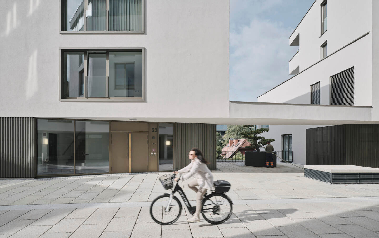 Zum Produktextensive Gründächer, schattenspendende Loggien, Erfüllung aller Pflanzgebote, ermöglichte Querlüftung der Wohungen, effiziente Erschließung der 3 Häuser mit 31 Einheiten und der Tiefgaragen mit 1 Abfahrtsrampe unter dem öff. Gut und mittels 3 Stiegenhäusern. Natürl.belichtete Stiegenhäuser+ Tiefgarage (vermeidung von Angsträumen)