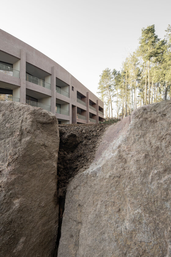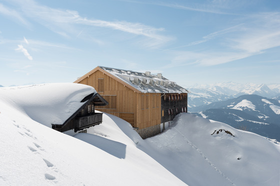 Fernwärme durch eigens errichtete Hackschnitzelheizung, die als separater Baukörper in den Hang gebaut wurde; Lüftungsanlage mit Wärmerückgewinnung.