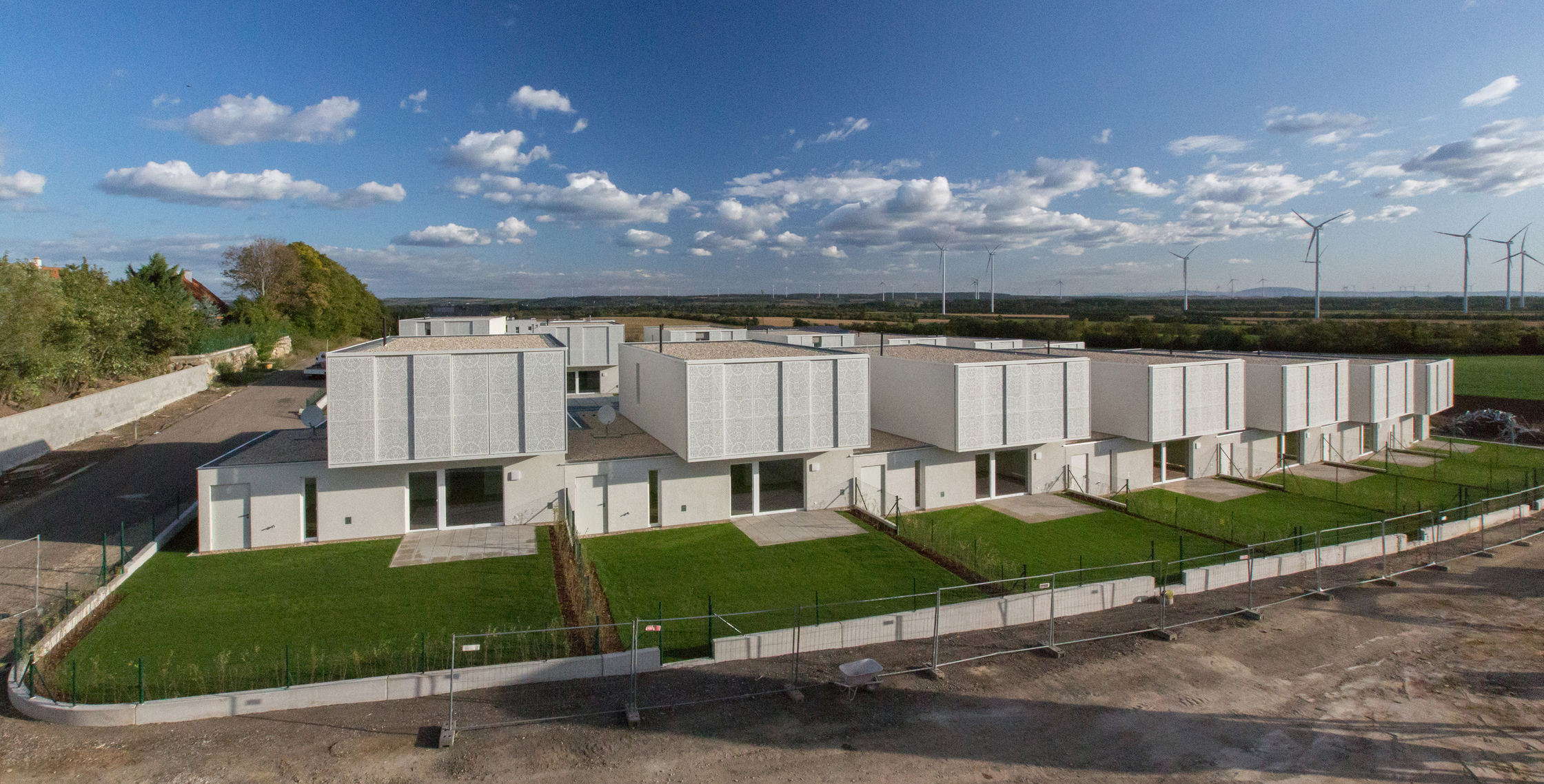 Die Beheizung des gesamten Wohnparks erfolgt über Wärmepumpen, die ihre elektrische Energie auf kurzem Wege aus dem nahegelegenen Windpark Sommerein beziehen.