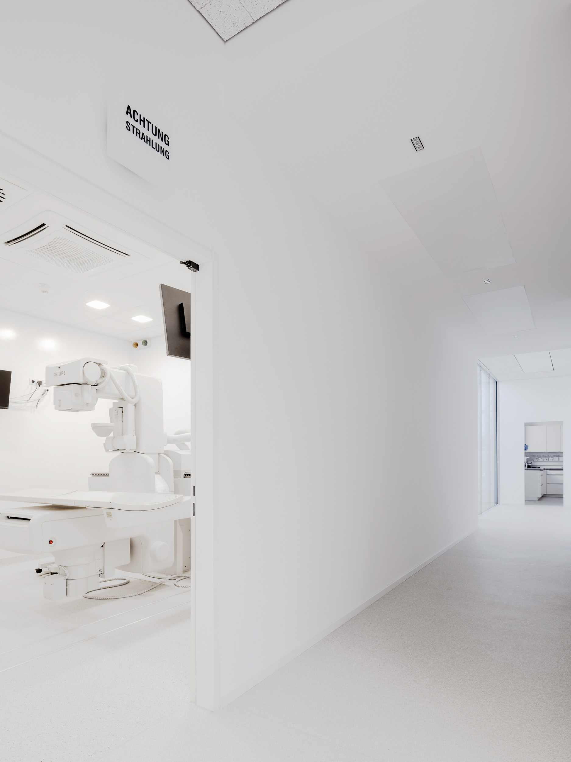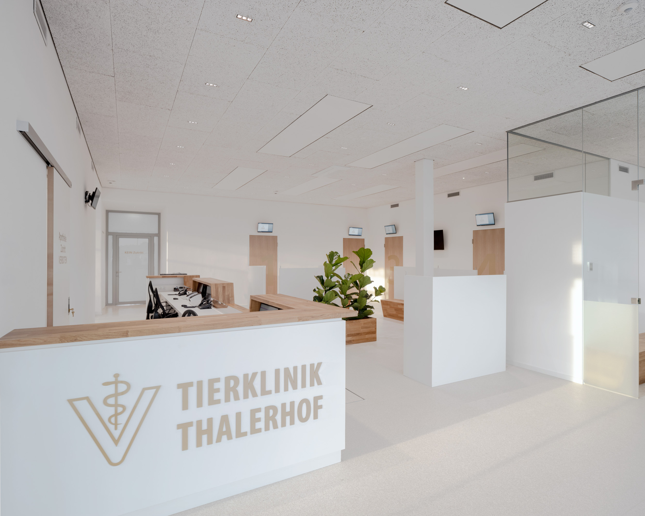 Foyer, Apotheke, Ordinationen, Röntgen, Ultraschall, Endoskopien, Schnittbilduntersuchungen CT und MRT, Labordiagnostik, onkologische Behandlungen, Operationsräume für klassische und minimalinvasive chirurgische Interventionen, Hundestation, Katzenstation, Physiotherapie