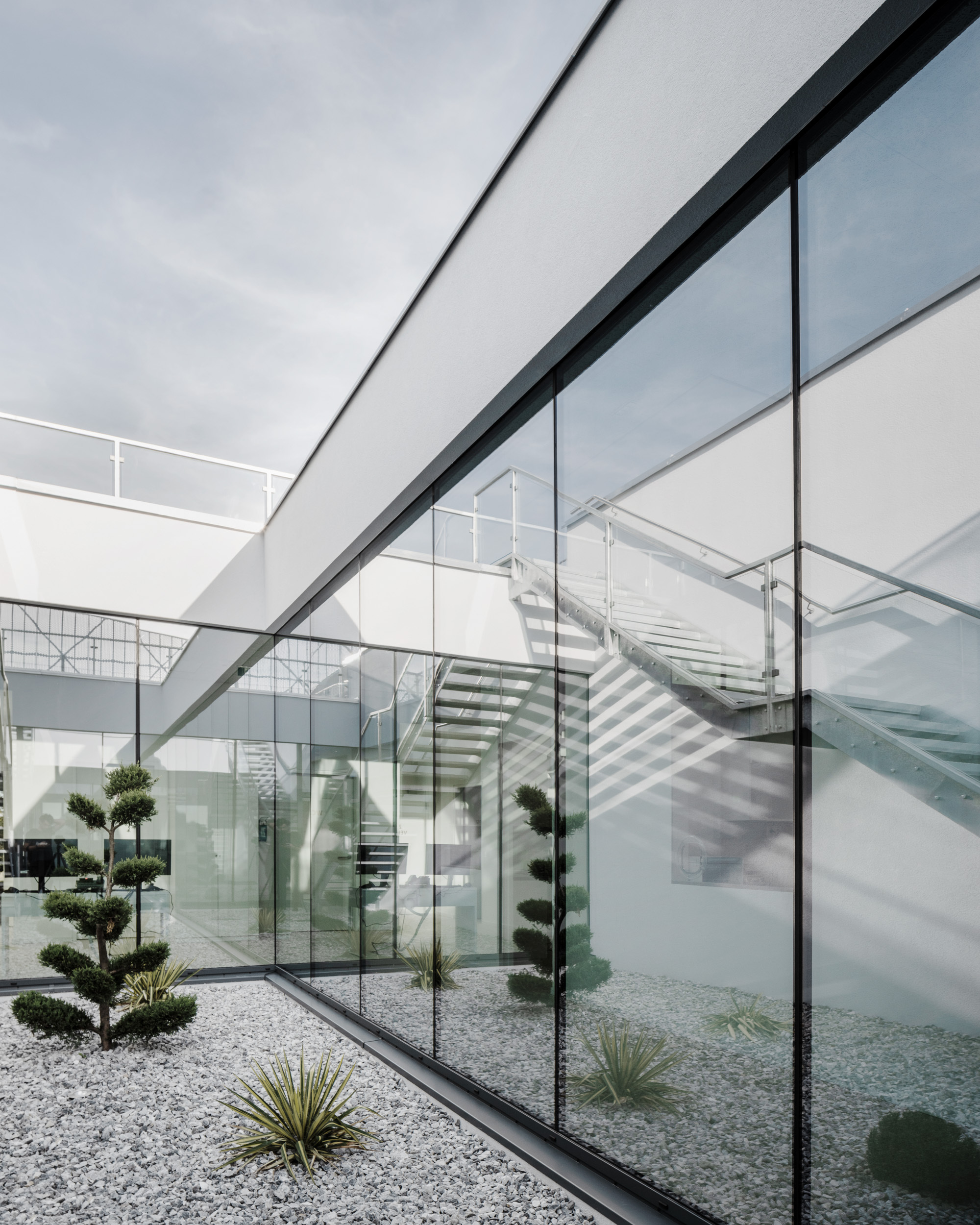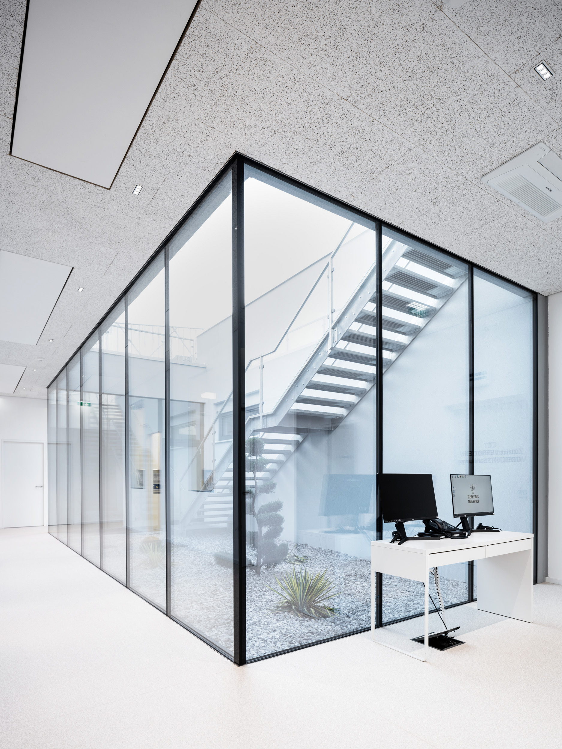 - Stahl-Glaskonstruktion, Stahlbau, Stahlbeton, Vermeidung von PVC für Fenster, Türen, Ziegelbau
