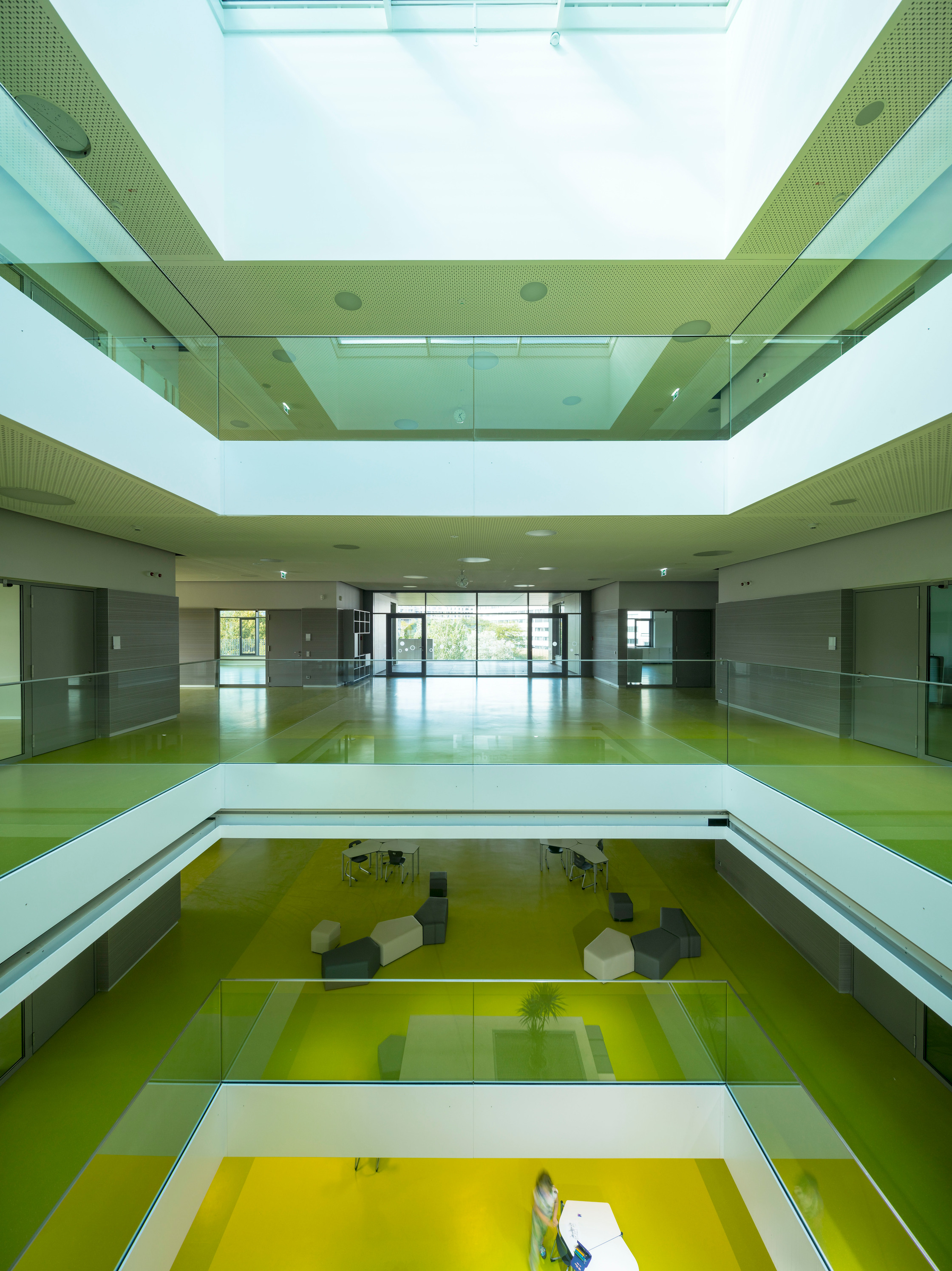 - Mischbau, Stahlbeton, Überwiegende Verwendung von Dämmstoffen aus nachwachsenden Rohstoffen, Überwiegende Verwendung von HFKW-freien Dämmstoffen, Vermeidung von PVC für Fenster, Türen, Vermeidung von PVC im Innenausbau