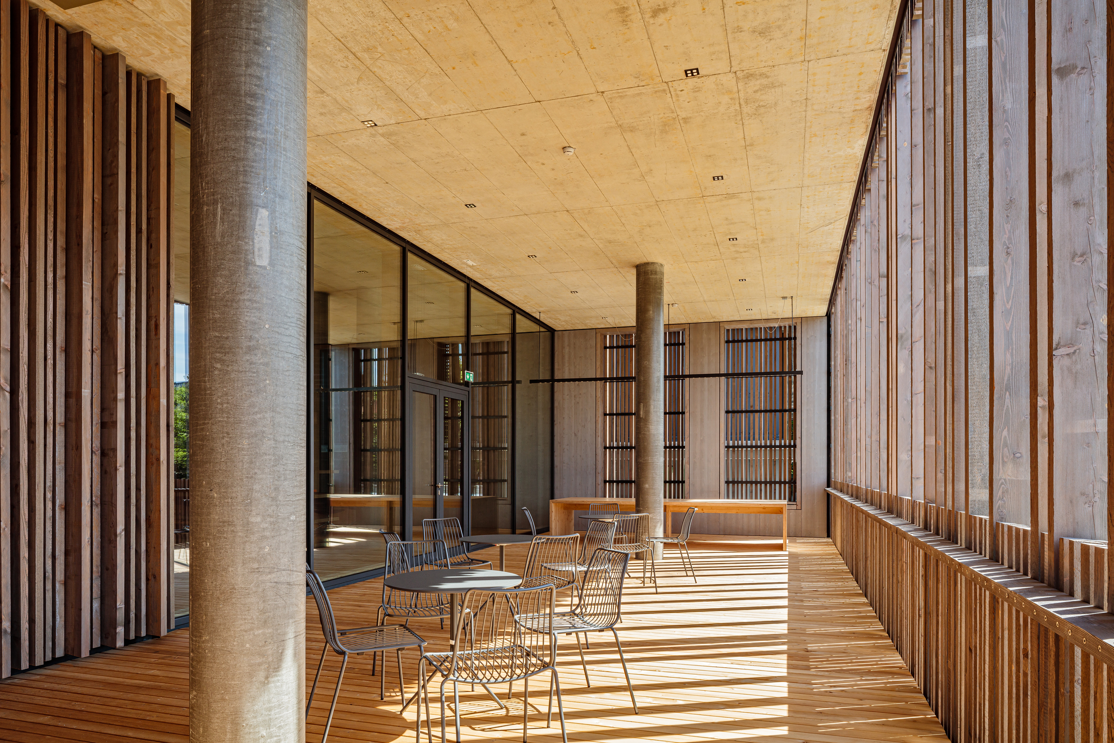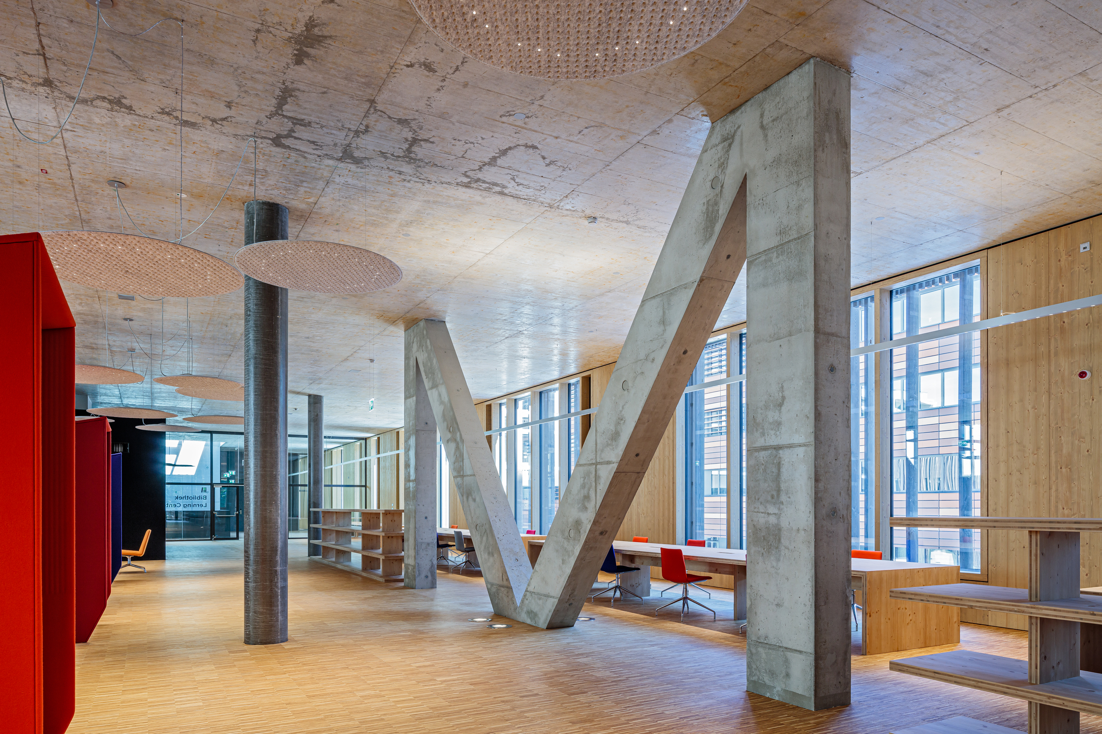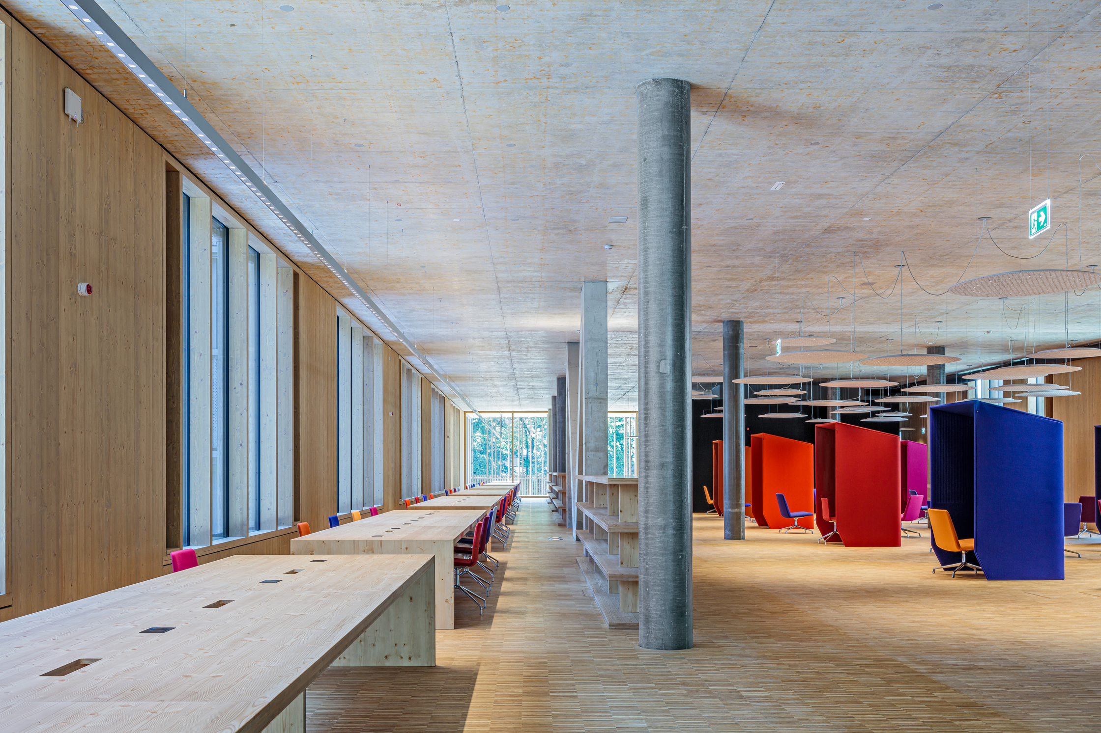 Bibliothek, Lesesaal, Büro, Übungsräume, Cafe, WC, Technikräume, Müllraum