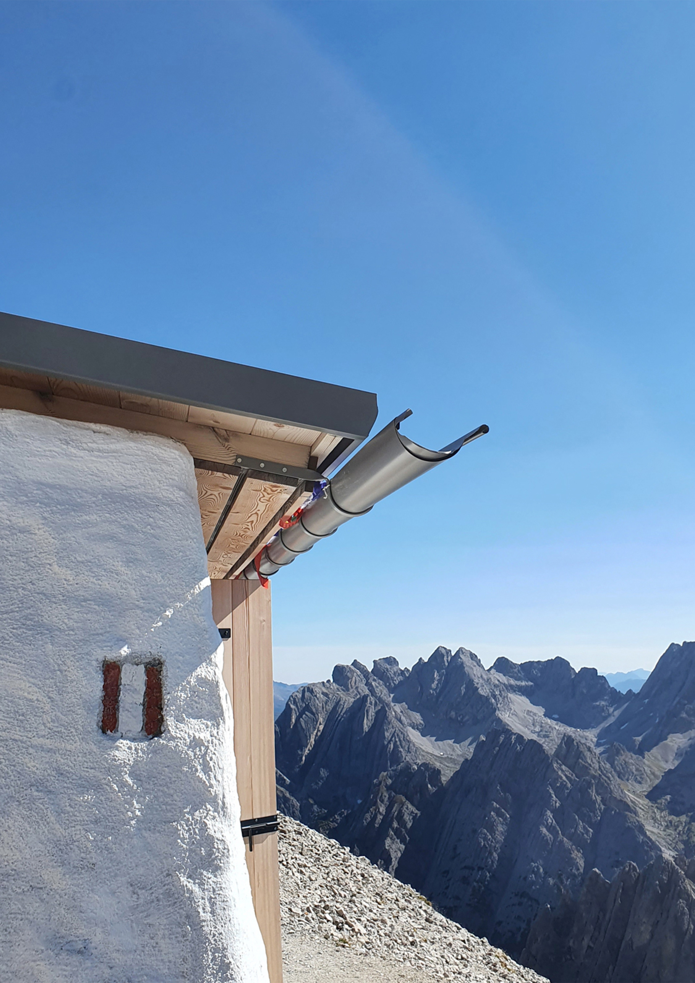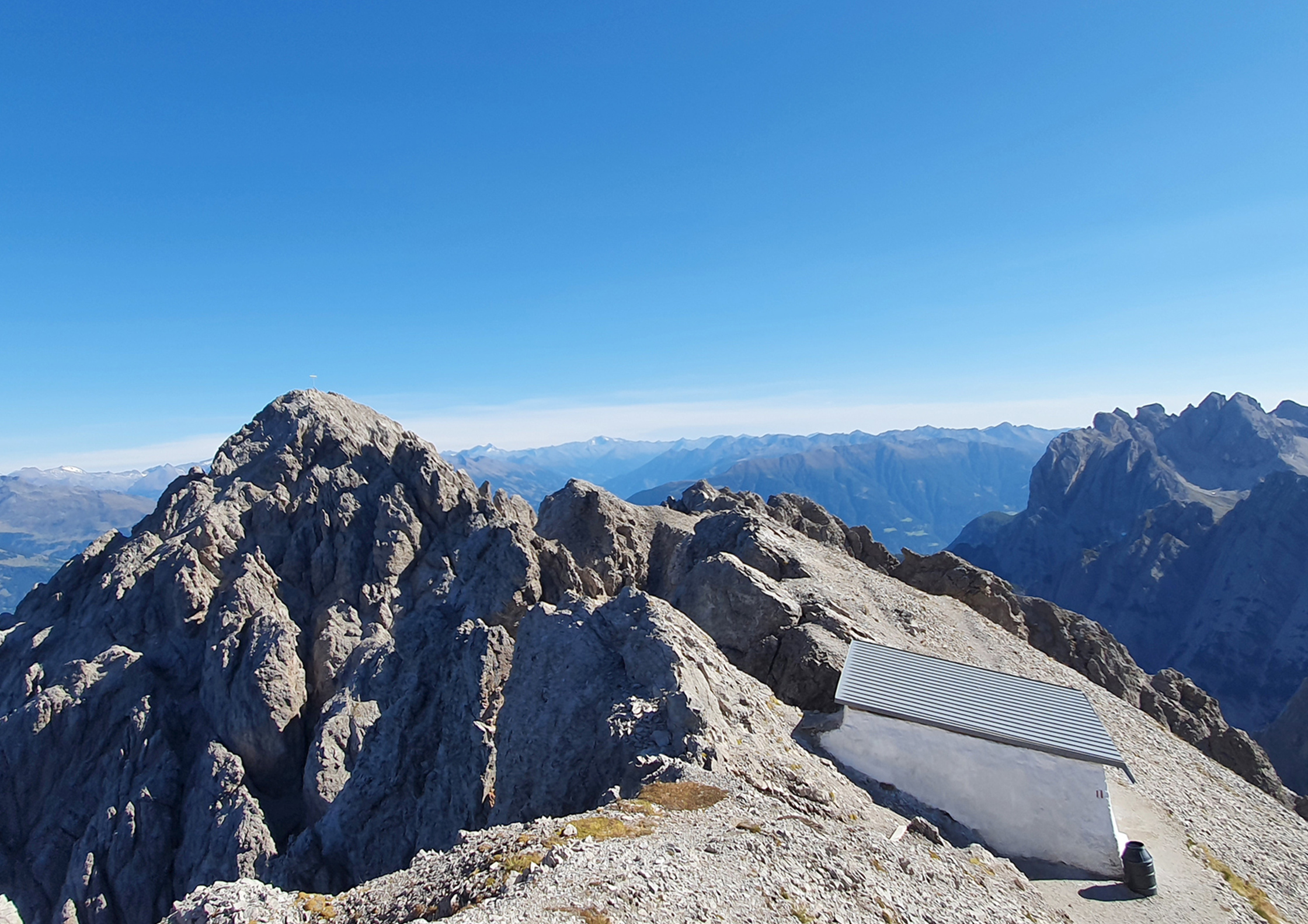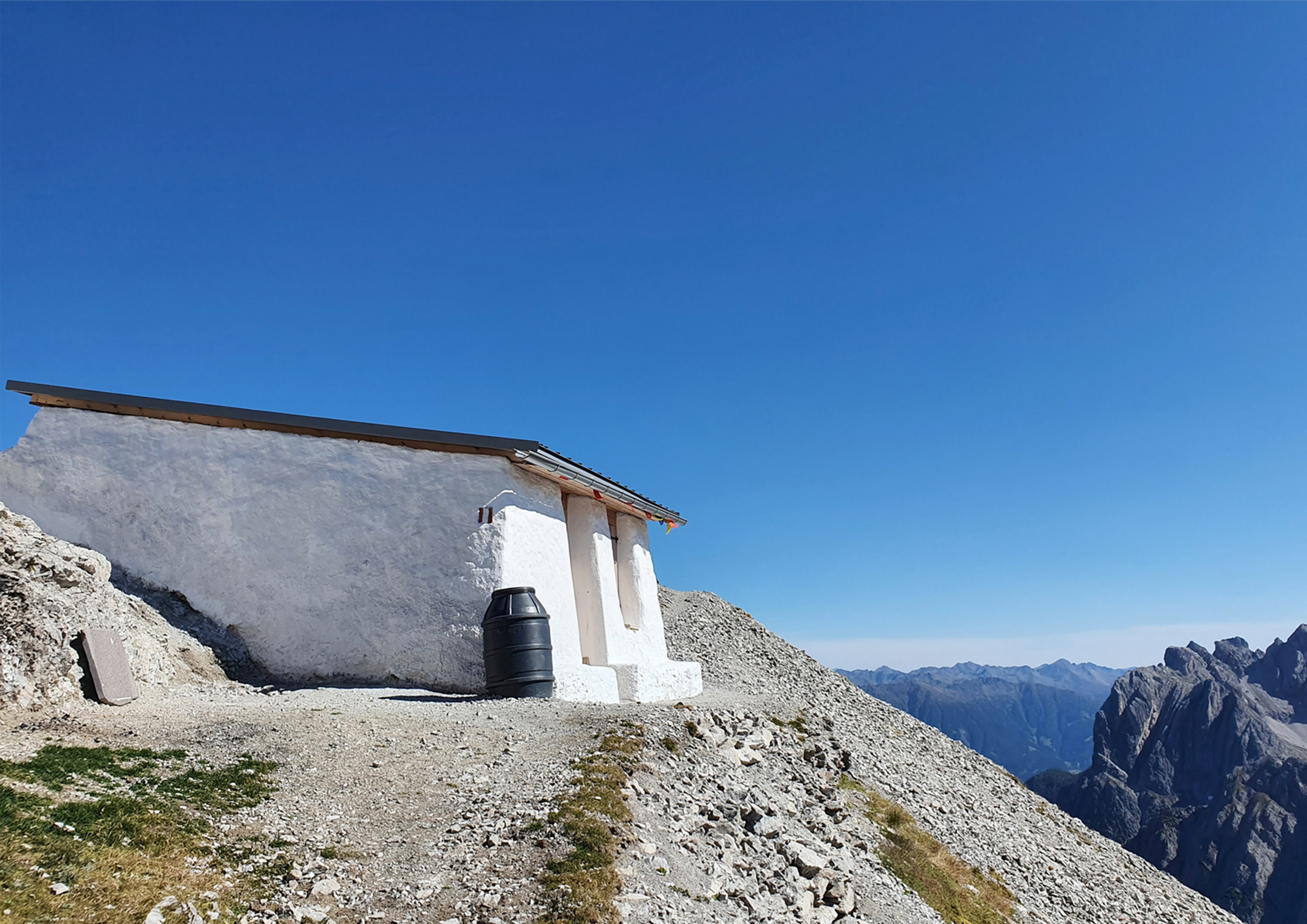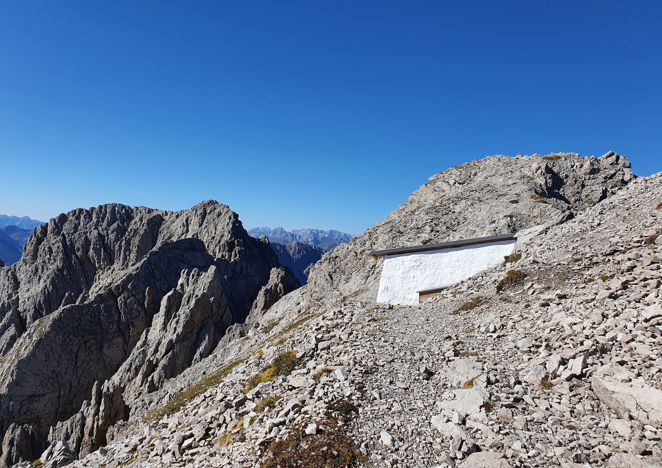 Die Hütte liegt exponiert am Spitzkofel auf 2.683 m