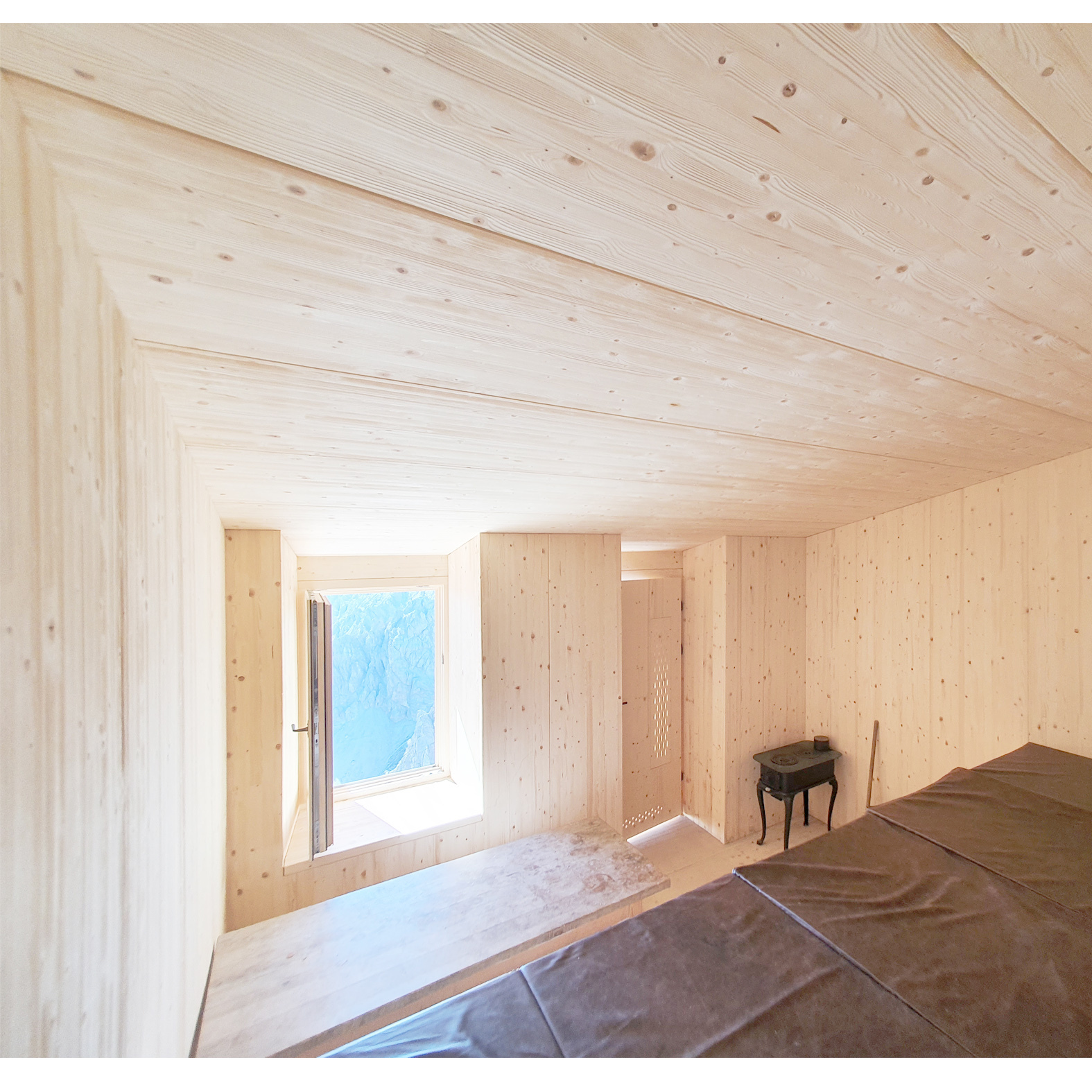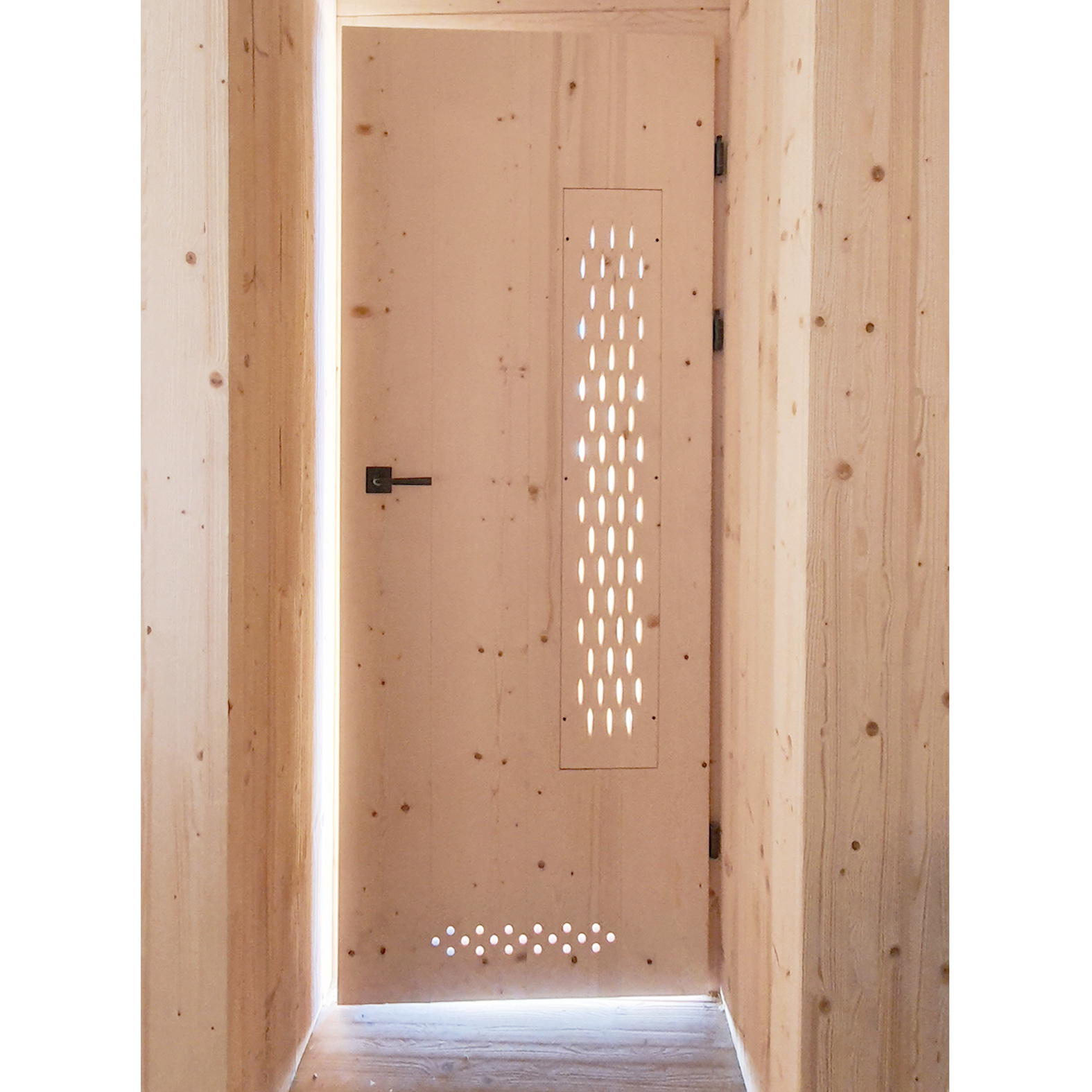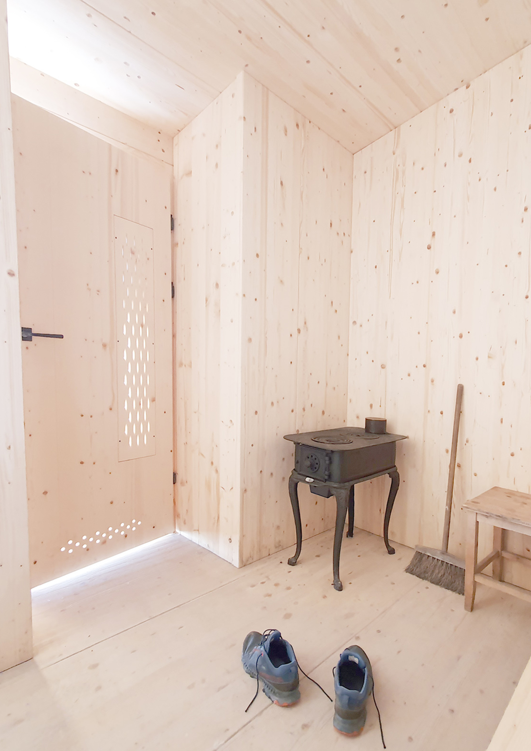 In den sanierten Massivbau wurde eine selbstragende Kammer aus Massivholz gestellt.
