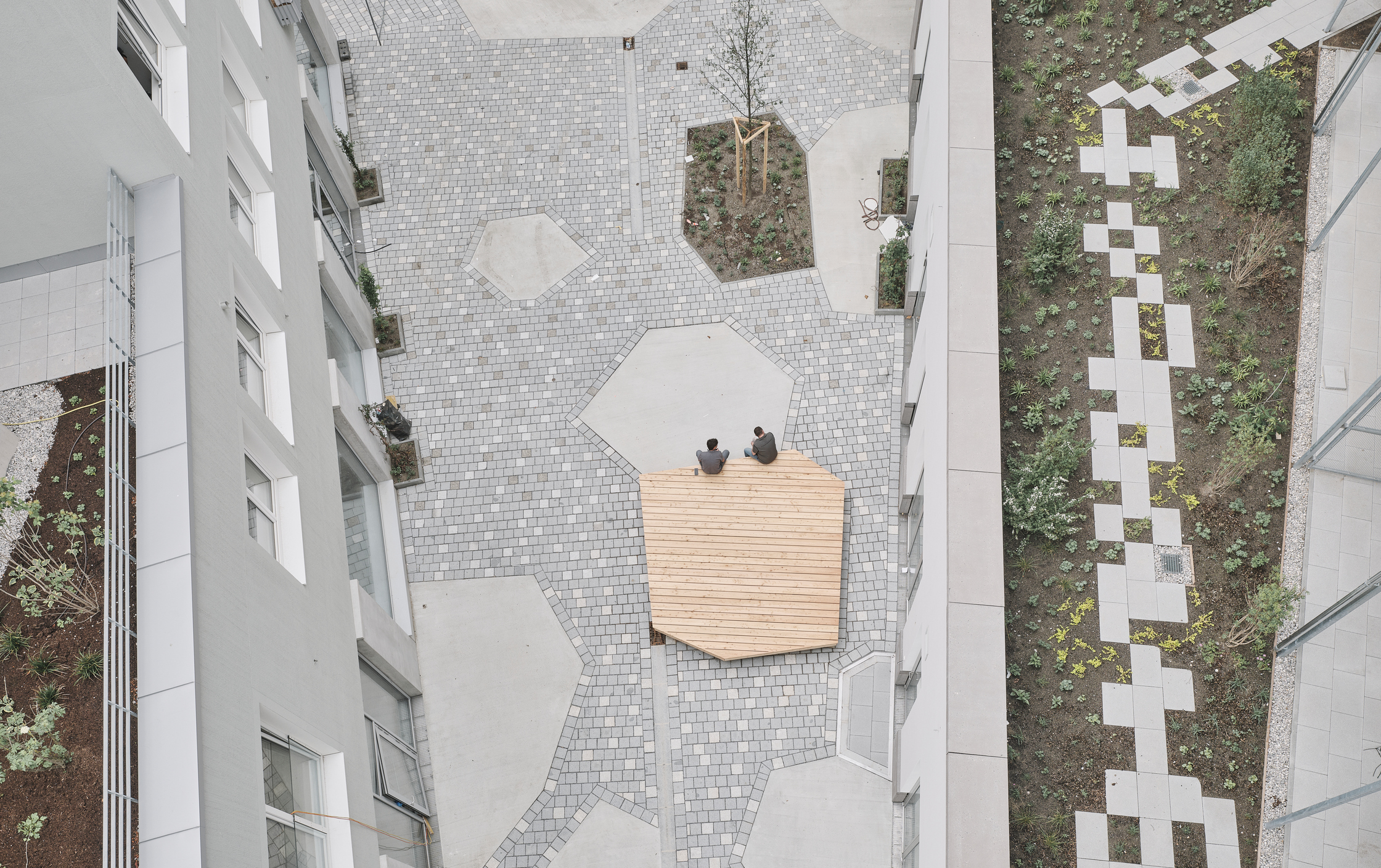 Sockelzone mit öffentliche, soziale und nahversorgende Funktionen.