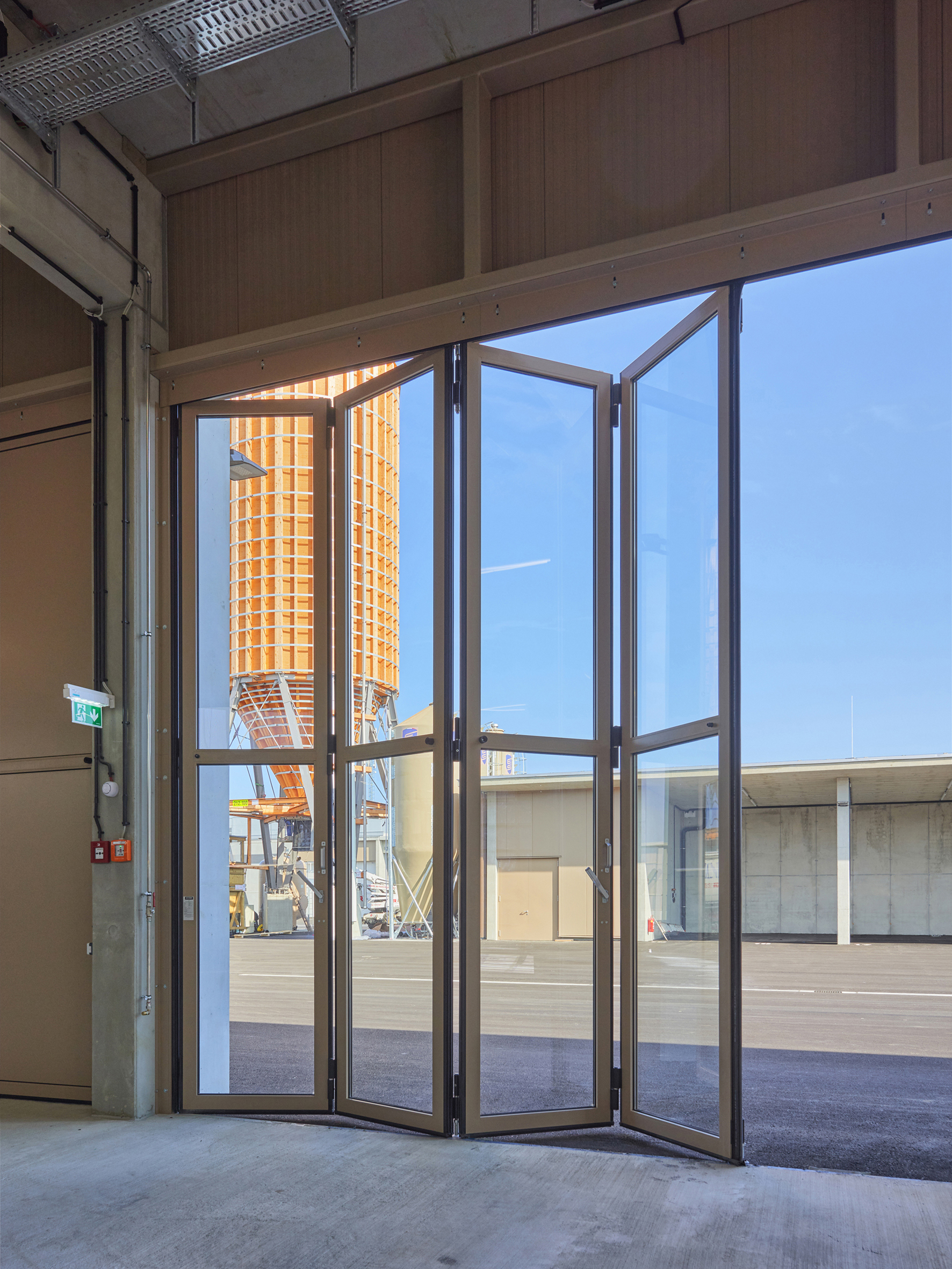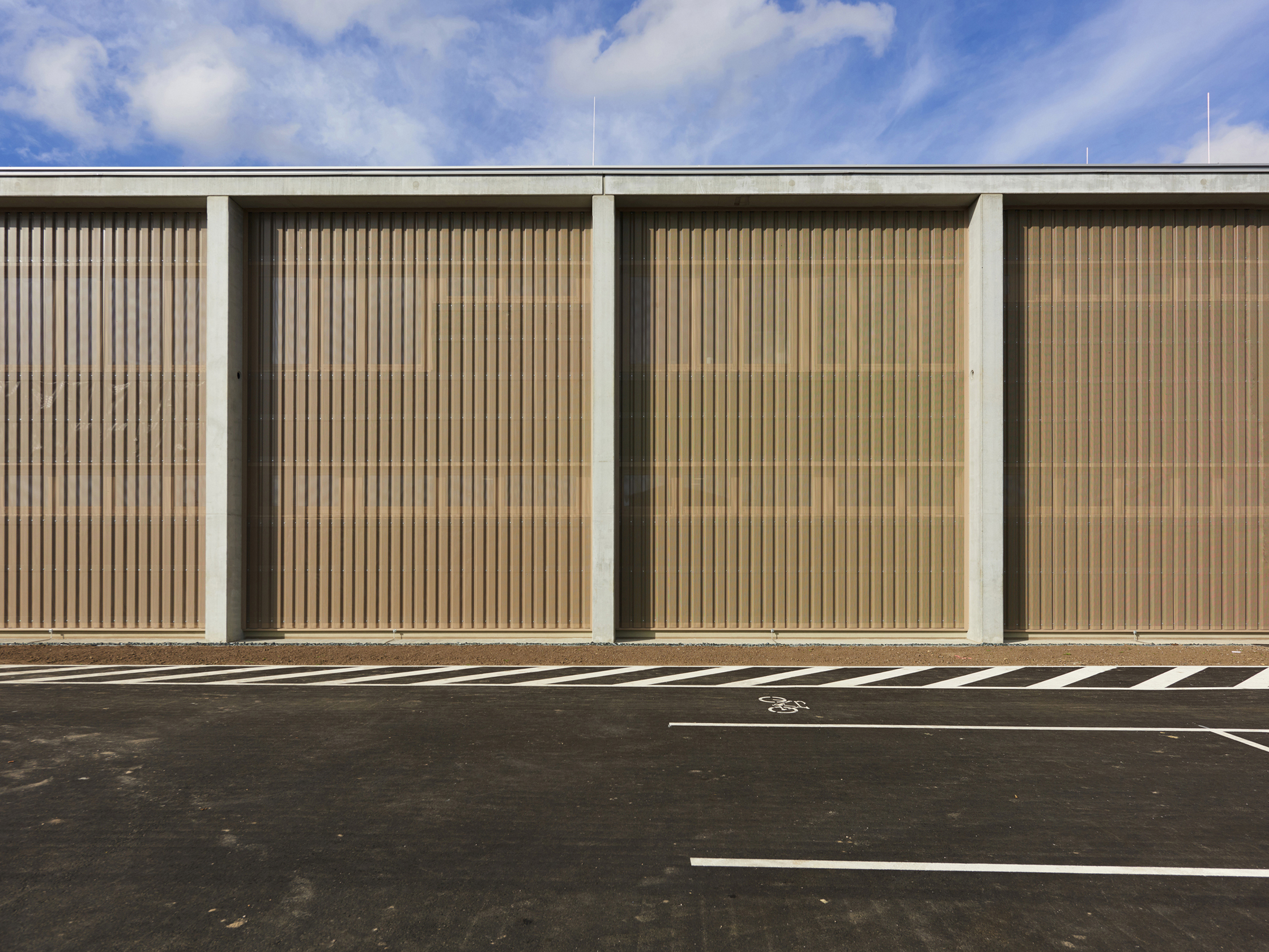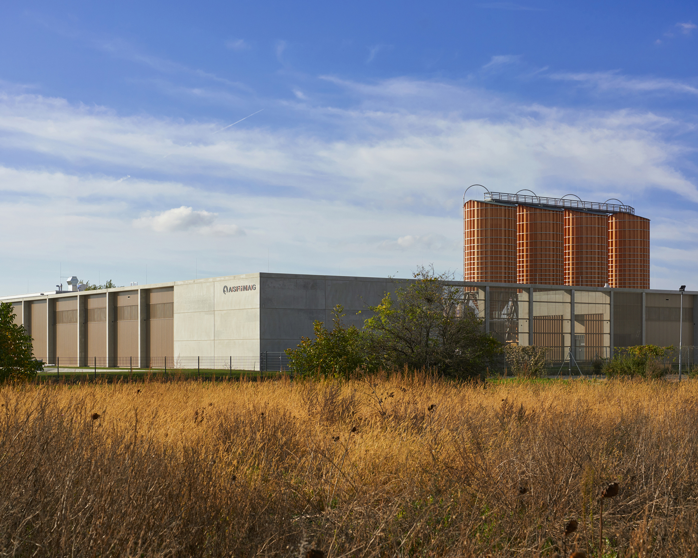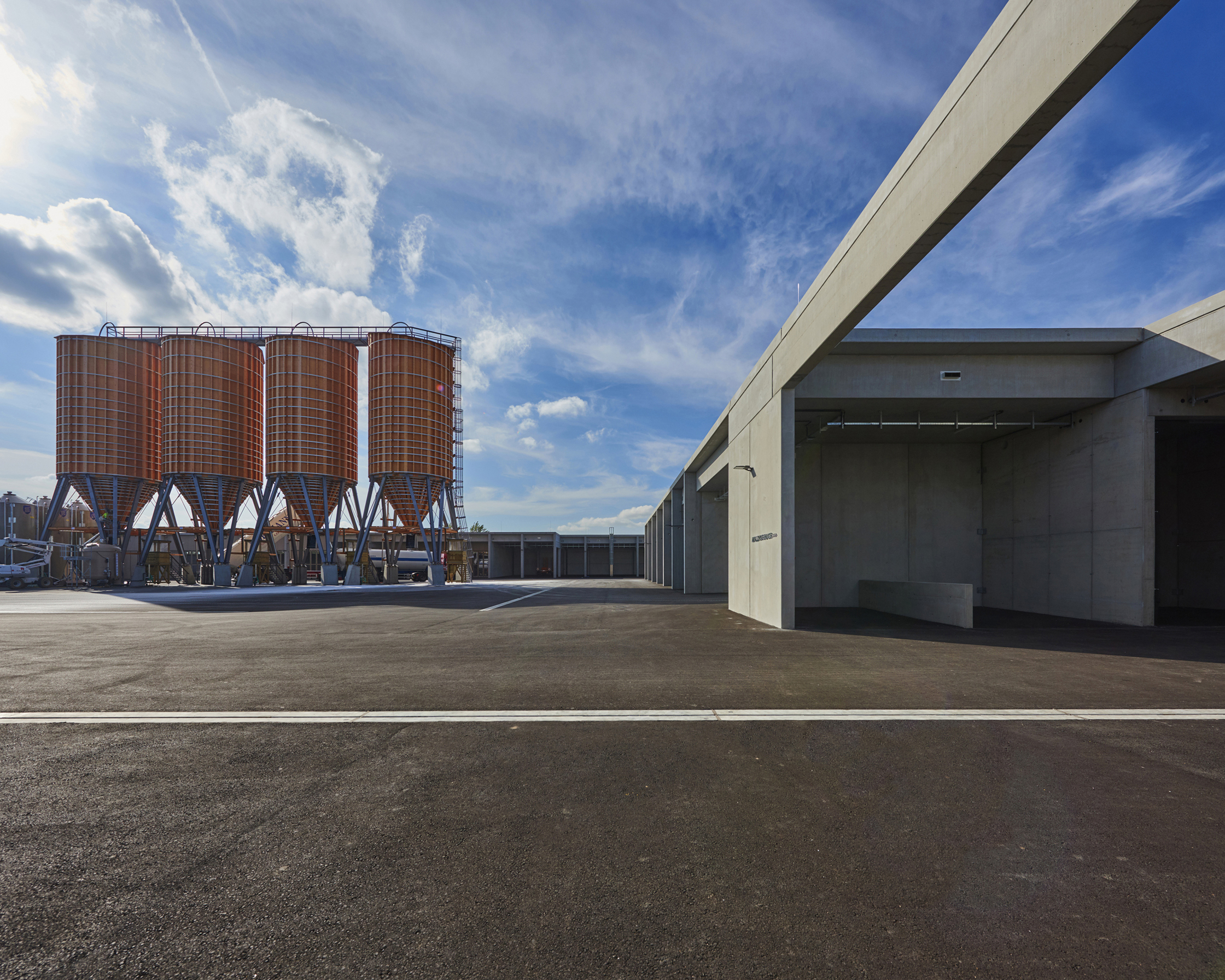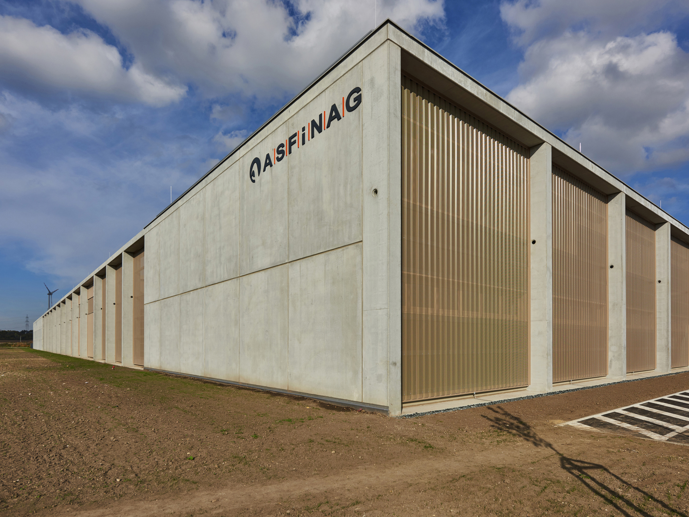 Zum ProduktKompakte Stahlbeton Fertigteil Skelett Bauweise, Stahlfassaden, Salzhalle und Salzsilos Holz, kein PVC, 900PV Module mit 370.000kw/h, rechnerisch autark