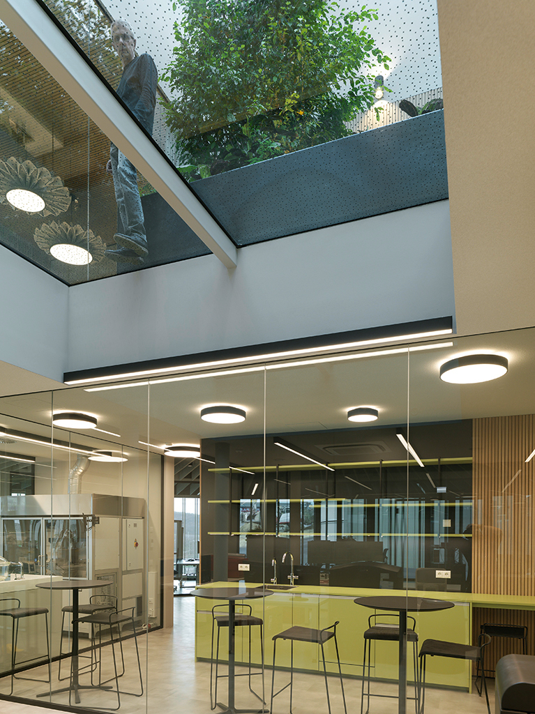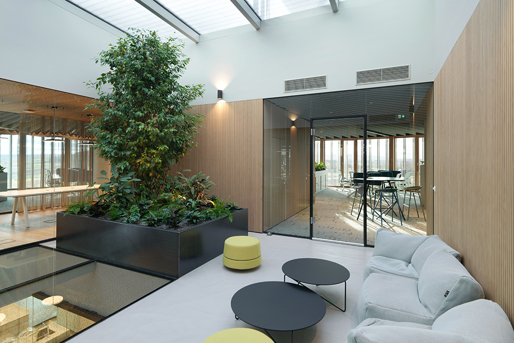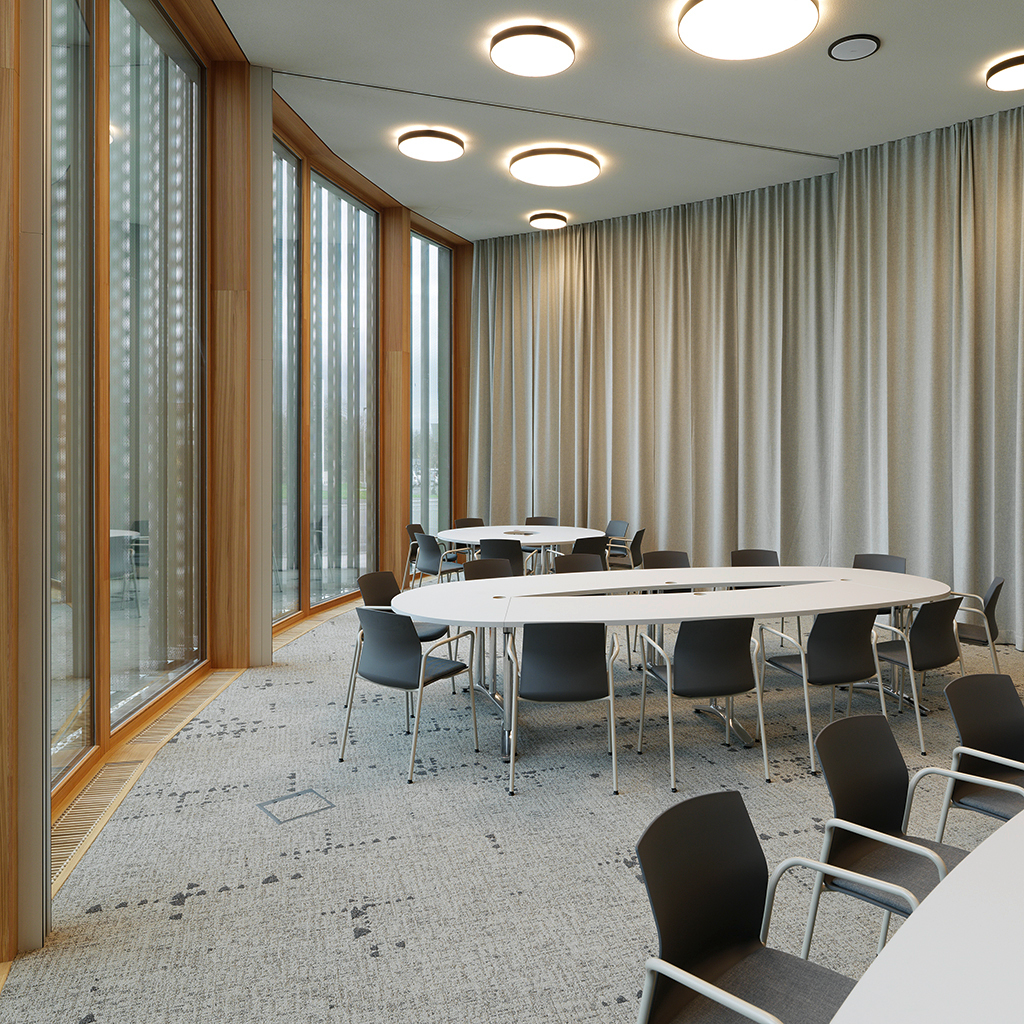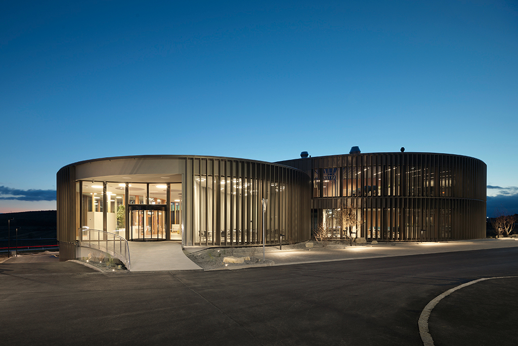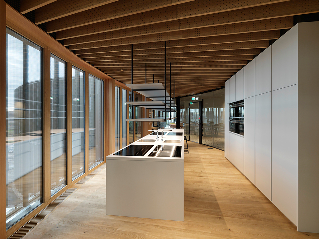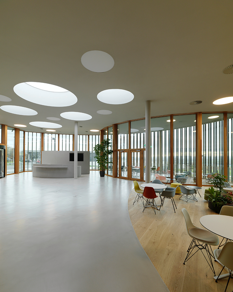 Zum ProduktDer gesamte Energiebedarf für Heizung sowie Kühlung wird aus erneuerbaren Energiequellen gespeist und die kompakte zylindrische Form des Gebäudes mit großem Volumen bei kleiner Oberfläche trägt zur Energieeffizienz bei. Die sensorgesteuerte Lamellenfassade reagiert automatisch auf den Sonnenstand, schützt vor Wärmeeintrag im Sommer und generiert im Winter durch das raumhohe Fensterband passivsolare Wärmegewinne.
