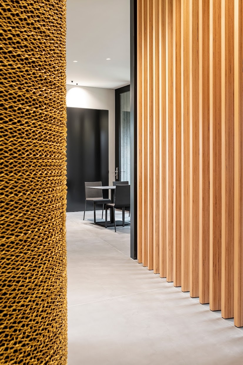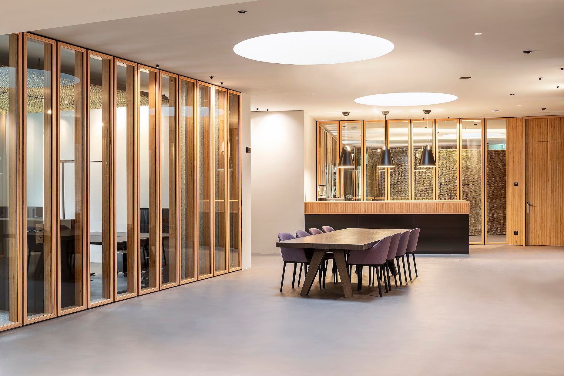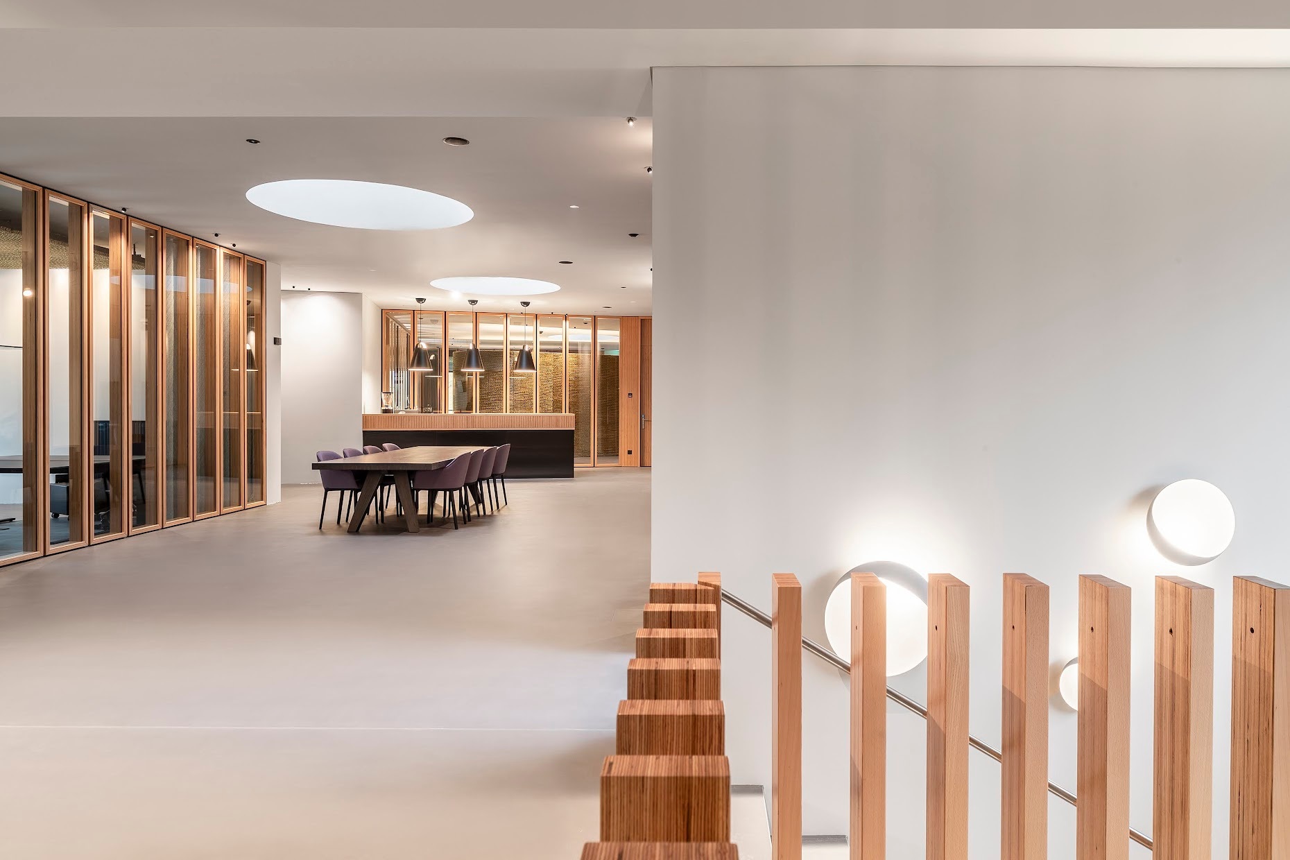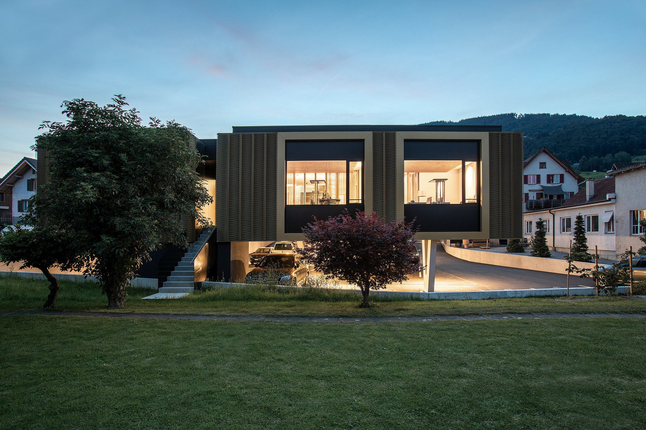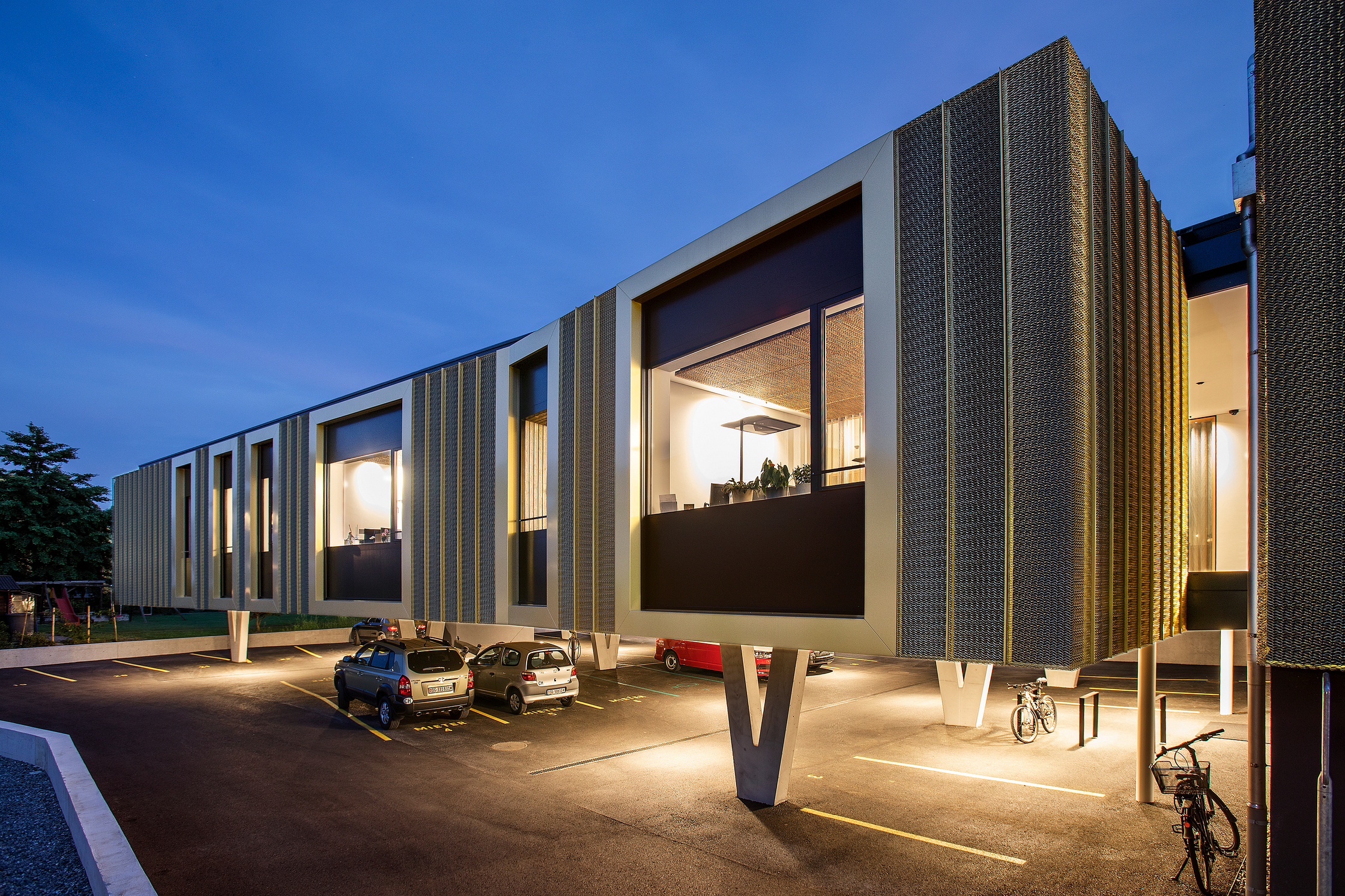 - Stahl-Glaskonstruktion, Stahlbeton, Vermeidung von PVC für Fenster, Türen, Vermeidung von PVC im Innenausbau