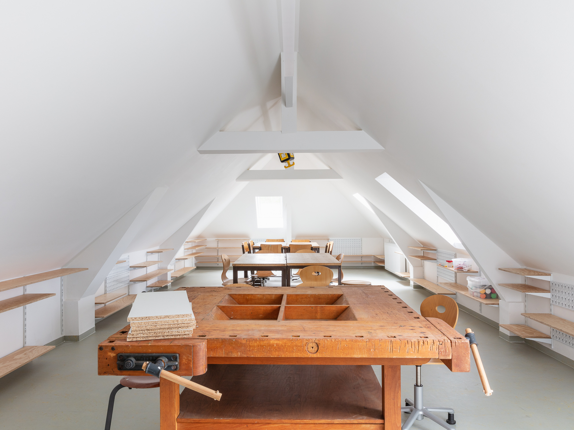 Eine angemessene Nutzung zu finden, ist überlebenswichtig für die gedeihliche Zukunft jedes Altbaus. ASAP Architekten erstellten eine Vorstudie zur kindgerechten Nutzung der Villa. „Es war ein sehr spannender, integrativer Prozess, wir haben von Anfang an unser Raumprogramm mit dem pädagogischen Konzept mitentwickelt“, sagt Florian Sammer von ASAP. Im ständigen Austausch mit Nina Panozzo machten sie aus dem gediegenen Heim der Industriellenfamilie einen Erlebnisort, eine spielerische Forschungs- und Begegnungsstätte für Kinder, deren Eltern und pädagogisches Personal.