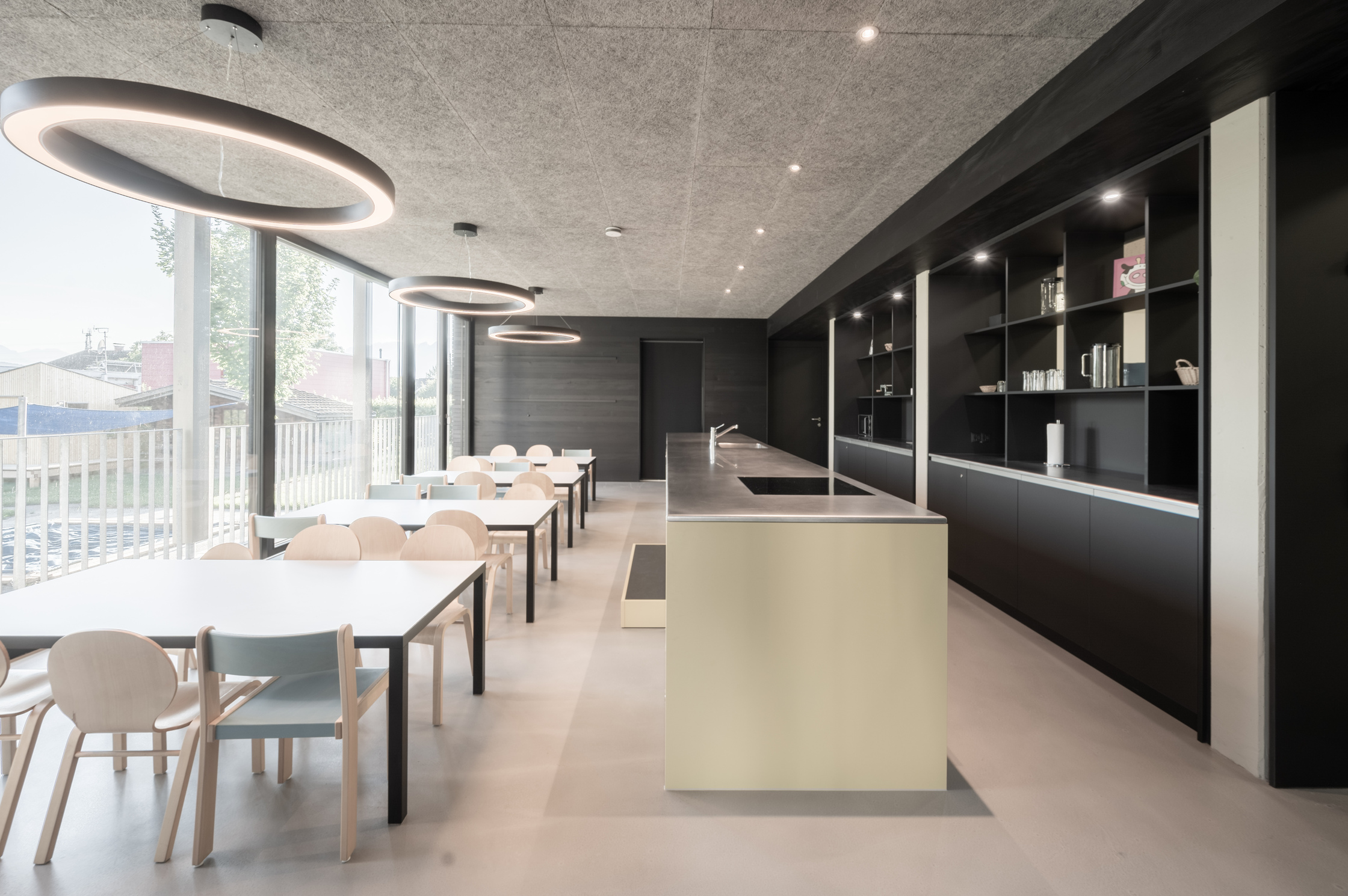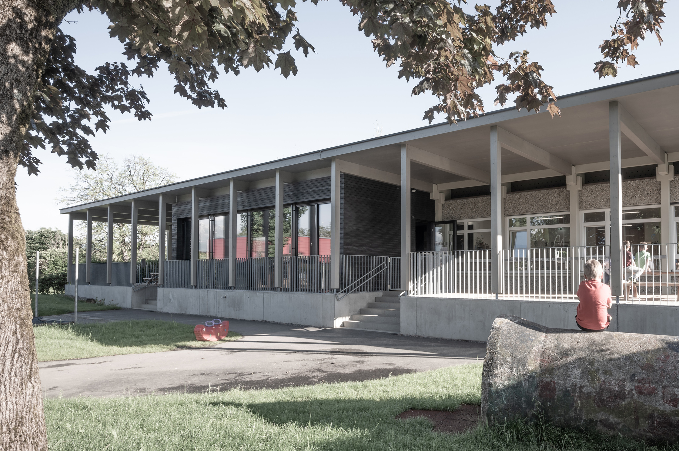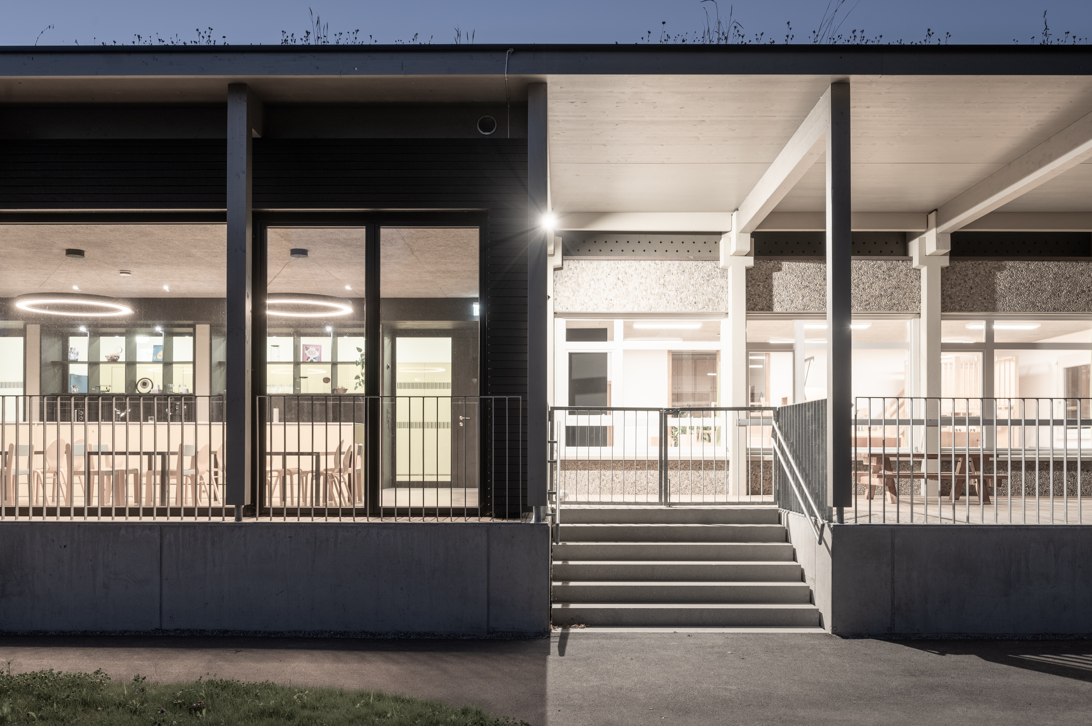 „Mit diesem kleinen Zubau ist nun die Existenz des Kindergartens für die Zukunft gesichert. Bewährte Architektur, deren bauzeitspezifische Qualität und die graue Energie, die ihr Material speichert, bleiben erhalten. Upcycling statt Abriss, auch die meisten Sessel stammen aus dem gemeindeeigenen Lager, in dem alte, ausgemusterte Kindergarten- und Schulmöbel auf ihren Wiedereinsatz warten.“ (Isabella Marboe)