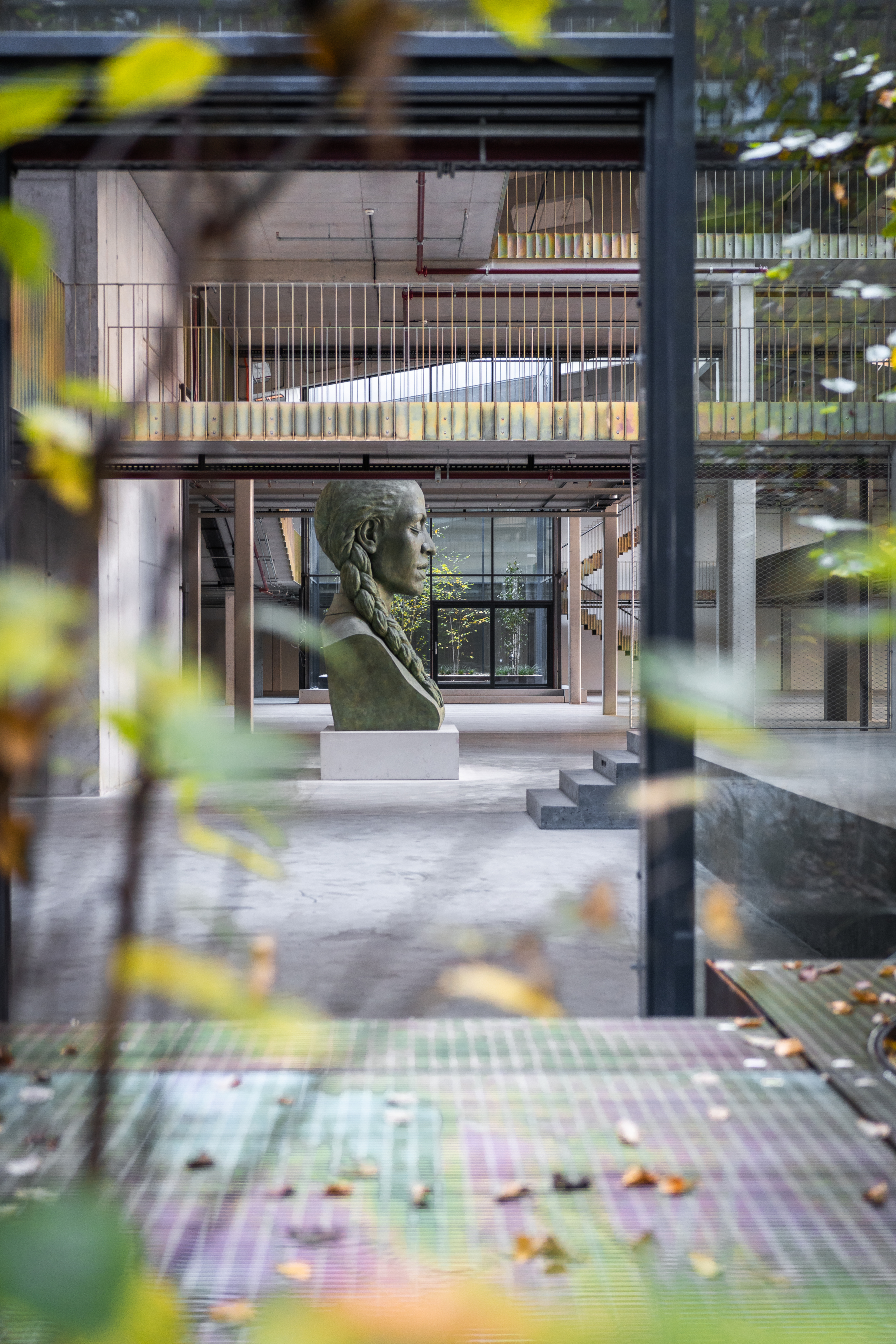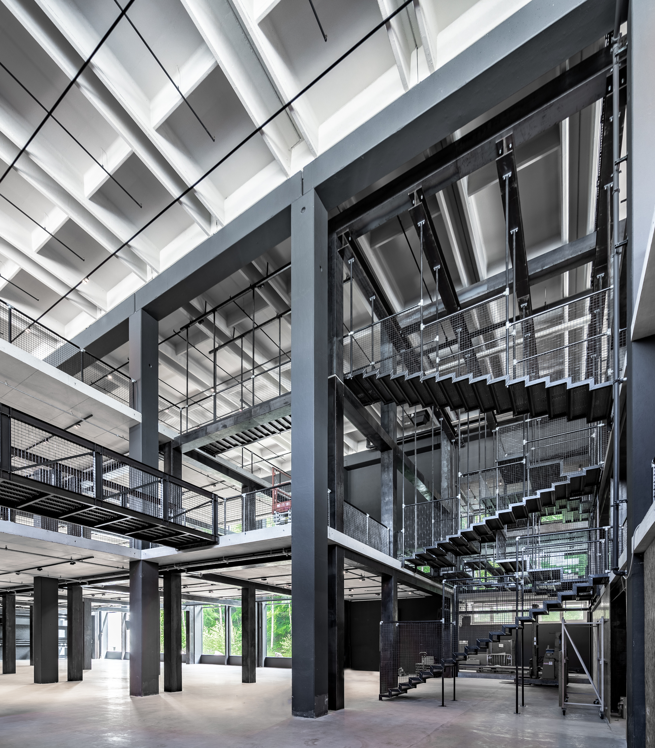 Neben der neu entstandenen räumlichen Qualität hat das Flächenrecycling der Hallen massiv graue Energie eingespart. 43.000m² Nutzfläche wurden geschützt und mussten nicht neu geschaffen werden, konnten sogar noch zusätzlich nachverdichtet werden. Hätte man die leerstehenden Hallen abgerissen und die 25.500m³ bereits verbauten Beton zur nächsten Recyclinganlage transportiert, hätten die LKWs in Summe eine Strecke von ca. 80.000km zurückgelegt – das entspricht einer doppelten Umrundung der Welt. Allein für diese Fahrten wären über 15 Tonnen CO2 verbraucht worden. Ganz abgesehen davon, was es für die Umwelt bedeutet hätte ein Projekt dieser Größe als Neubau und auf unverbauter Fläche zu realisieren.