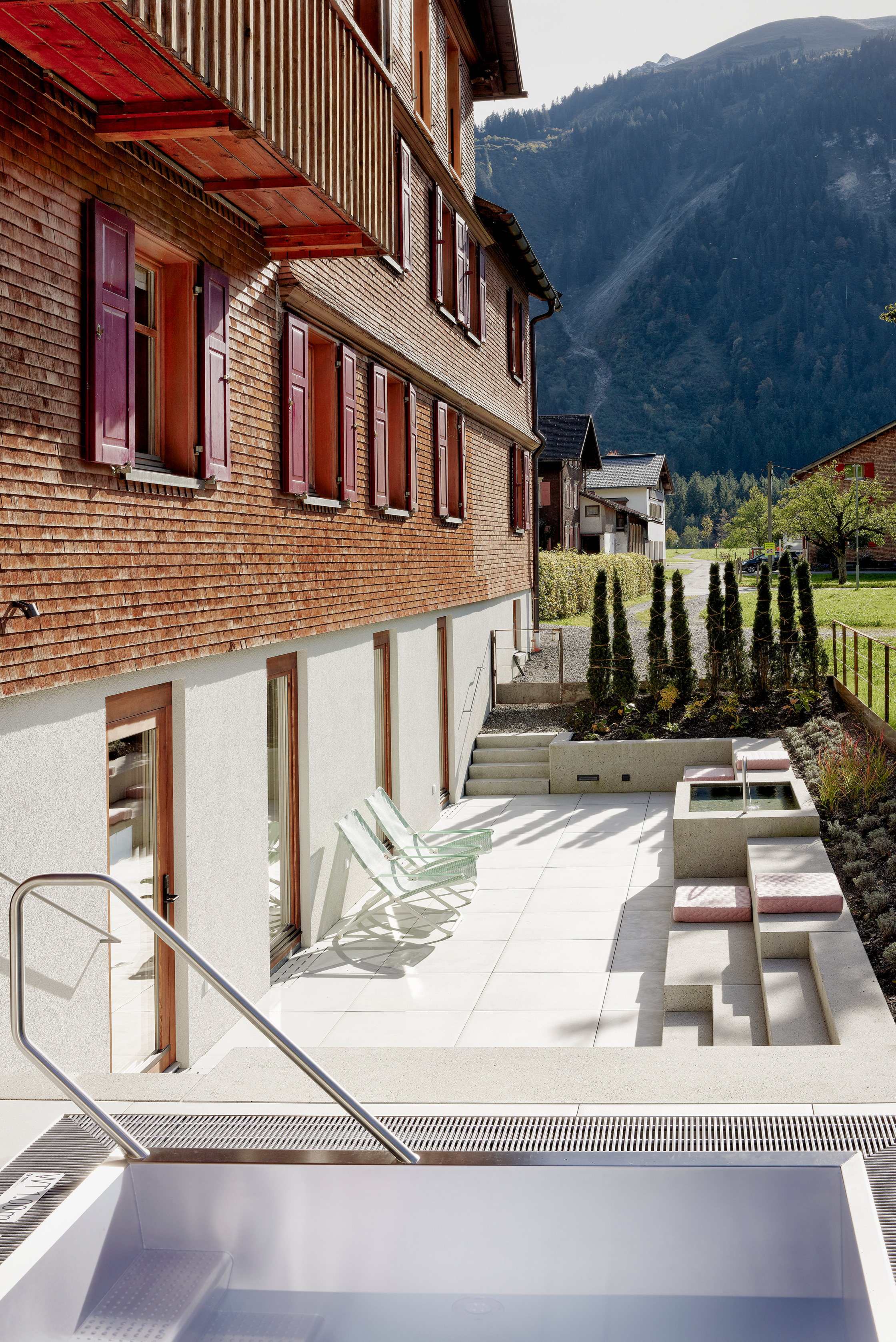 Sanitär, Heizung, Lüftung: willi Installationen, Schoppernau; Schwimmbadtechnik: willi Schwimmbadtechnik, Schoppernau; Elektroinstallationen: Elektro Willi, Andelsbuch; Erdarbeiten: Fa. Rüf, Au; Holzbau Rohbau und Innenausbau: FB Holzbau GmbH, Schnepfau; Fenster: Schwarzmann, das fenster, Schoppernau; Holzböden: BenJo, Bezau; Fliessen: Fliessen Moosbrugger, Au; Natursteinböden: Rein Keramik + Stein, Dornbirn; Tischlerarbeiten Wellnes: Tischlerei Oskar Beer, Au; Tischlerarbeiten Zimmer: Tischlerei here, Au; Malerarbeiten, Kalk- und Lehmputze: Malerei Moosbrugger, Au; Raumausstattung: Troy GmbH, Stefan Troy, Bezau; Außenpool und Metallbauarbeiten: Felder Edelstahlpools, Andelsbuch; Sauna: Setz, Imst