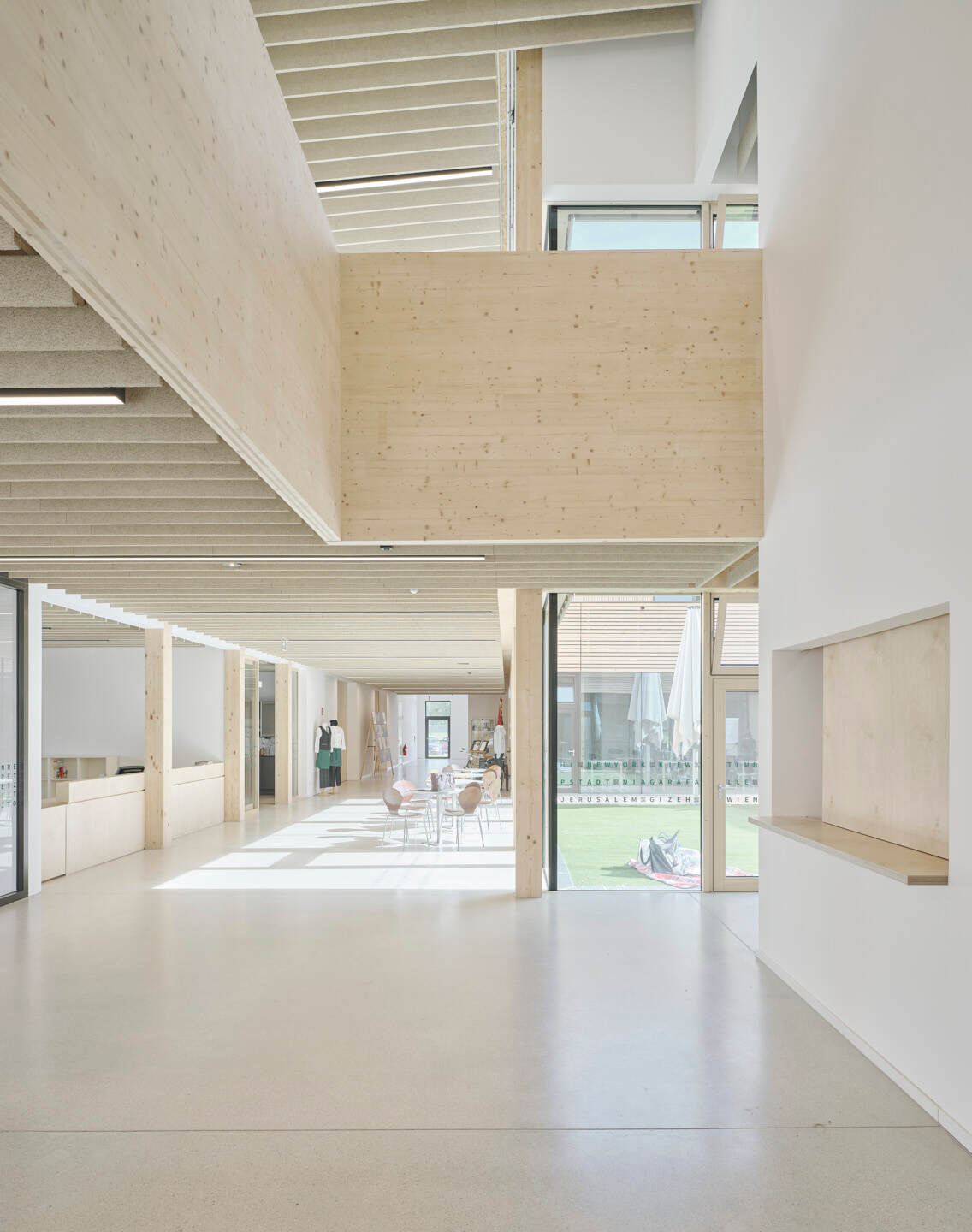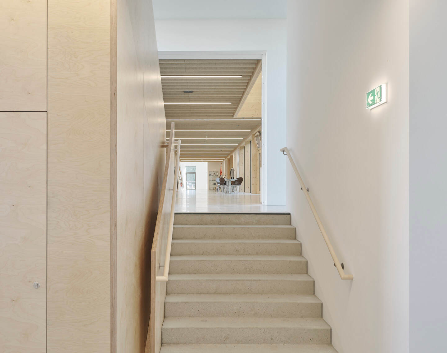 Zum ProduktFertigteildecke aus Holz und Beton in flacher Ausführung.