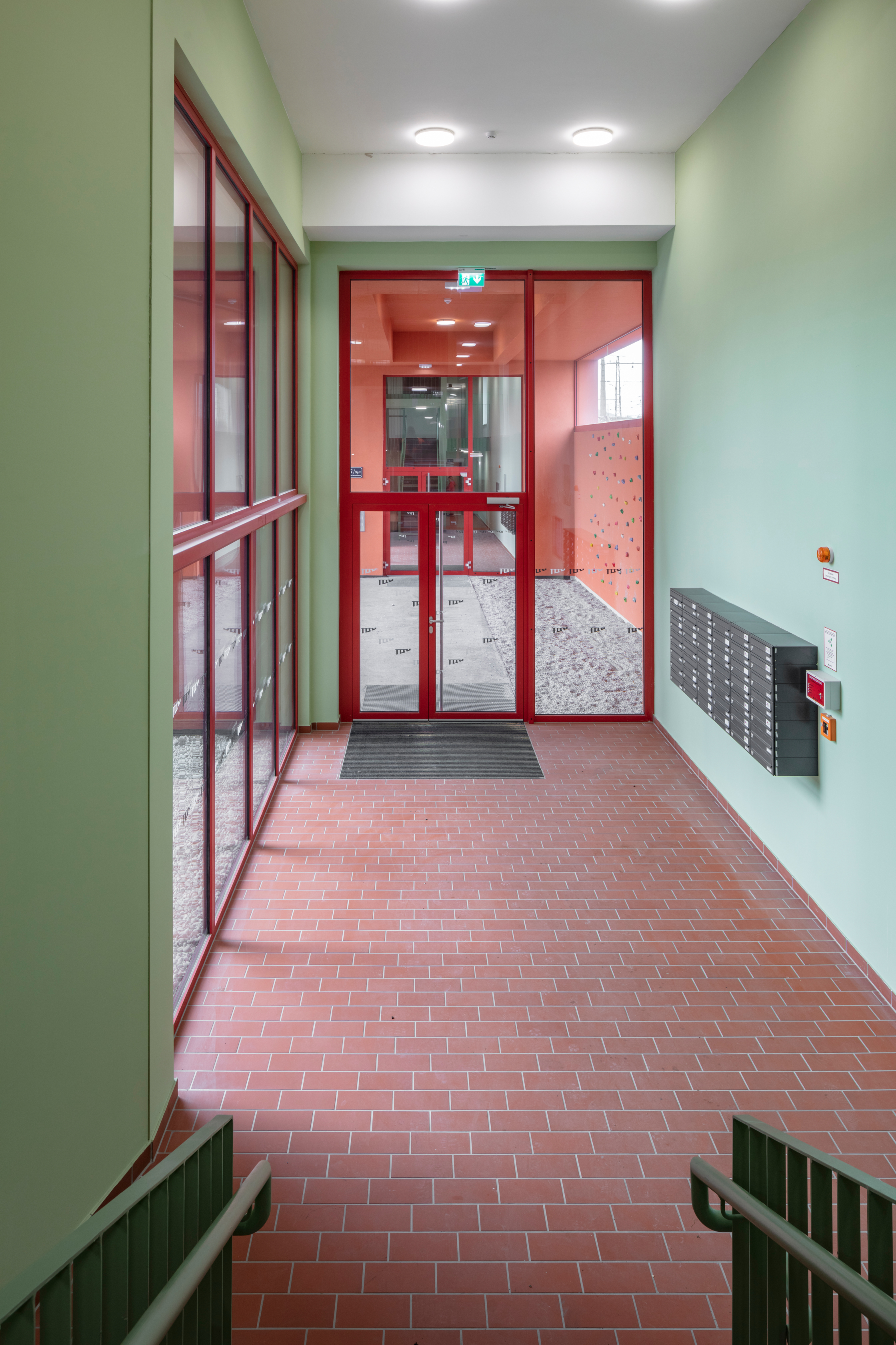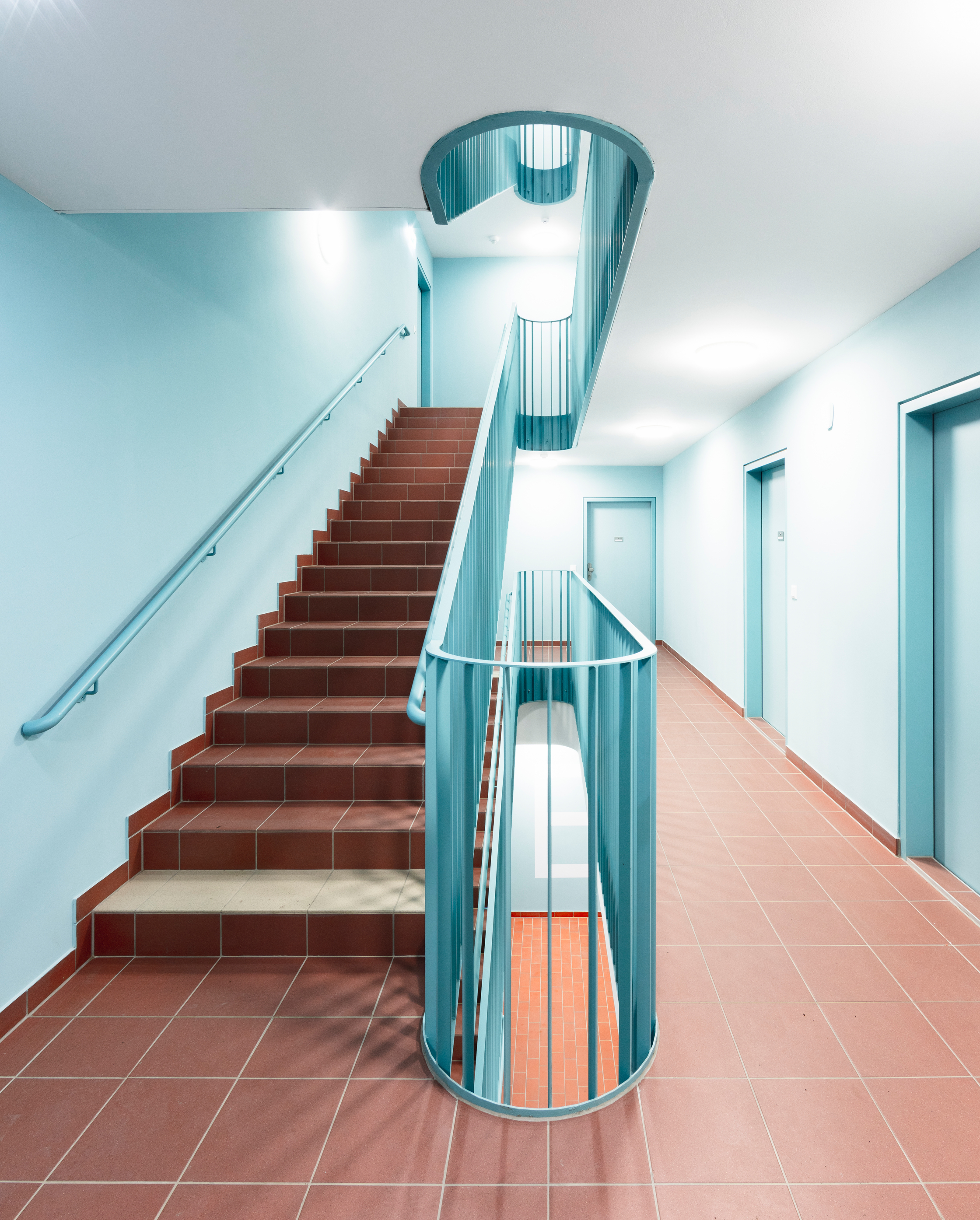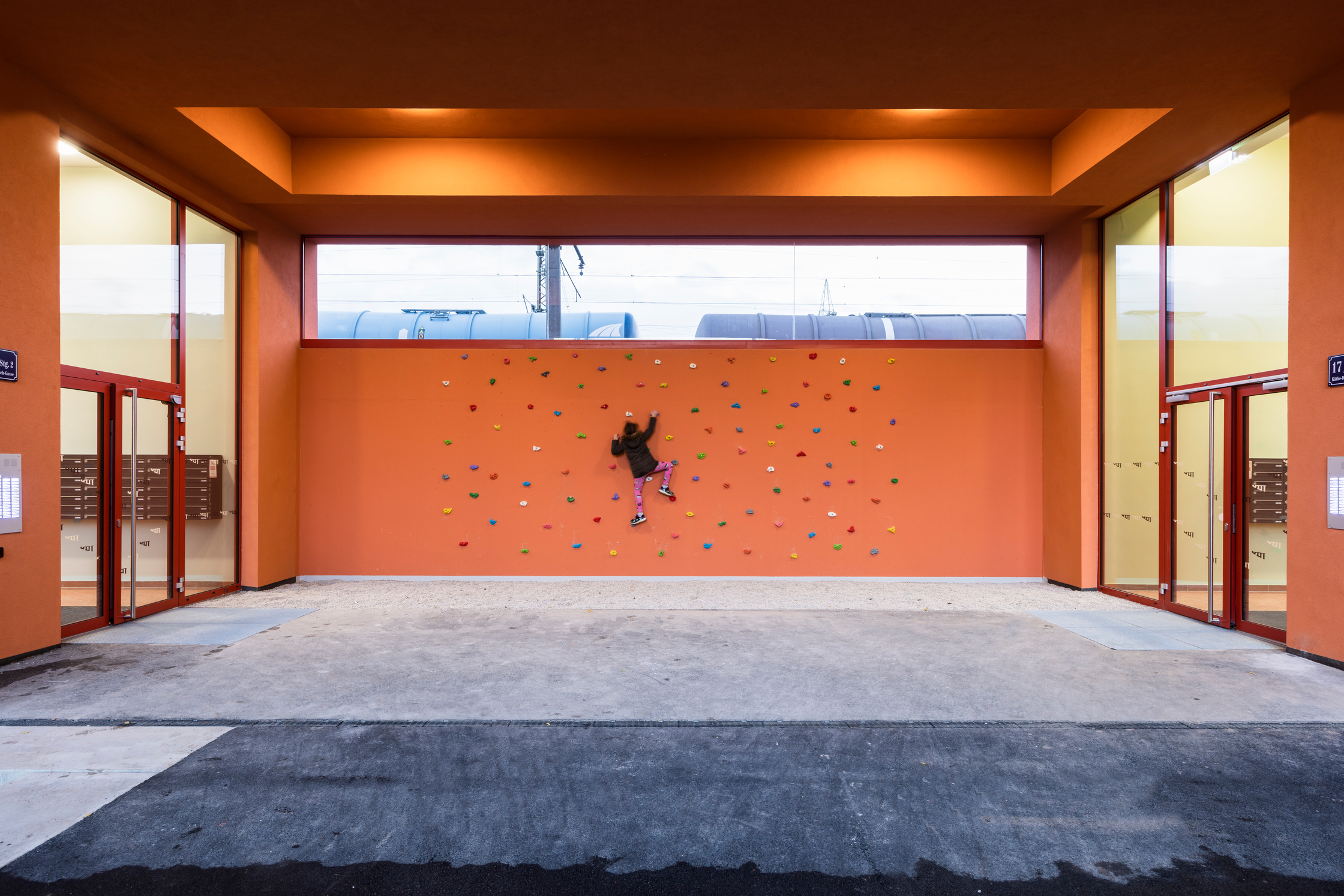 Zusätzlich zu diesen Elementen integrieren die Wientalterrassen auch energieeffiziente Systeme im gesamten Gebäude, darunter Hochleistungsfenster und -isolierung, sowie wassersparende Armaturen in allen Badezimmern. Die Entwicklung umfasst auch ein Recyclingsystem vor Ort, das einen nachhaltigen Lebensstil seiner Bewohner:innen und Besucher:innen fördert.