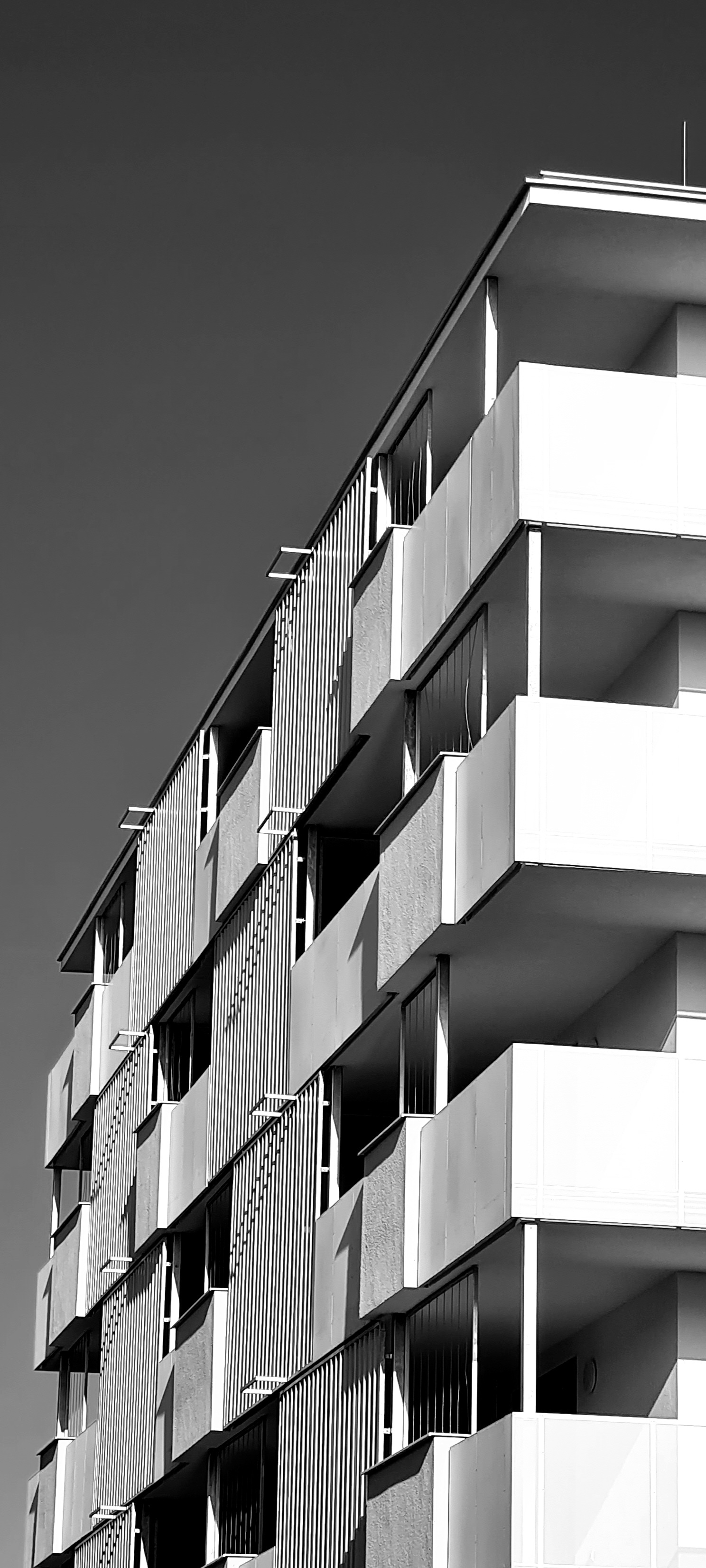 Die drei Baukörper beherbergen jeweils 27 Wohnheinheiten. Die Wohnungstypen bieten zwei unterschiedliche Größen, wobei pro Geschoss vier Eckwohnungen und zwei Kleinwohnungen enthalten sind. Dank umlaufender Loggien entsteht so für jede Wohnung ein hohes Maß an Innen- wie Außenraumqualität, deren Privatheit durch die vorgelagerte Fassade gewährleistet wird. Die Wohnhausanlage verfügt über eine Tiefgarage.