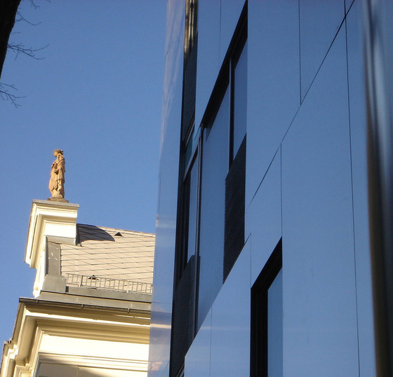 Schließlich die Balkone: Sowohl bei den Balkonplatten als auch bei den Brüstungen und den vertikalen, 45 cm breiten Pfeilern handelt es sich um komplett vorgefertigte Elemente, die eine scheinbare Ruhe und Einheitlichkeit ausstrahlen, bei genauerer Betrachtung jedoch einen technischen und baujuristischen Wahnsinn offenbaren, der es erforderlich machte, die Fassade in der Ausführungsplanung Stück für Stück zu detaillieren. Mit einer Toleranz von 2 cm zuzüglich 5 mm breiter Fase stoßen die Elemente aneinander. An manchen Stellen haben die Architekten mit einer 3 cm breiten Scheinfuge zugunsten einer klar ablesbaren Komposition ein wenig geschummelt.